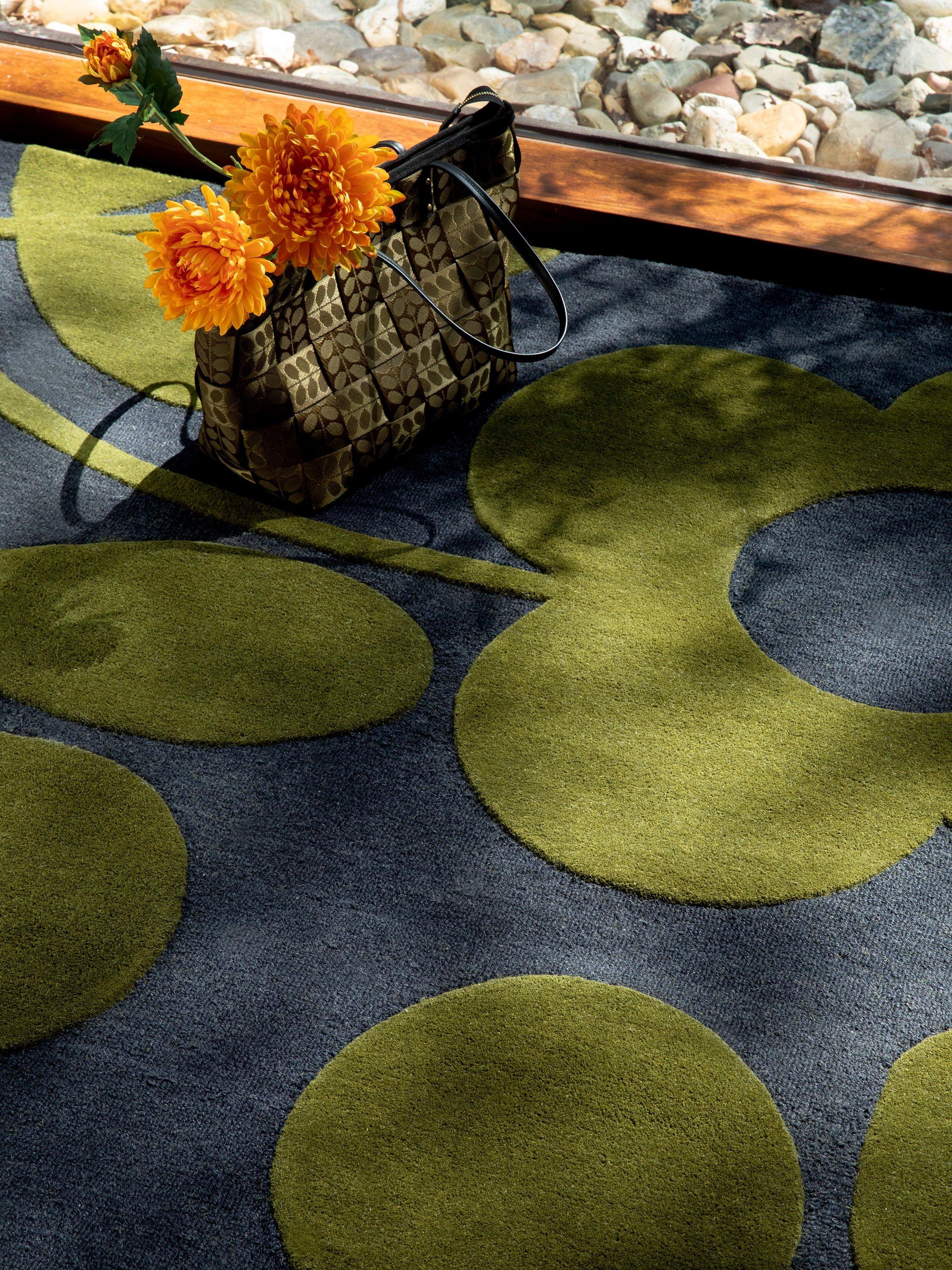Hand-tufted with a retro-floral graphic and cut pile design, this beautiful rug is crafted from pure new wool for a plush, durable texture that feels luxurious underfoot while being stain and dirt-resistant.