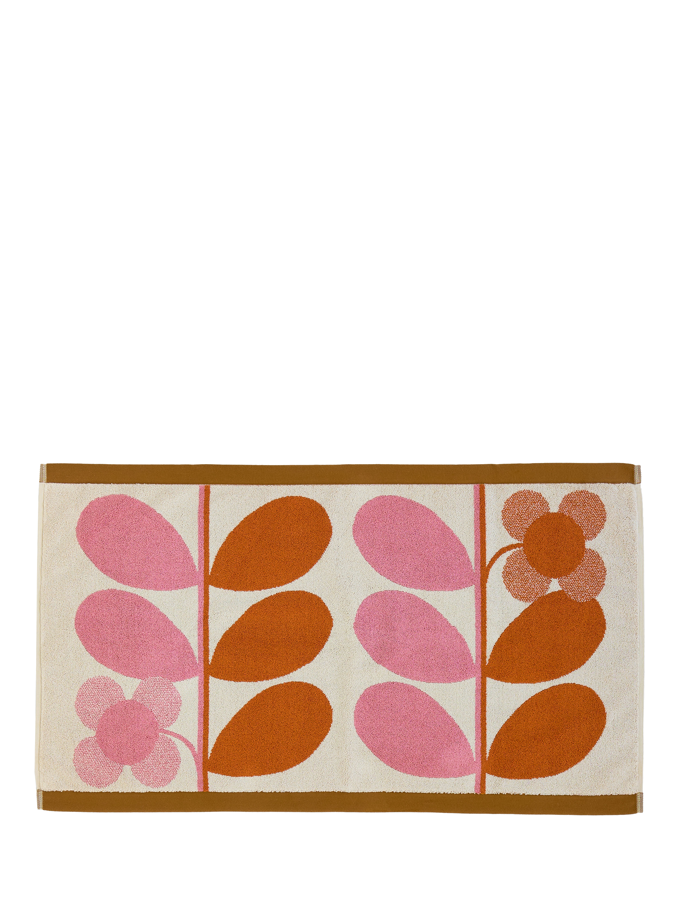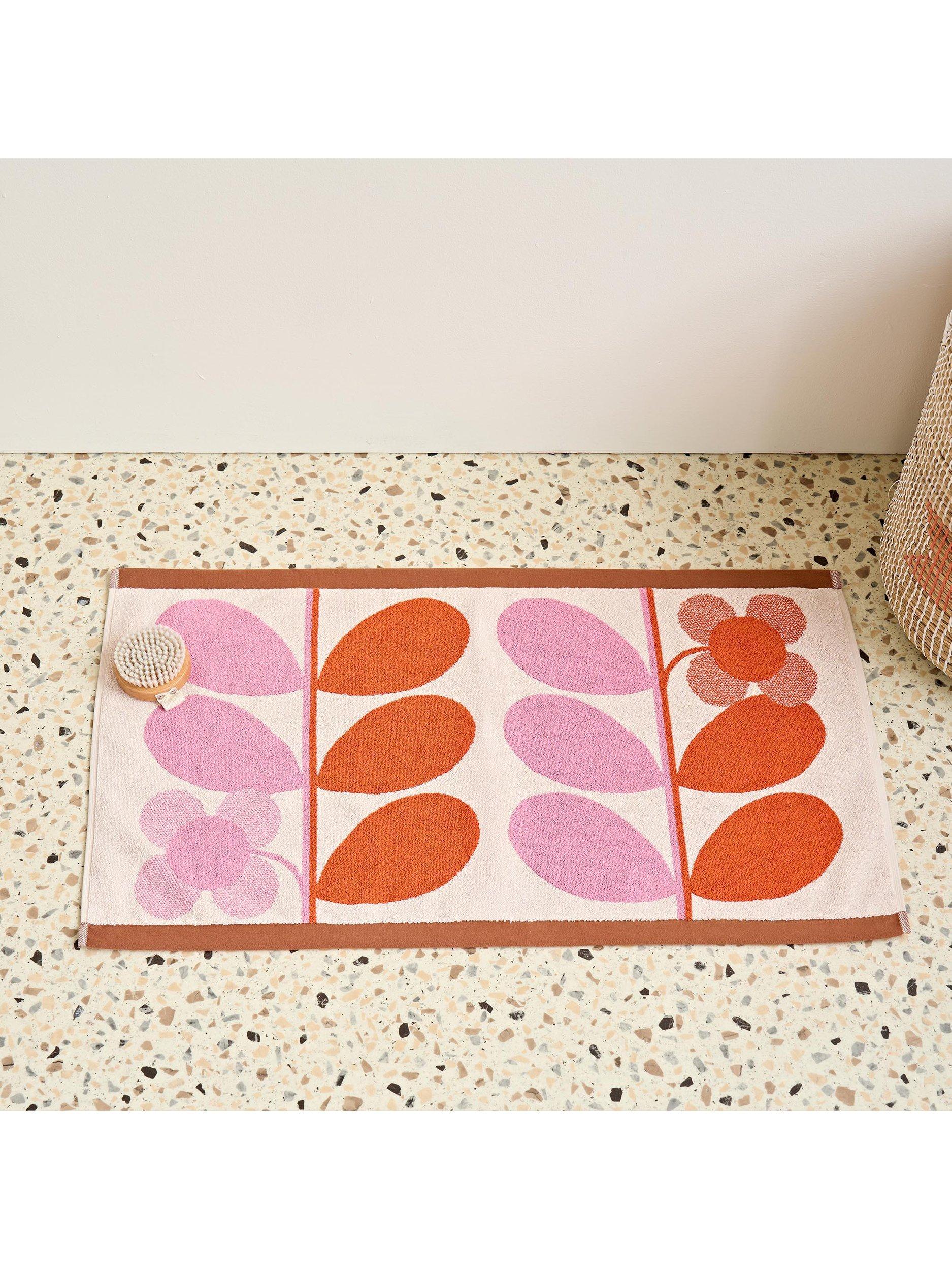 In a joyful palette of bright pink and orange, Orla Kiely's signature stem motif marries beautifully with another quintessential Orla motif, the four-petal flower, to add a playful touch to your bathroom.