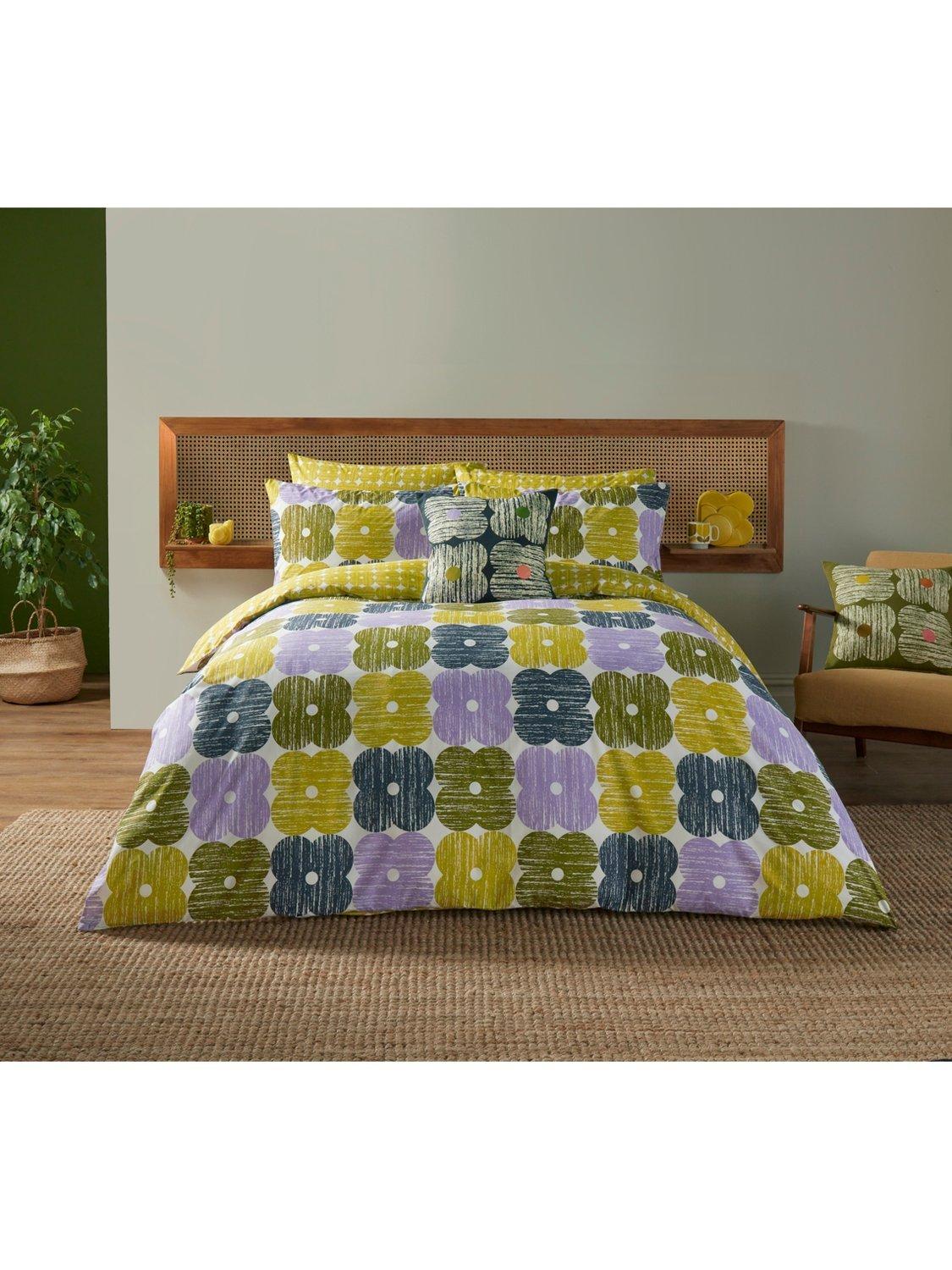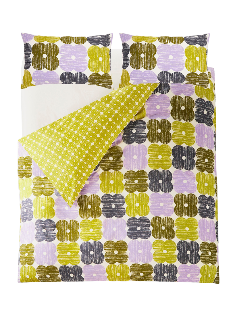 This archival design from Orla Kiely features the iconic four-petal flower combined with a lovely bark texture to create a truly 70s-inspired look. Printed onto a 200 thread-count cotton percale base, this bed set is reversible.