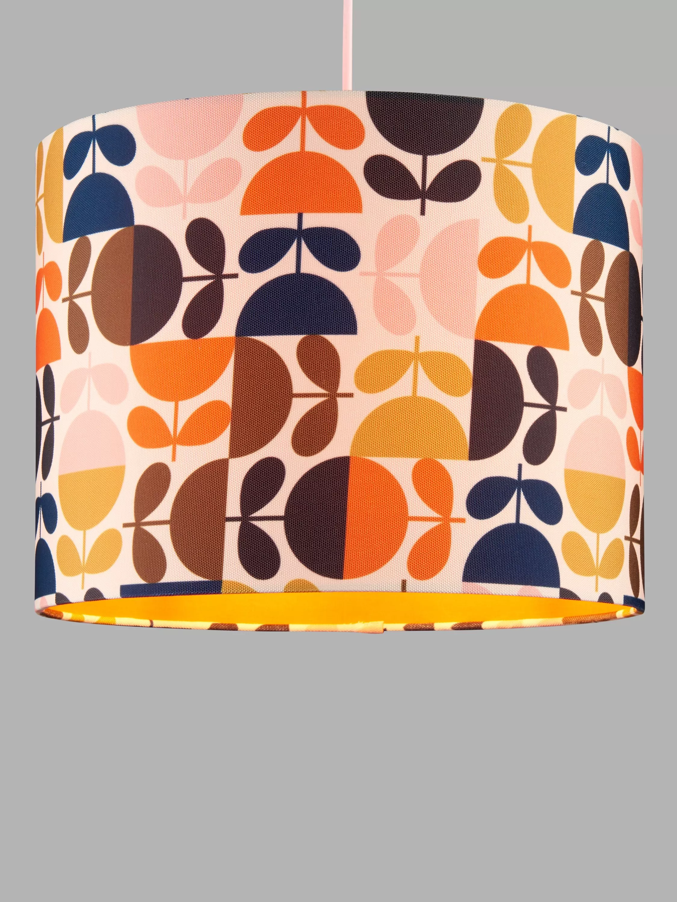 Fun, vibrant and bursting with colour, this lampshade is made from a faux linen fabric and digitally printed with one of Orla Kiely's signature prints. The lining is a contrasting colour to enhance a glow of light and it has a sturdy reversible gimbal fitting which means it can be used both as a ceiling shade or with table lamps. Perfect for giving your space a creative edge.