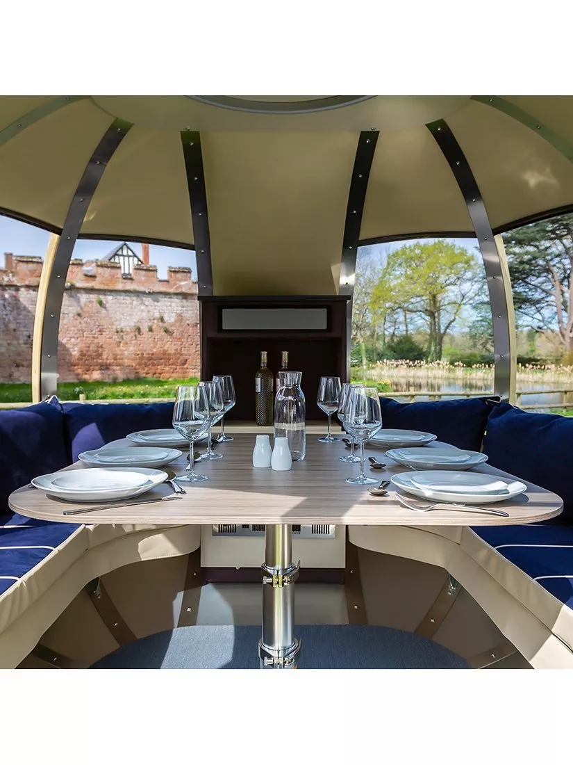 A dining table plus luxurious seating create a space that’s ideal as a study or for entertaining, day or night. The open aspect design is provided by multiple tinted windows that let the light in, making it feel very spacious and giving you uninterrupted 360° views of your garden, rain or shine, without the chill of spring or autumn breezes.