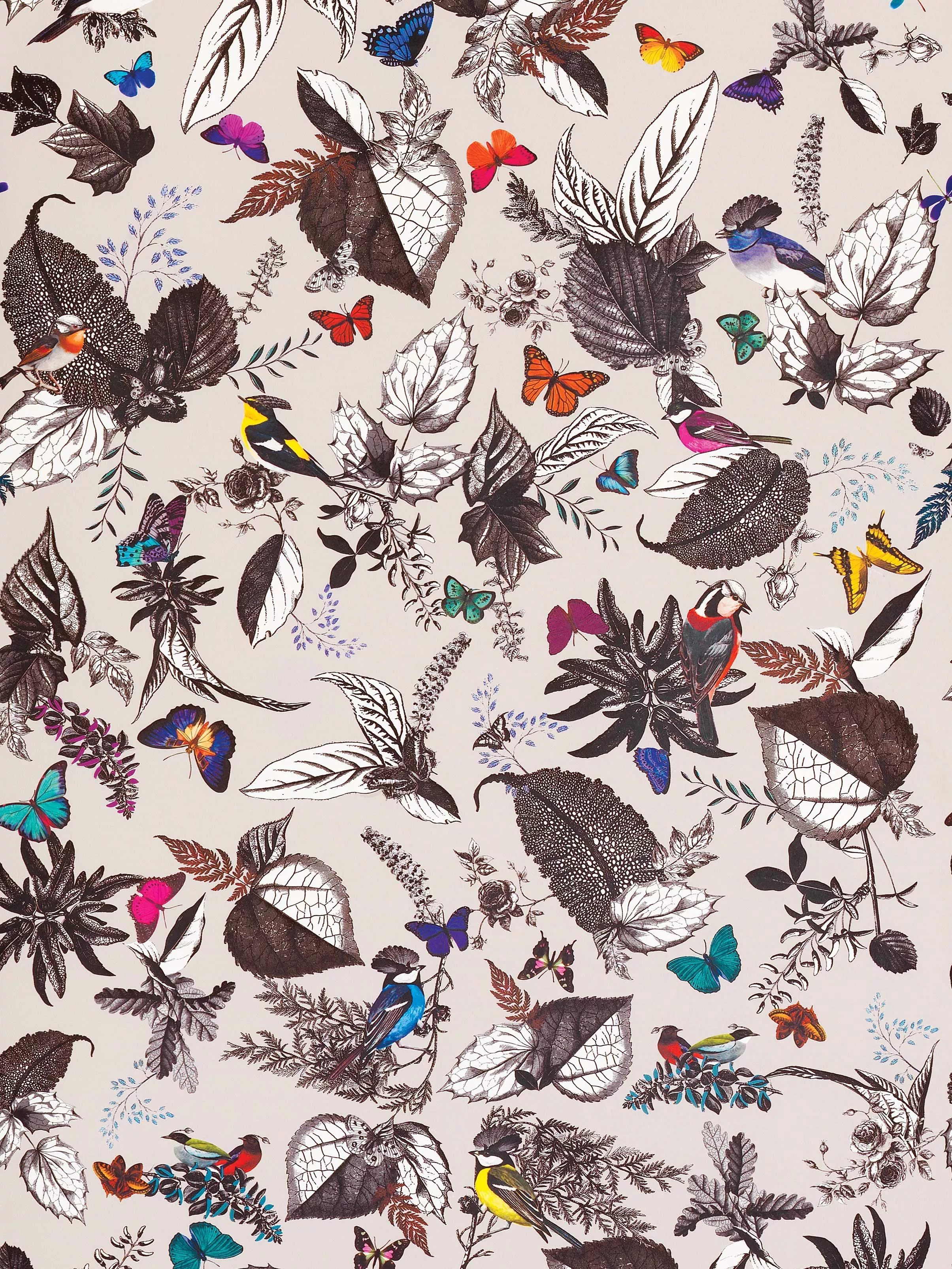 An exotic composition of birds and foliage that have been digitally printed with a repeat of 150cm (59ins).