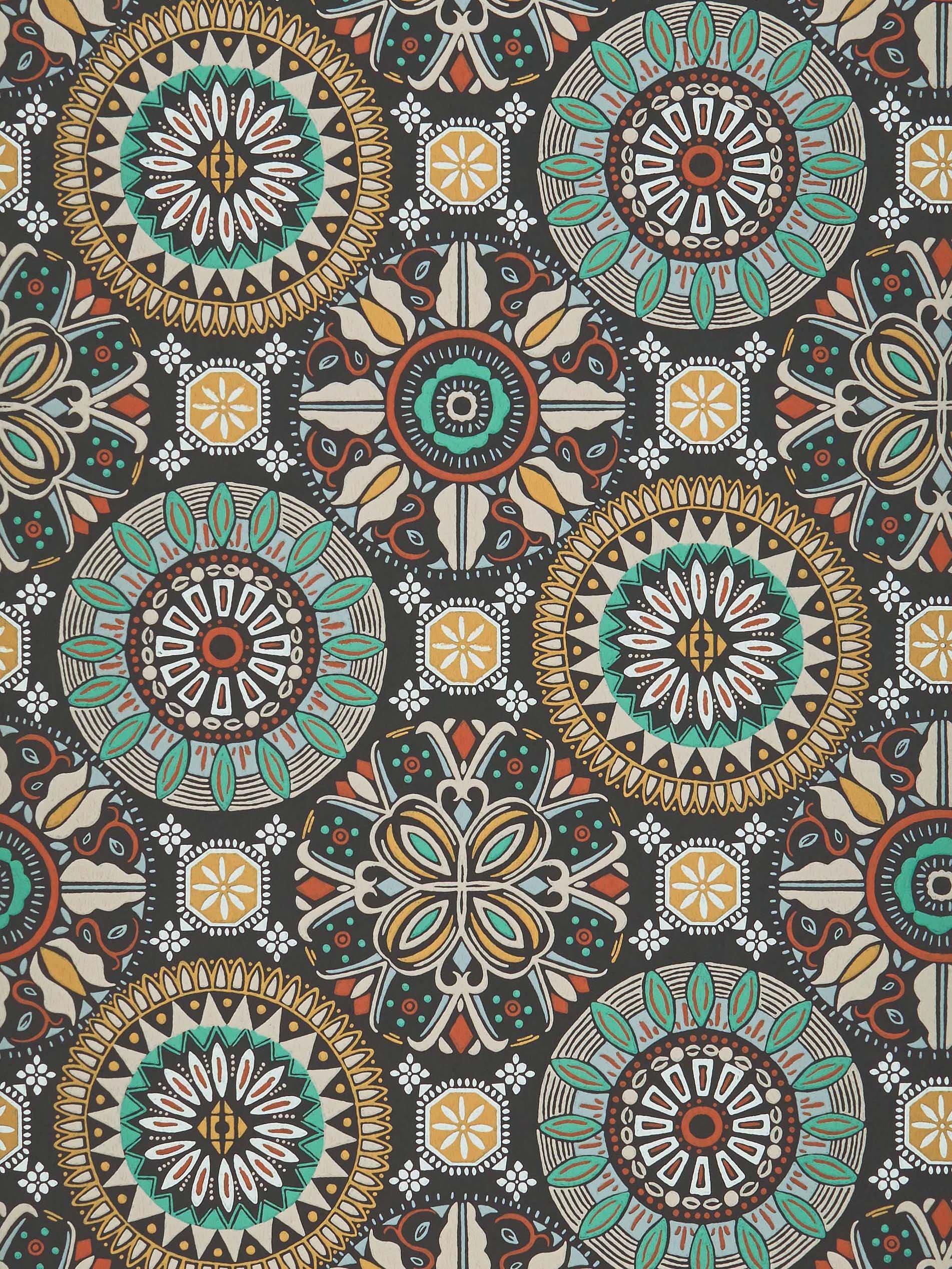An Osborne & Little wallpaper featuring stylised roundels with a Byzantine touch.