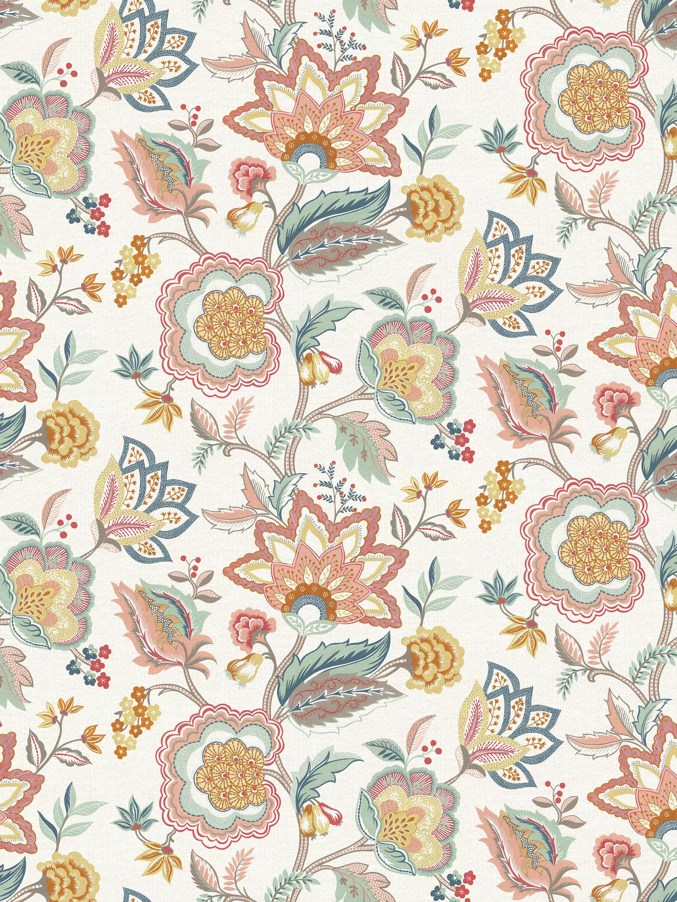 A design of intricately patterned and colourful paisley florals on a printed textured ground. Named after the Samode Palace in Rajasthan, India.