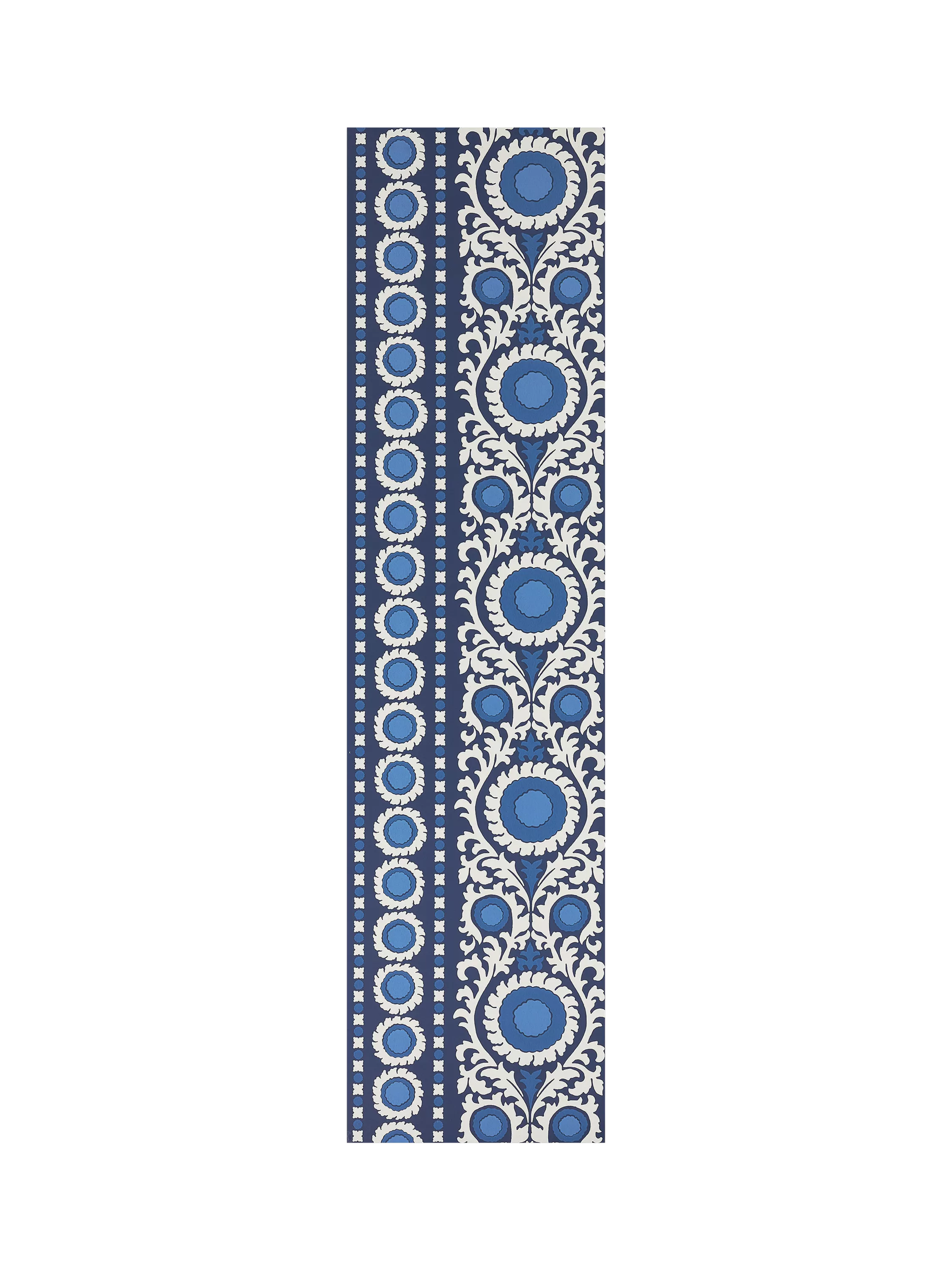 A beautiful Susani-inspired decorative stripe embroidery reminiscent of an heirloom wall hanging, embroidered on a linen ground.