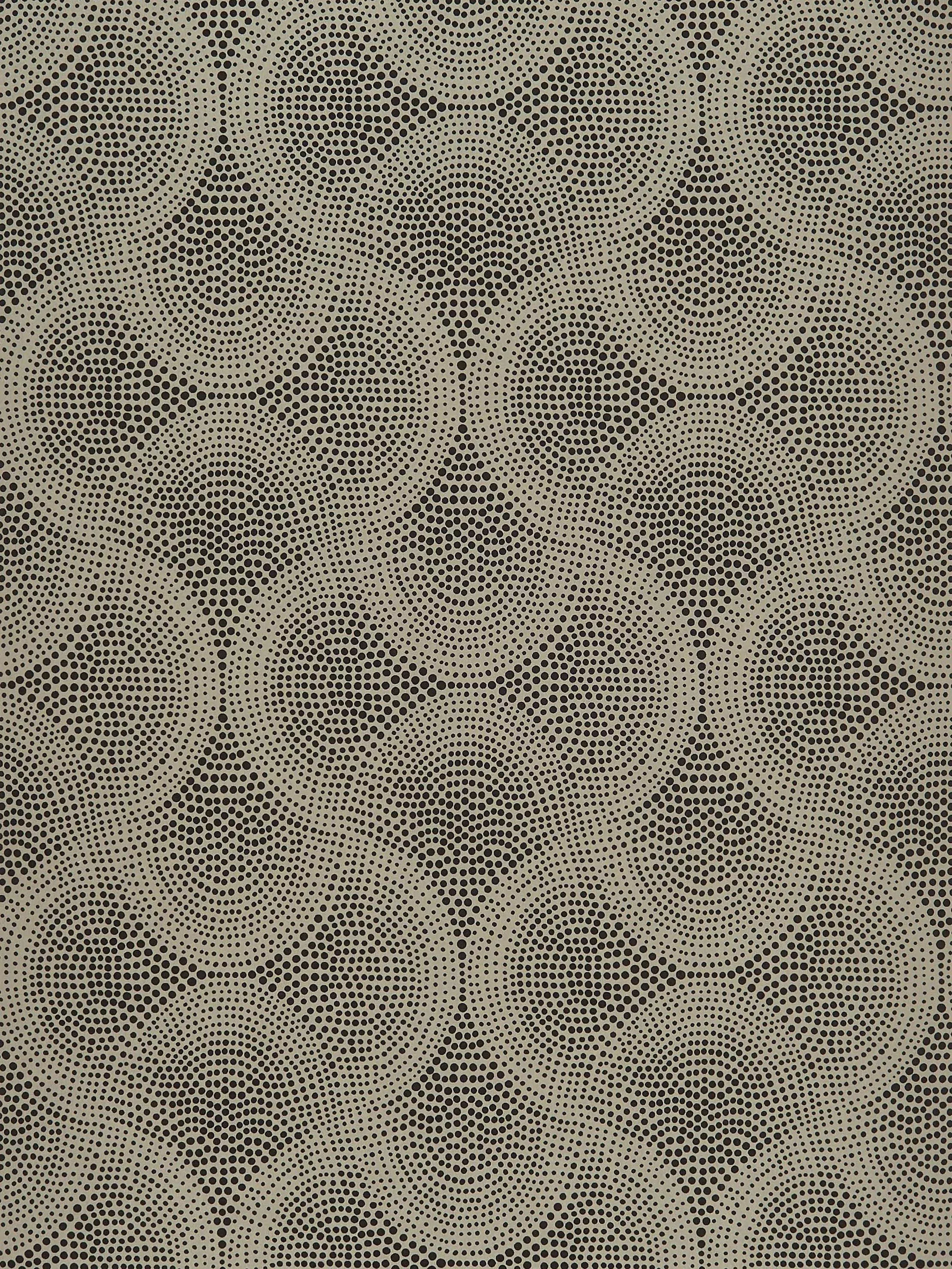 Interlocking ogee shapes are created with hand-drawn dots. Printed with metallic foil and faux suede techniques.