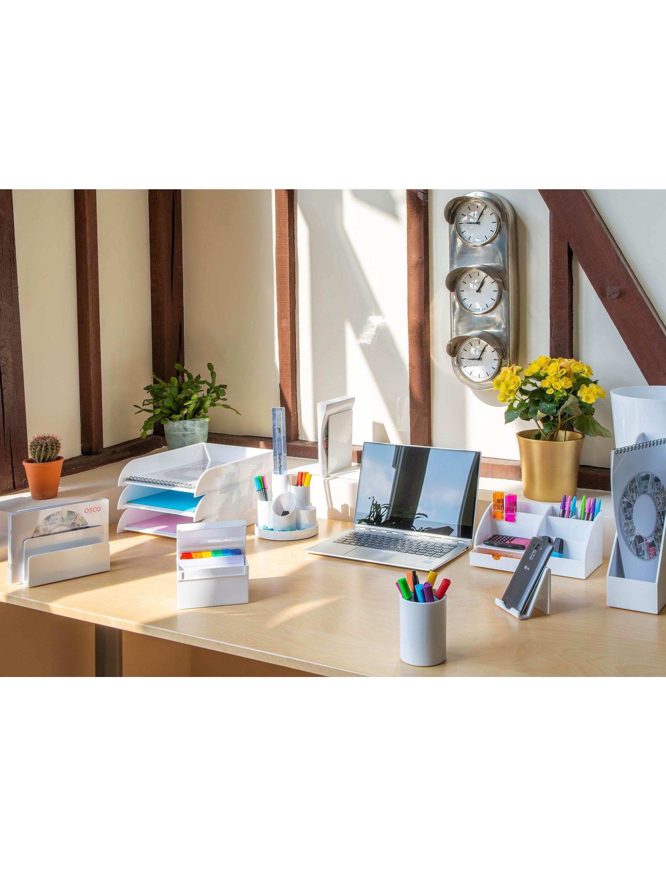 Simply elegant container for all your pens, pencils and scissors. This stylish OSCO pen pot in contemporary, high grade gloss plastic adds a touch of style to your desk.