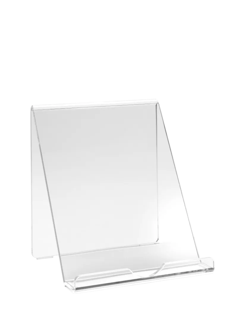 This acrylic iPad/tablet holder provides a perfectly angled platform for Skype, FaceTime with friends, recipes whilst cooking and of course internet browsing and sending emails.