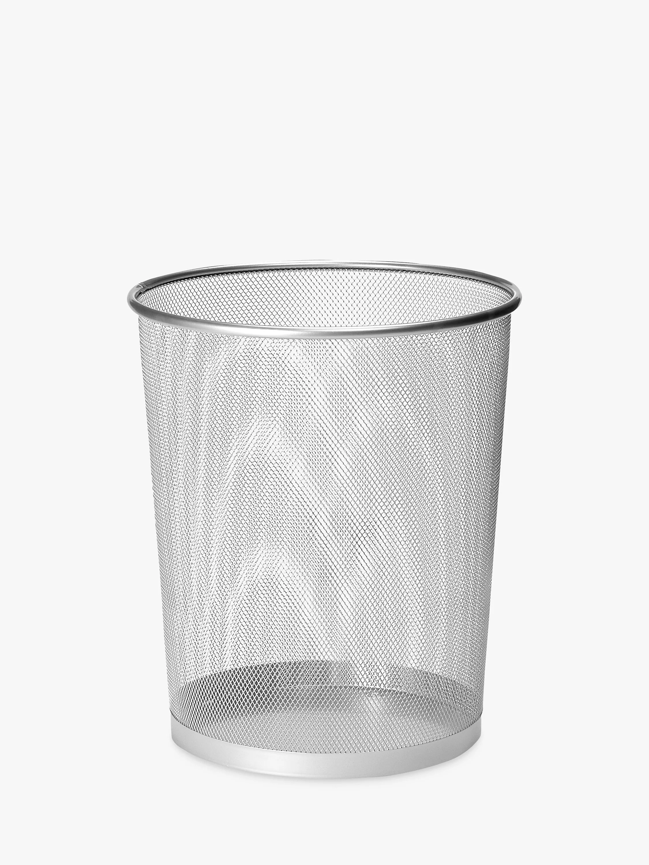 A smart, silver mesh bin that's perfect for the home office.