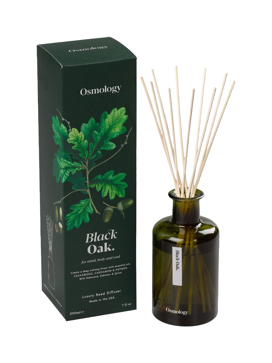 Rich, earthy, and unapologetically grounding — the Black Oak reed diffuser is a sophisticated scent experience for those who love the outdoors. Deep, musky notes inspired by ancient woodlands meet stress-relieving cardamom and nutmeg essential oils. Designed to refresh, restore, and bring the clarity of nature into your home. A bold, masculine fragrance to help you reconnect and restore balance.