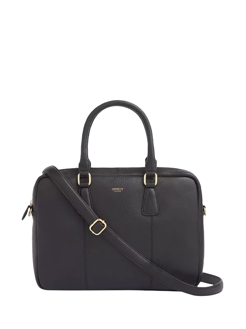 The OSPREY LONDON Adaline Leather Laptop Bag has minimal hardware for a clean, contemporary and professional look. A4 compatible laptop bag for up to a 14” device, with a tech friendly interior. Features two rolled leather dropdown handles on a double leather mount. Detachable and adjustable flat leather cross body strap for hands free usage. The strap has two gold metal dog clips to hook onto the gold metal D rings on the bag. Comes with a dust bag.