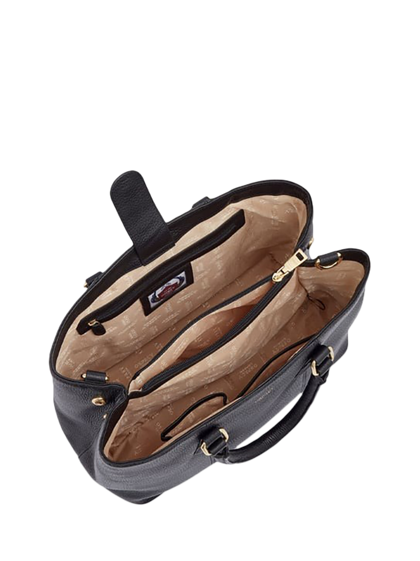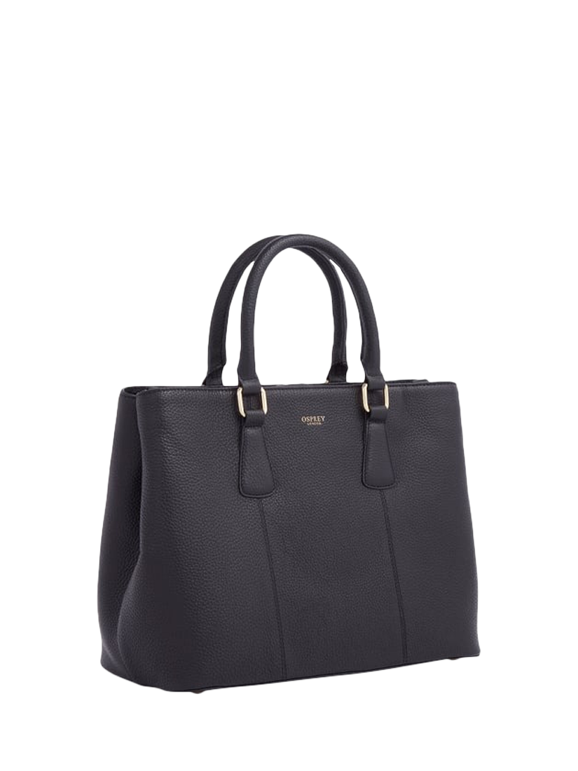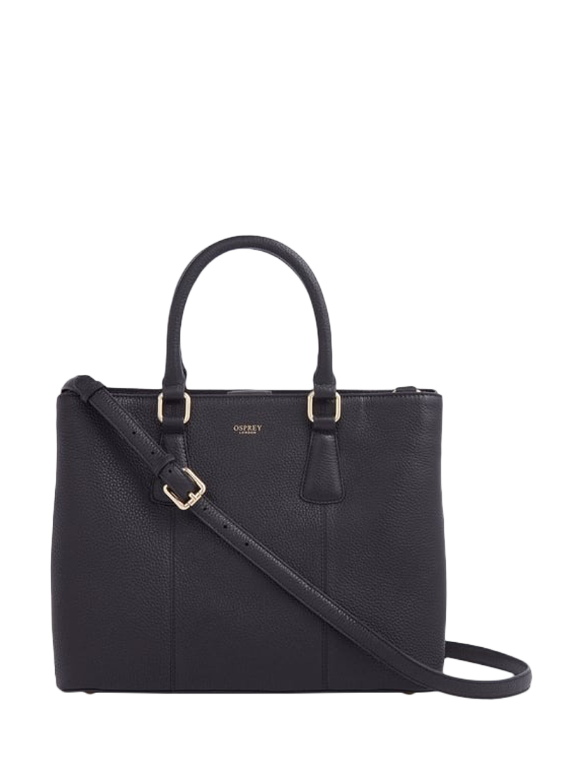The OSPREY LONDON Adaline Leather Workbag is expertly crafted in sumptuous grainy hide leather. The two rolled leather drop-down handles attach to gold metal rings and come with an adjustable and detachable strap to carry on the shoulder or across the body. Features a slip pocket on the reverse, magnetic popper closure, and zip for the central compartment. Lined throughout in signature OSPREY LONDON beige jacquard fabric. Comes with a dust bag.