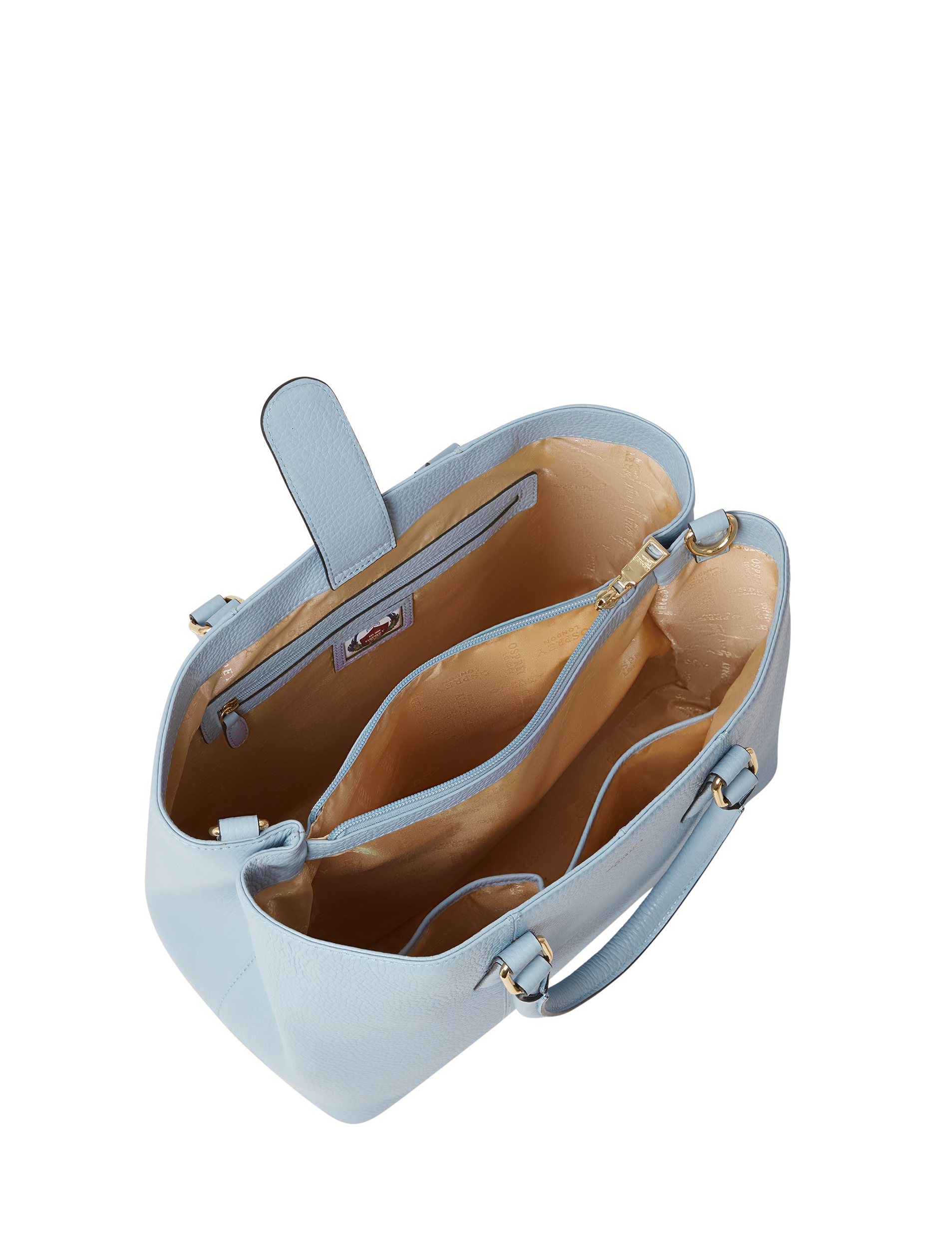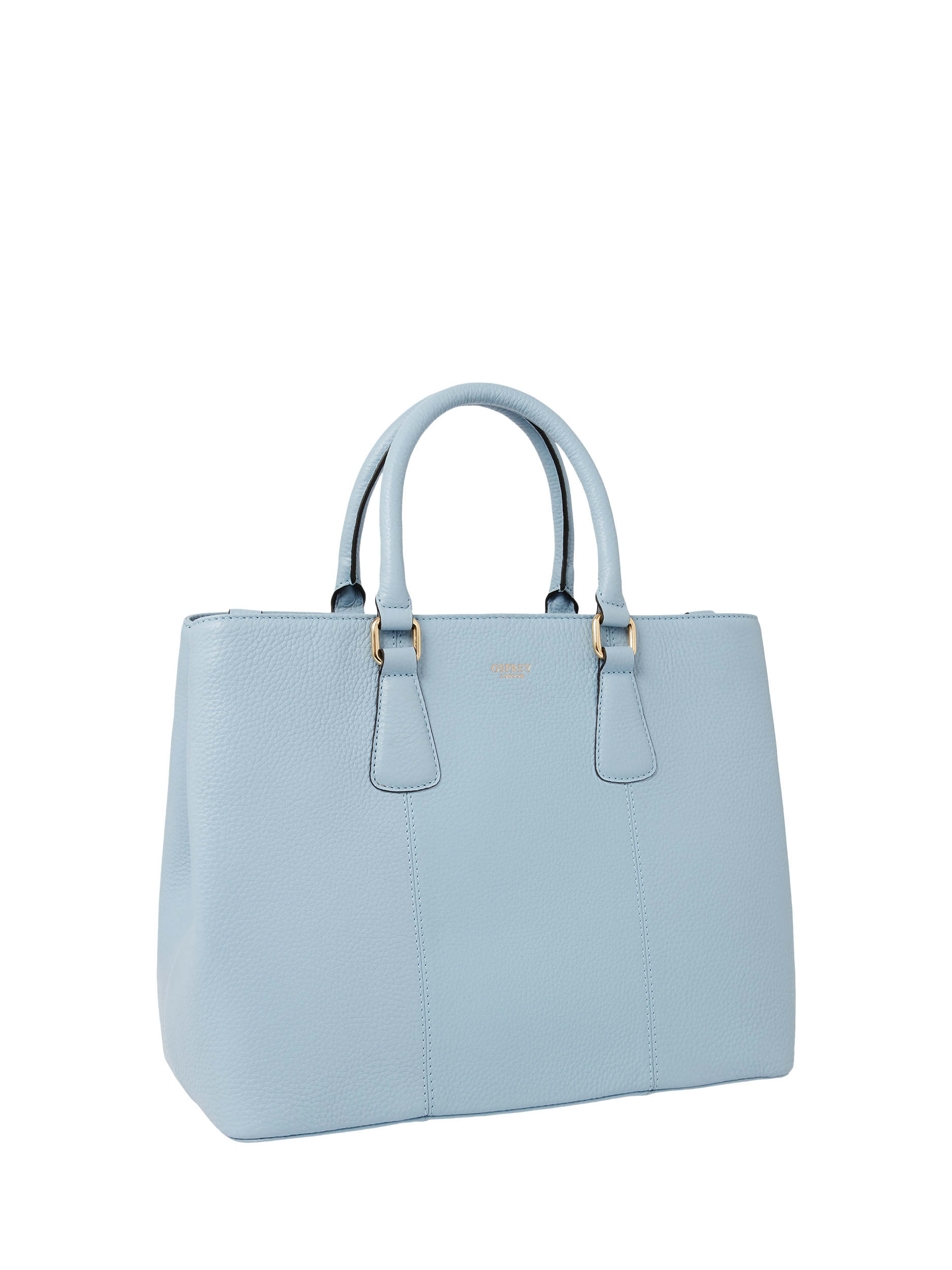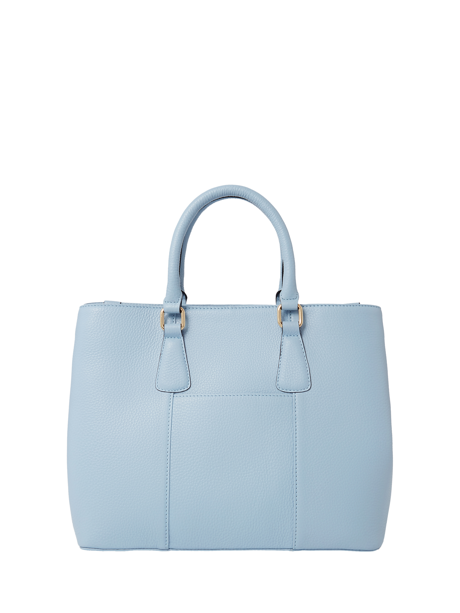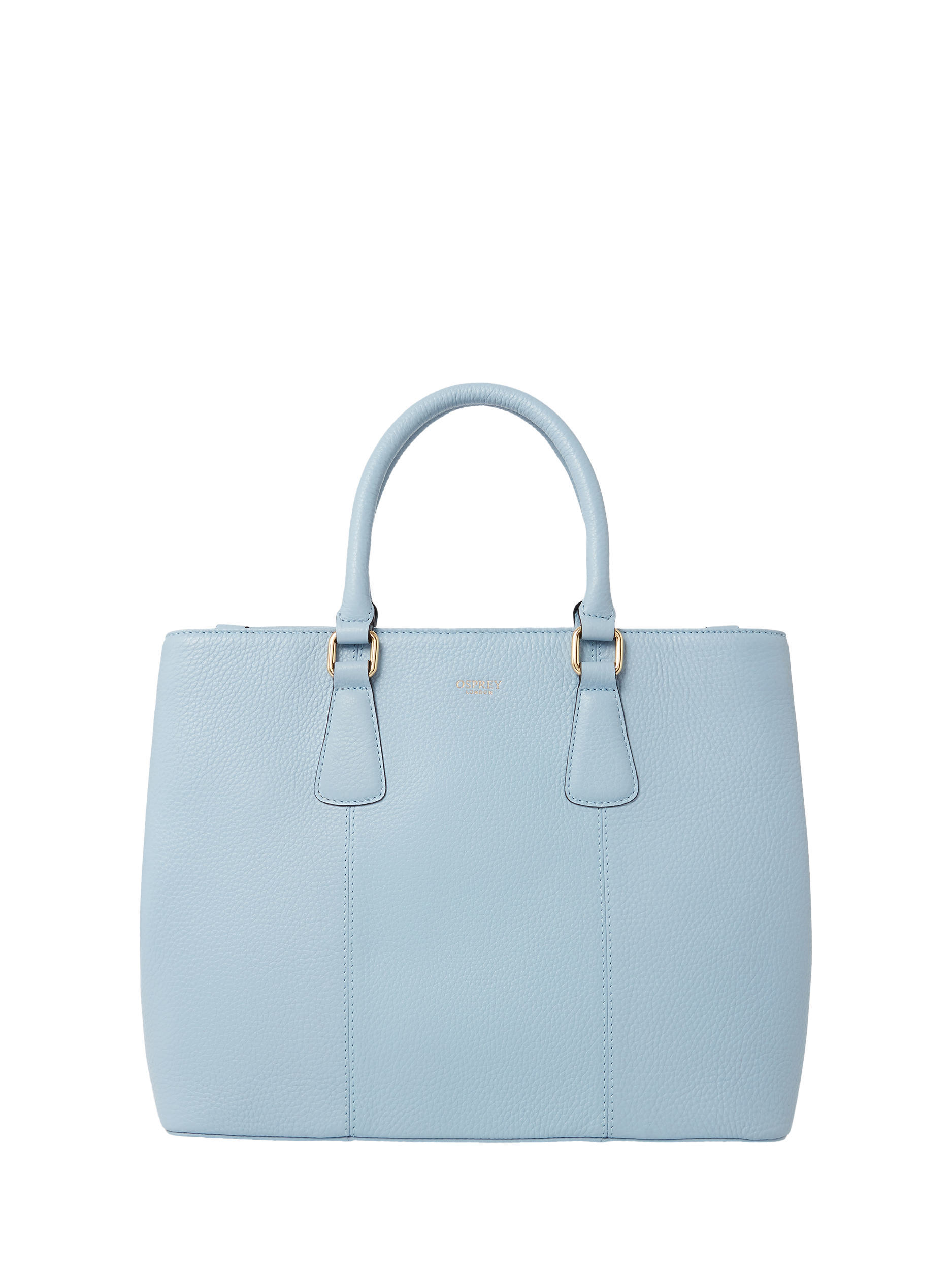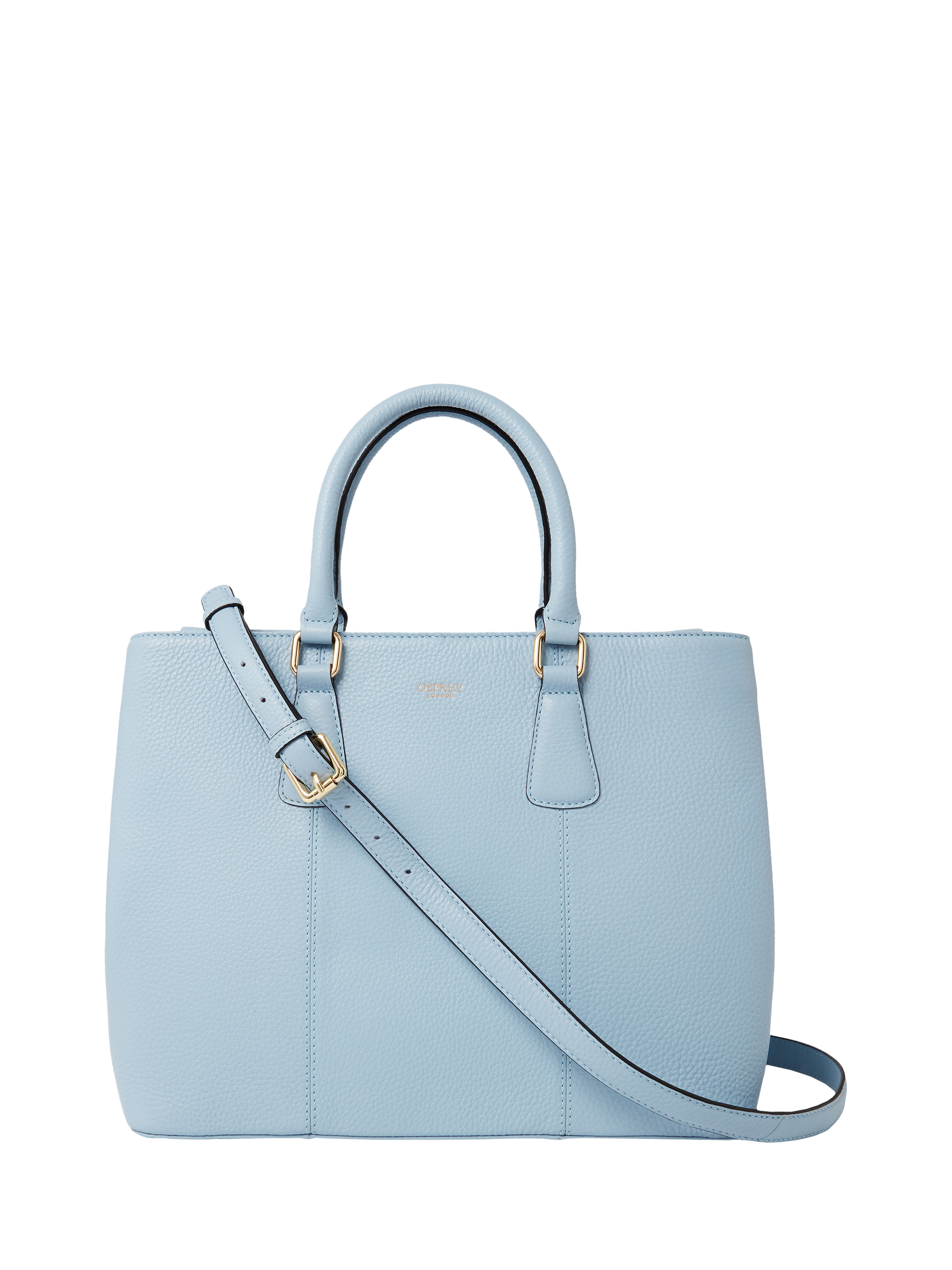 The OSPREY LONDON Adaline Leather Workbag is expertly crafted in sumptuous grainy hide leather. The two rolled leather drop-down handles attach to gold metal rings and come with an adjustable and detachable strap to carry on the shoulder or across the body. Features a slip pocket on the reverse, magnetic popper closure, and zip for the central compartment. Lined throughout in signature OSPREY LONDON beige jacquard fabric. Comes with a dust bag.