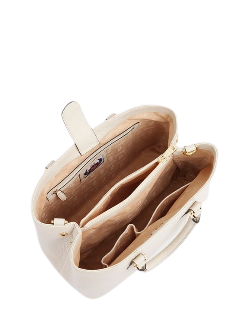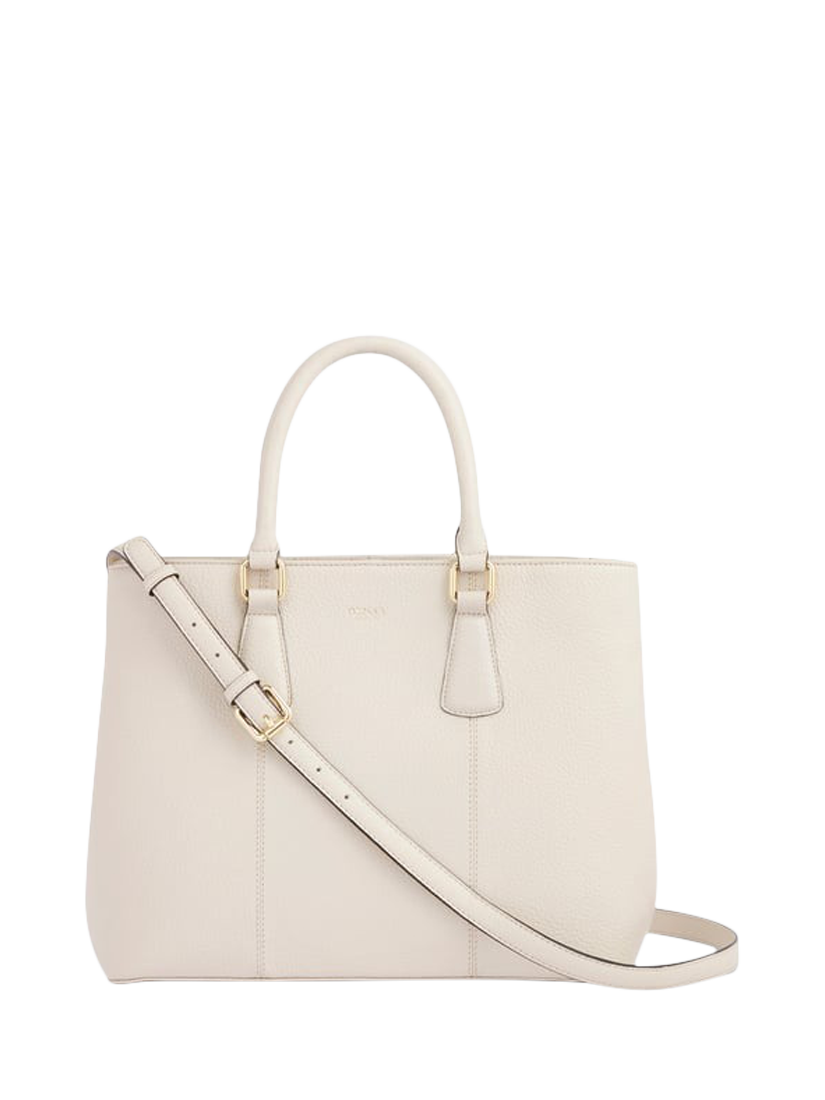 The OSPREY LONDON Adaline Leather Workbag is expertly crafted in sumptuous grainy hide leather. The two rolled leather drop-down handles attach to gold metal rings and come with an adjustable and detachable strap to carry on the shoulder or across the body. Features a slip pocket on the reverse, magnetic popper closure, and zip for the central compartment. Lined throughout in signature OSPREY LONDON beige jacquard fabric. Comes with a dust bag.
