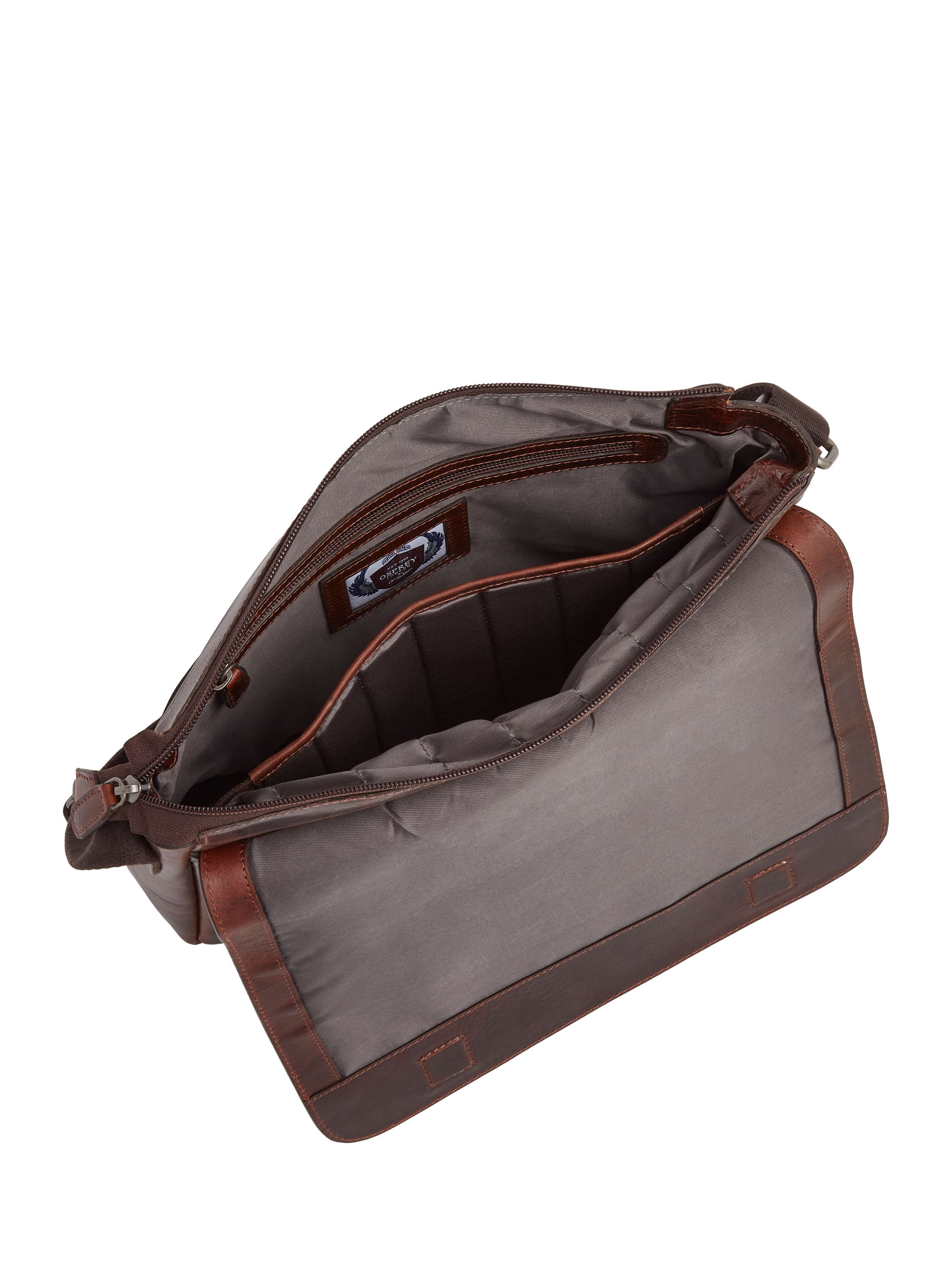 The Large Brooks leather messenger is a business-ready workbag, handcrafted in caddle leather with a tech friendly padded interior to hold up to a 13" laptop or tablet.