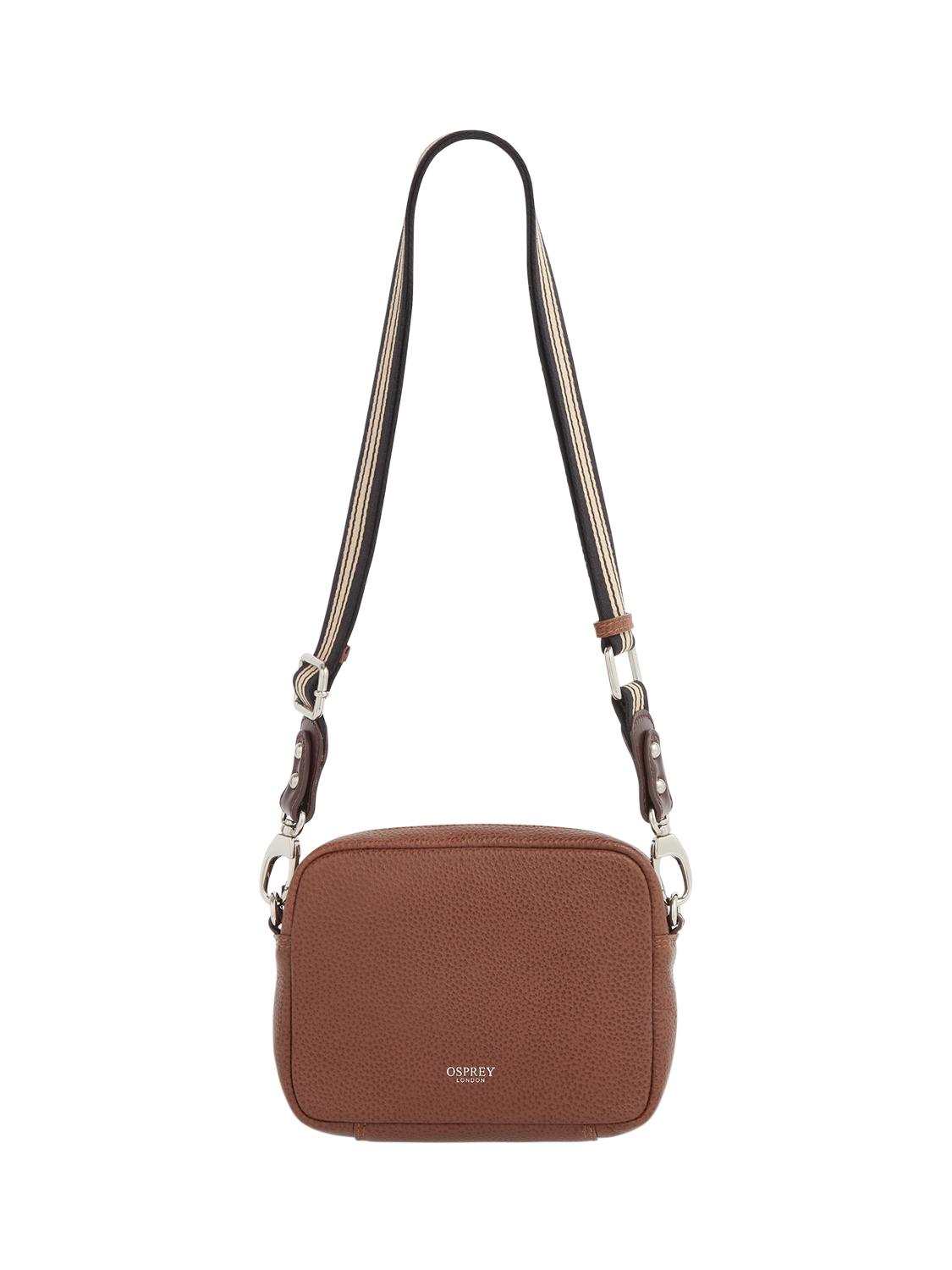 The Chiswick convertible is expertly crafted in sumptuous grainy hide leather, with a varsity-inspired detachable and adjustable webbing strap, allowing you to carry as a clutch, wear across the body or on the shoulder. The reverse features a zipped pocket, while the inside is designed with an slip pocket. Comes with an OSPREY LONDON dust bag.