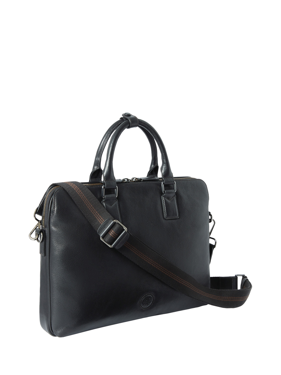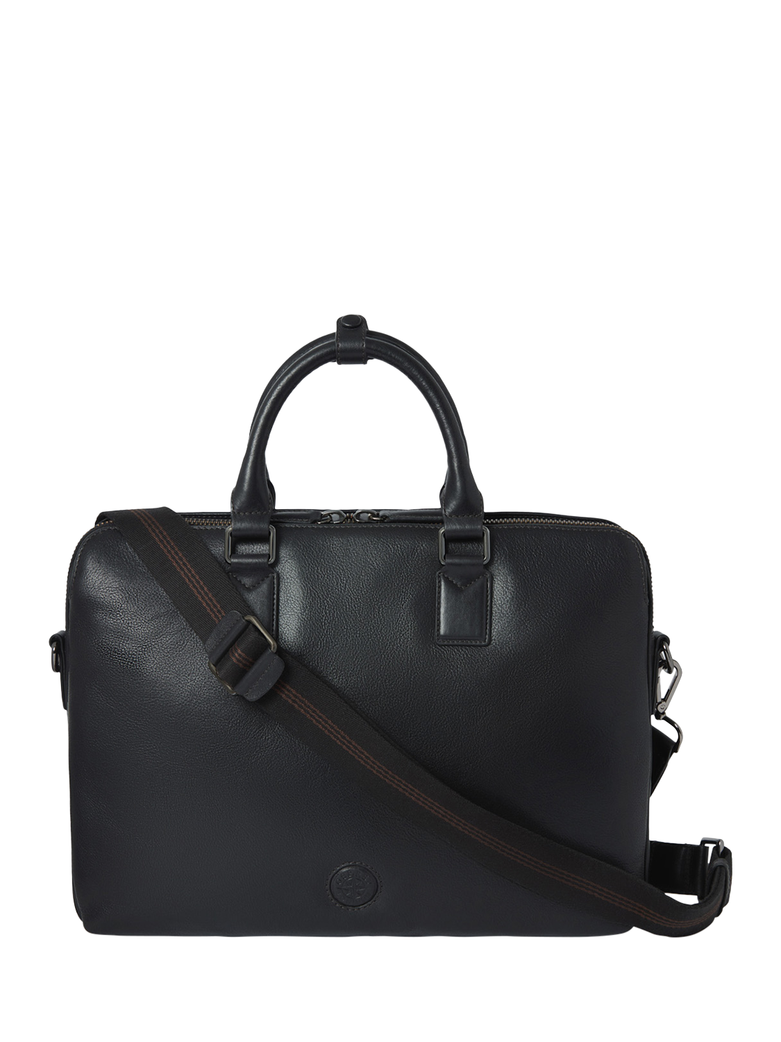 Designed with convenience in mind and boasting an extra internal pocket to carry your phone and tablet devices, this is the perfect travel companion. Use the grab handles or the adjustable and detachable shoulder strap for carrying, and secure it with the zip closure. Inside, there's space for a laptop up to 18 inches. Beautifully crafted in leather and finished with a branded logo.