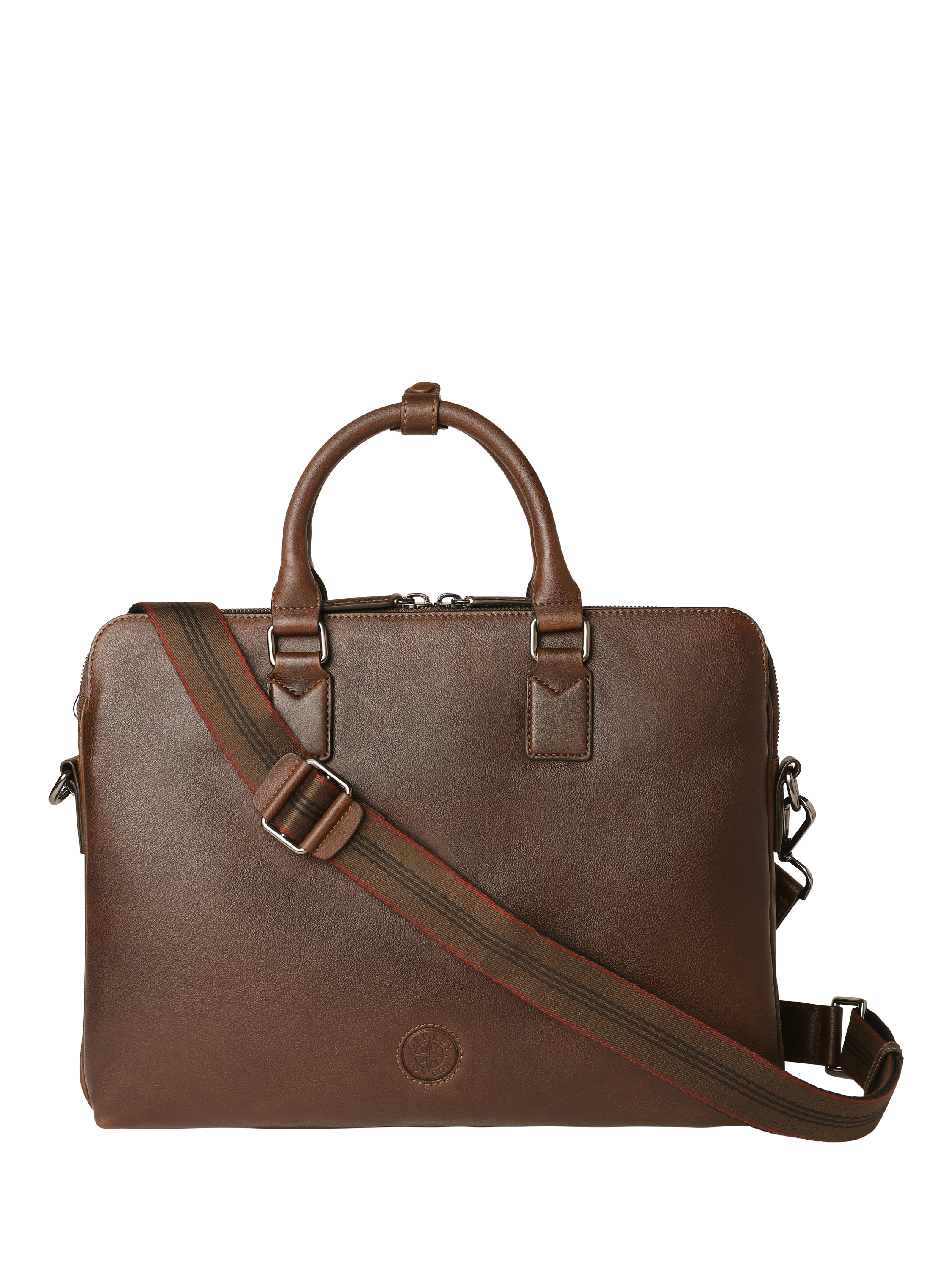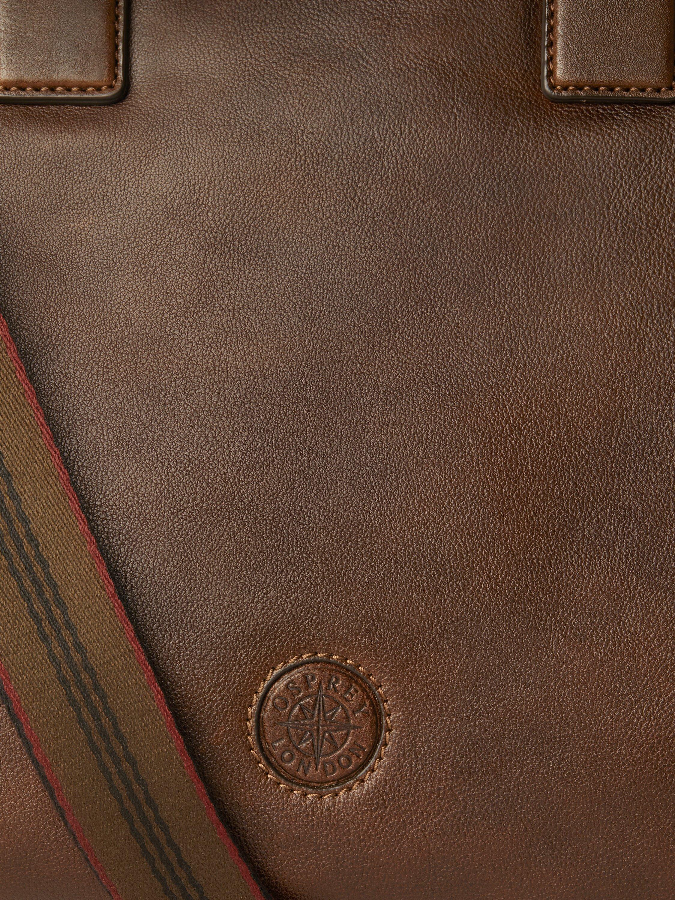 Designed with convenience in mind and boasting an extra internal pocket to carry your phone and tablet devices, this is the perfect travel companion. Use the grab handles or the adjustable and detachable shoulder strap for carrying, and secure it with the zip closure. Inside, there's space for a laptop up to 18 inches. Beautifully crafted in leather and finished with a branded logo.