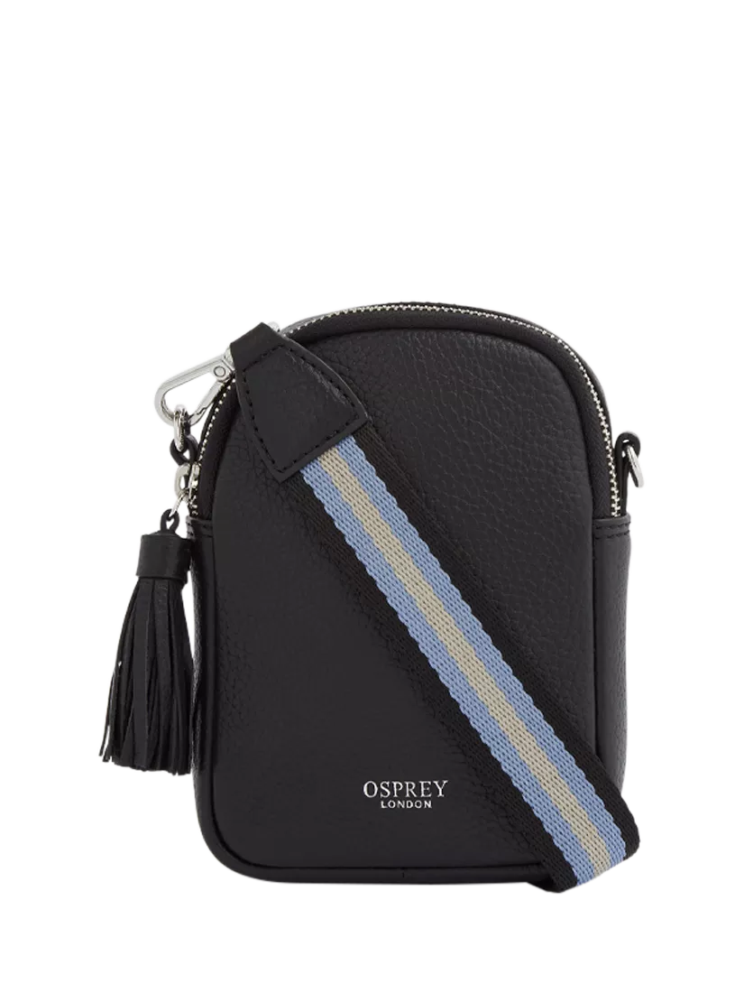 The Stella Phone Bag features two dedicated compartments for your phone, cards, and cash, and comes with an adjustable webbing strap, you can wear it with ease across the body. Handcrafted in supple grainy hide leather, and finished with silver metal hardware and tassel detailing.