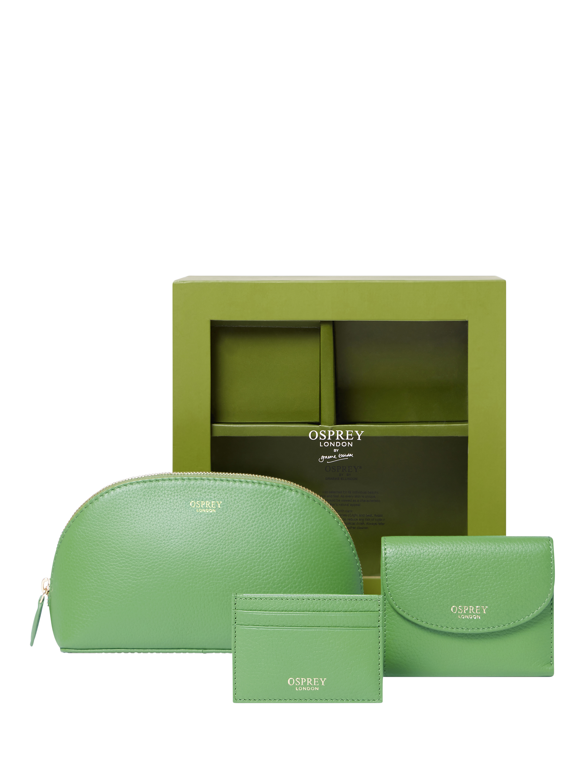 In smart leather, this elegant OSPREY LONDON presentation box contains The Tilly Matinee Purse, Cardholder and Make-Up Bag: three matching travel accessories for the chic traveller, crafted in Grainy Hide leather.
