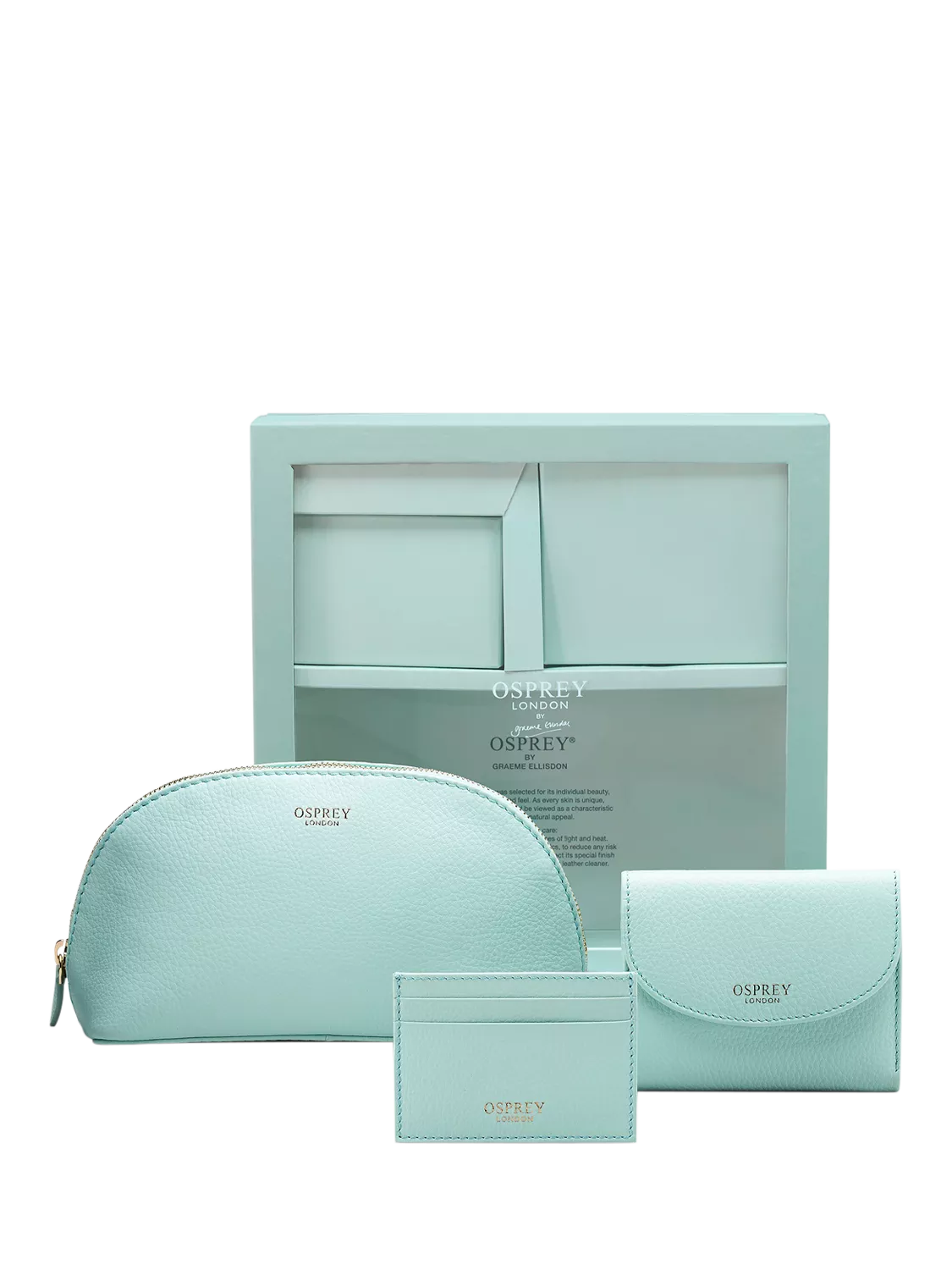 In smart leather, this elegant OSPREY LONDON presentation box contains The Tilly Matinee Purse, Cardholder and Make-Up Bag: three matching travel accessories for the chic traveller, crafted in Grainy Hide leather.