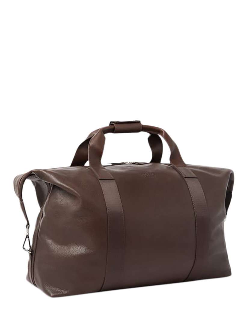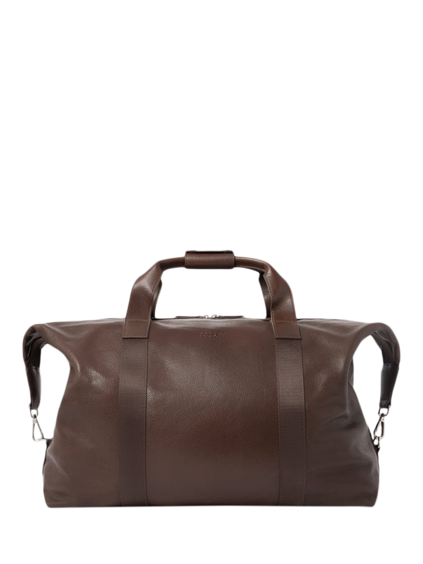 Crafted in tumbled grain leather that develops character over time, the Toby Weekender is a rugged, yet refined travel holdall designed for those who pack with purpose. Incredibly spacious, its roomy interior easily fits clothing, shoes, and grooming gear for weekends away or longer adventures. Whether you're heading to the gym or catching a flight, the detachable, adjustable nylon webbing strap offers a comfortable carry. Clip the sides in for a sleeker profile or unclip them to expand the bag’s capacity.