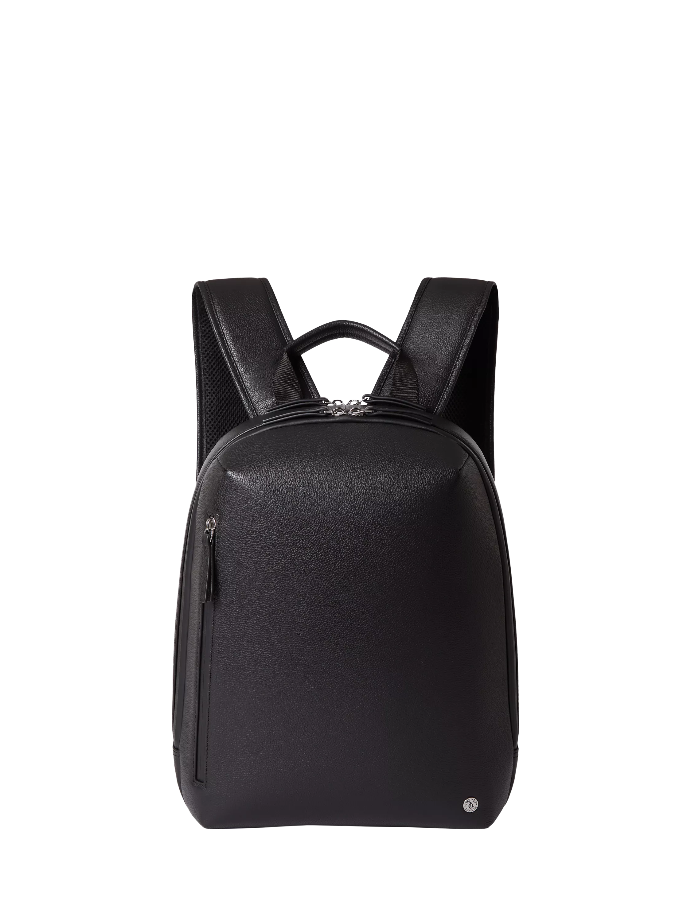 This sleek and versatile leather backpack is designed to keep up with modern life. Expertly crafted from supple leather and technical nylon for enhanced comfort, it features two padded sections for your tech, an elasticated water bottle holder, dedicated sections for pens, slip and zipped pockets, and a key strap, all nestled within an A4-compatible interior. Crafted in supple grainy hide leather. Designed with fully adjustable straps, while the rear compartment features a large, padded pocket to hold up to a 15” laptop, a smaller padded suede slip pocket that can fit up to a 9” screen and 11 card slots. Comes with a dust bag.