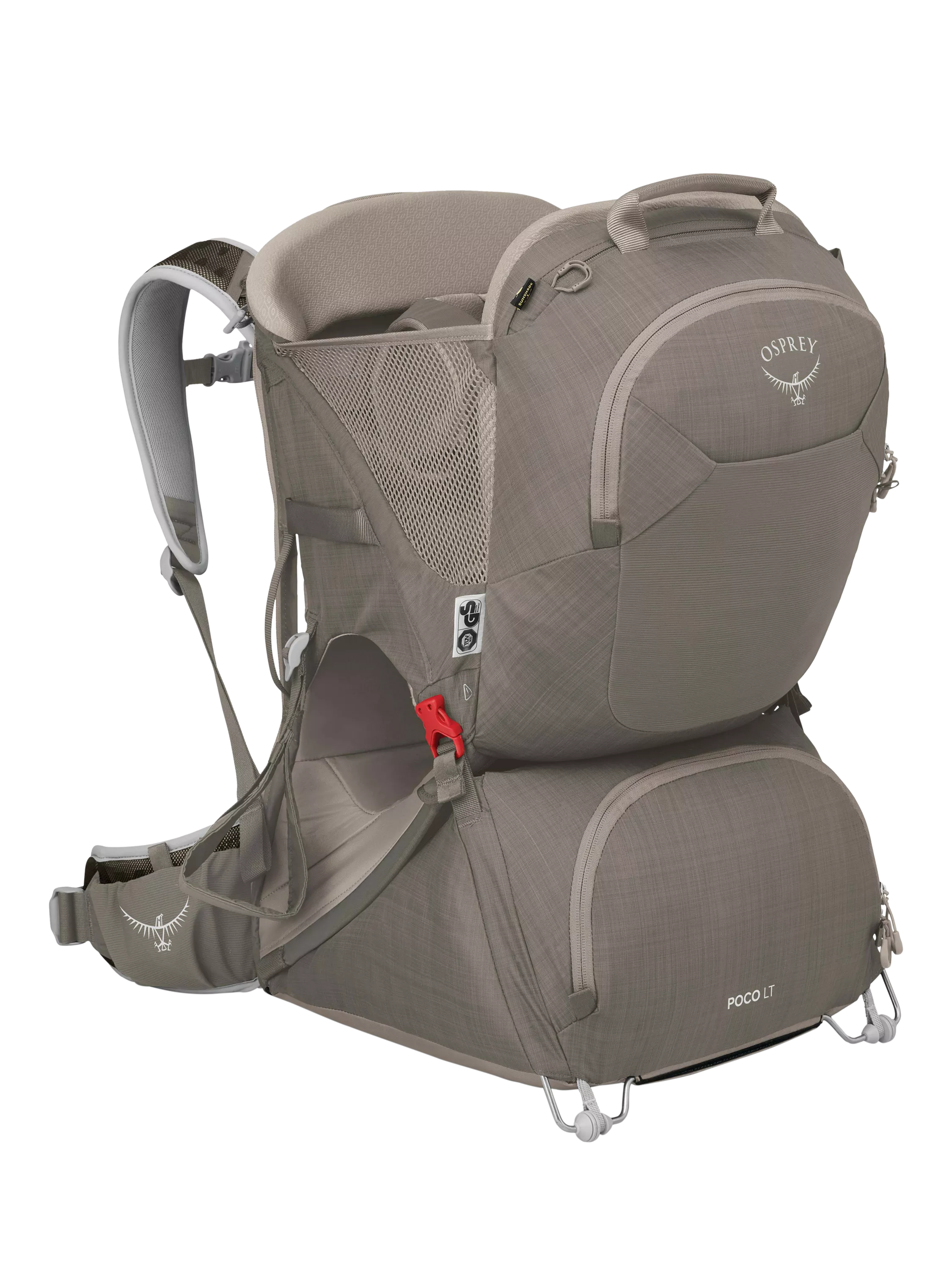 This lightweight child carrier is ideal for tight stores, busy sidewalks and shorter hikes. Osprey's patented lightweight frame folds flat for storage. Featuring ventilated AirScape™ suspension and adjustability to fit a variety of body shapes and a built-in UPF 50 sunshade.