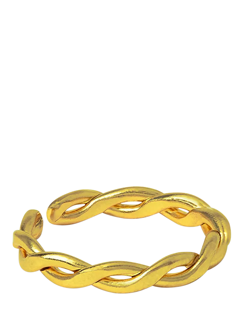 Let your ring stack do the talking with this chic gold band ring. Handcrafted with a sleek twist detail, it can be adjusted for the perfect fit so you can style this stacking ring on any finger. Crafted in 21ct gold plate on recycled brass.