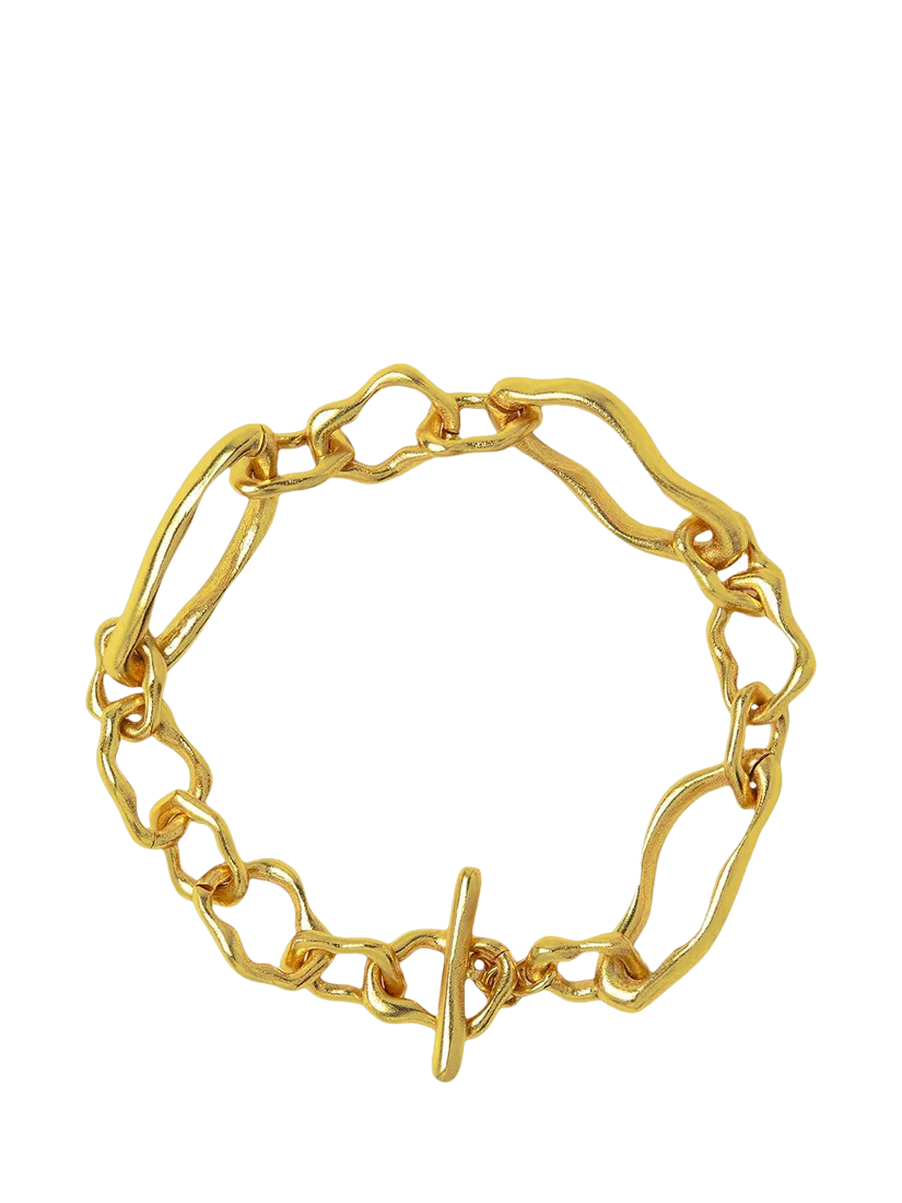 Adorn your wrists with this artisan chain bracelet, handmade in our Istanbul. Secured with a T-bar closure, this statement bracelet is hand-crafted with irregular shaped links for a unique look.