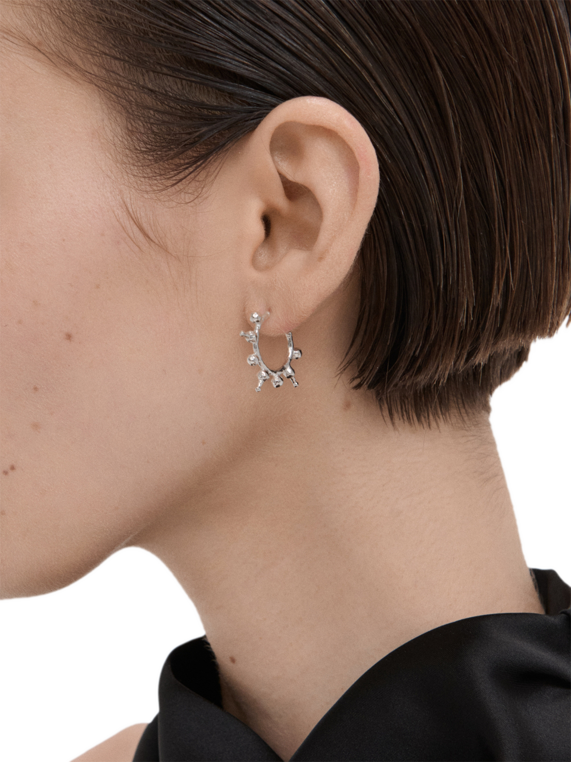 These small hoop earrings have been crafted with recycled sterling silver. They can be worn as a pair or styled with other earrings for an elevated ear stack look. Ear posts are secured with a butterfly clasp. Suitable for pierced ears only.