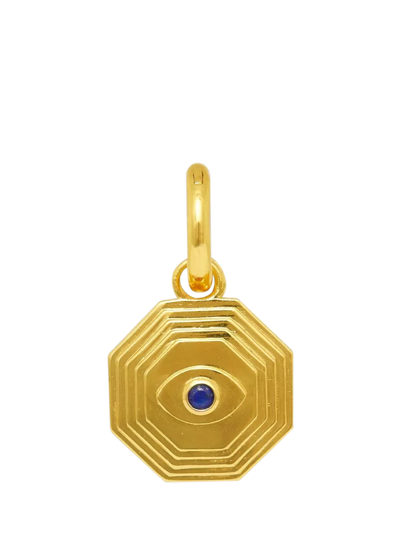 Tell your personal style story with charms by Ottoman Hands. The Lapis Art Deco Evil Eye Charm is a modern take on classic evil eye symbolism. Crafted from 18ct gold-plated recycled brass, this charm features a deep blue lapis stone set in an octagonal frame, adorned with an evil eye design symbolising protection and positivity.