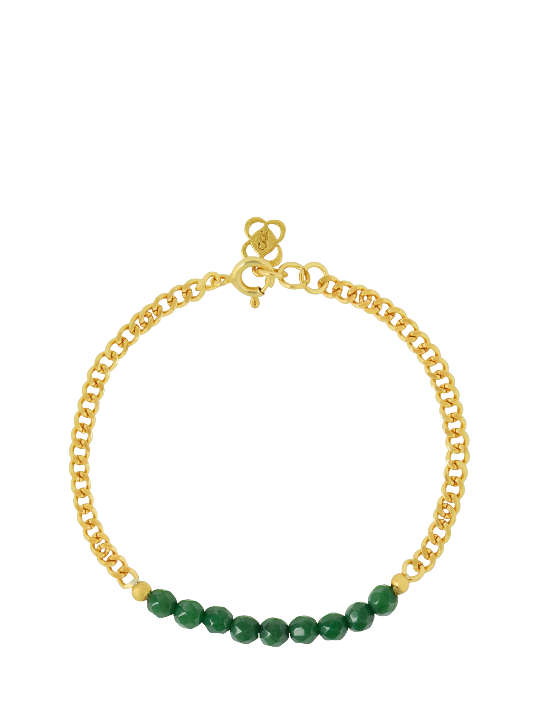 Versatile and easy to layer, this beaded chain bracelet is handmade with 21ct gold-plated recycled brass and vibrant green jade faceted beads. Secured with a bolt-ring fastening.