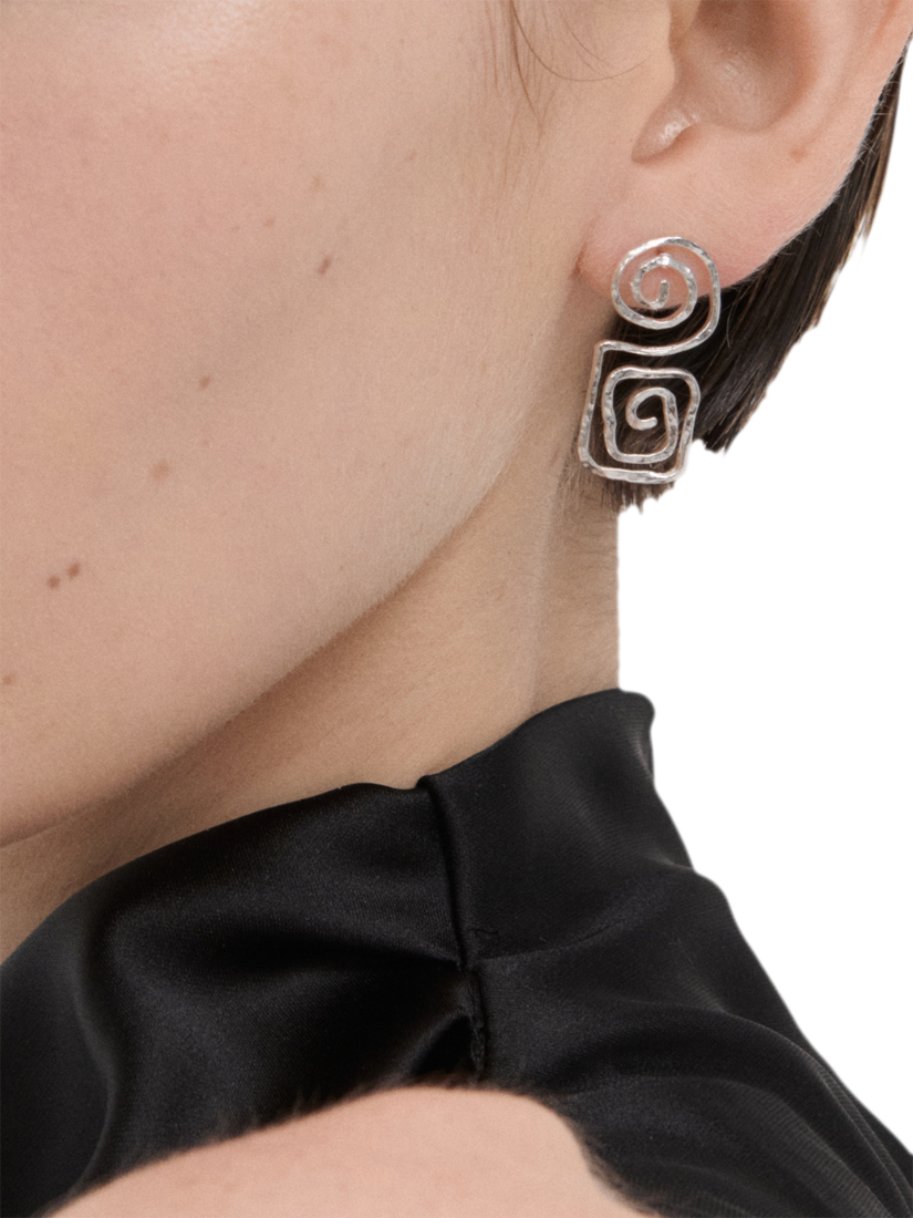 Ottoman HandsMegara Geometric Spiral Earrings, Silver
