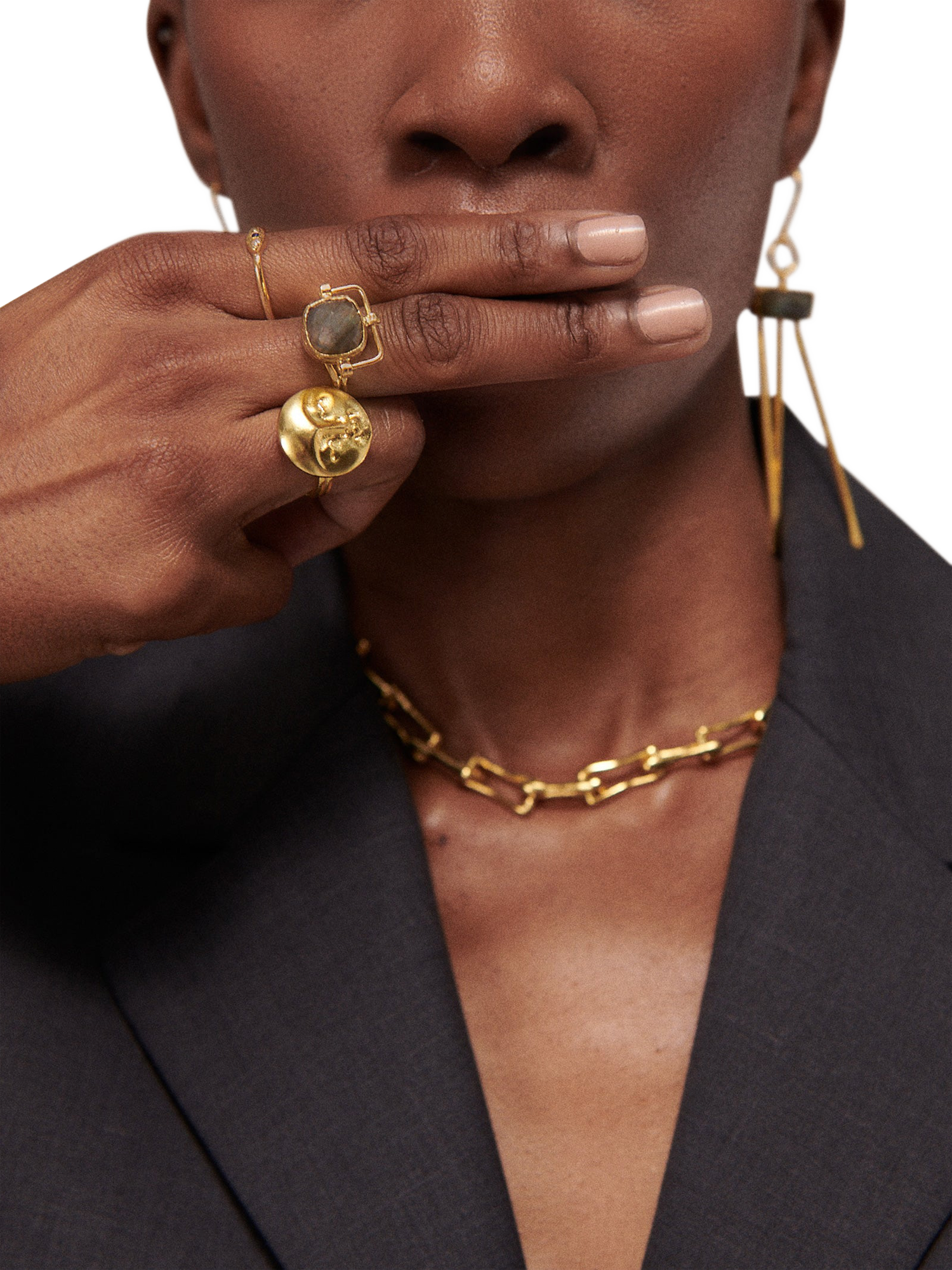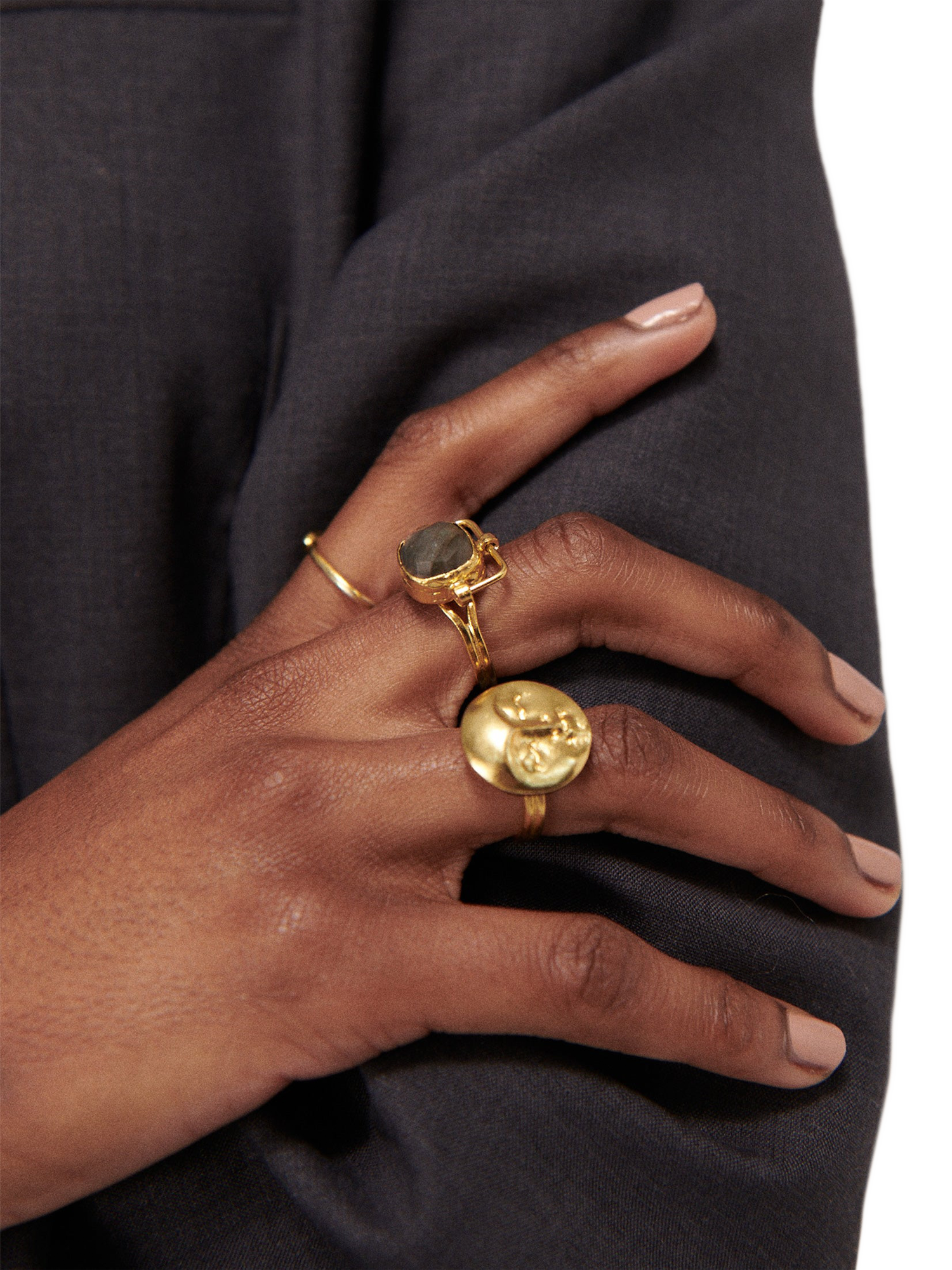 Ottoman HandsMoon Face Ring, Gold