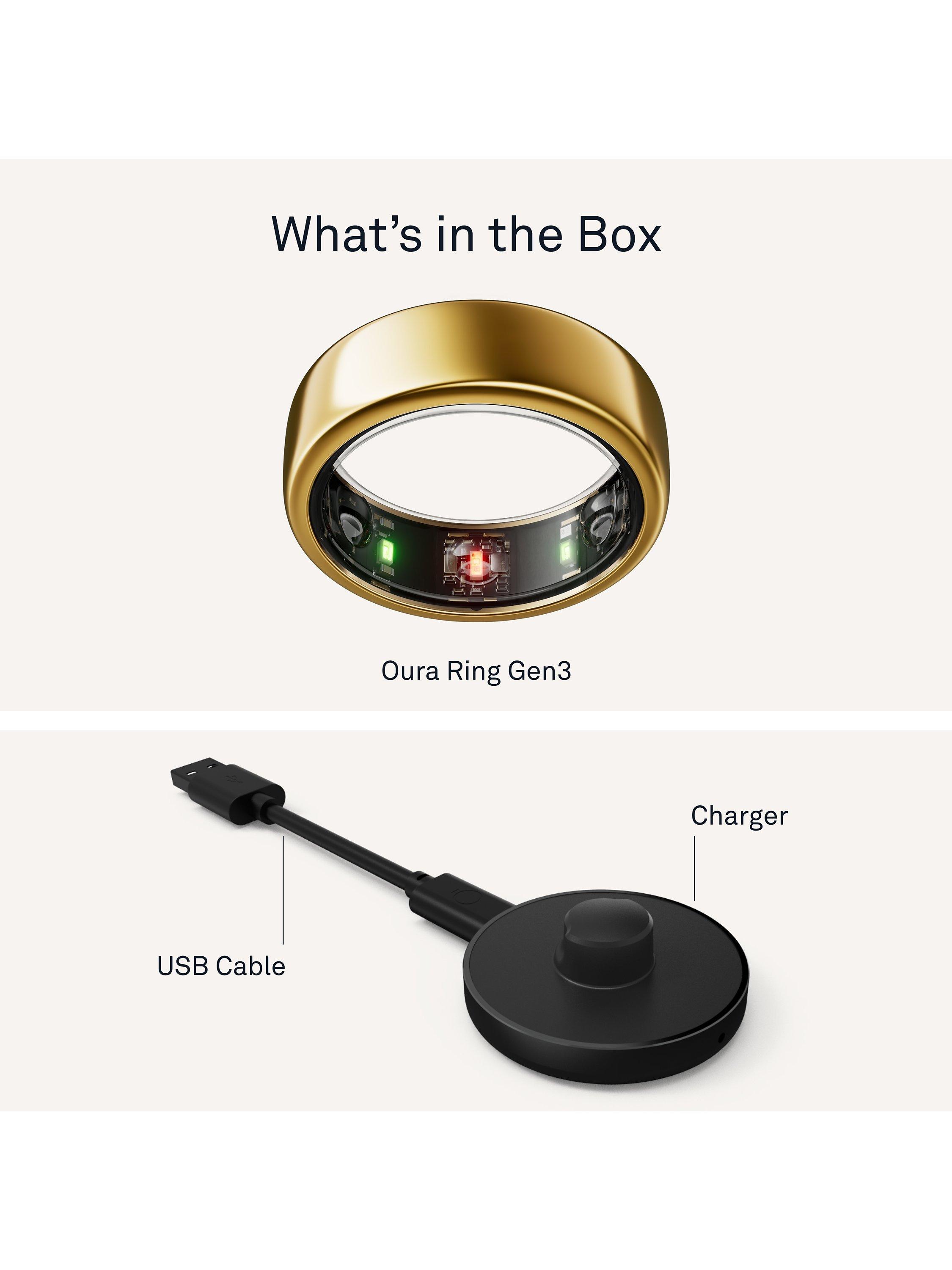 - Oura Ring, Charger, USB Cable, Information Booklet, Quick Guide