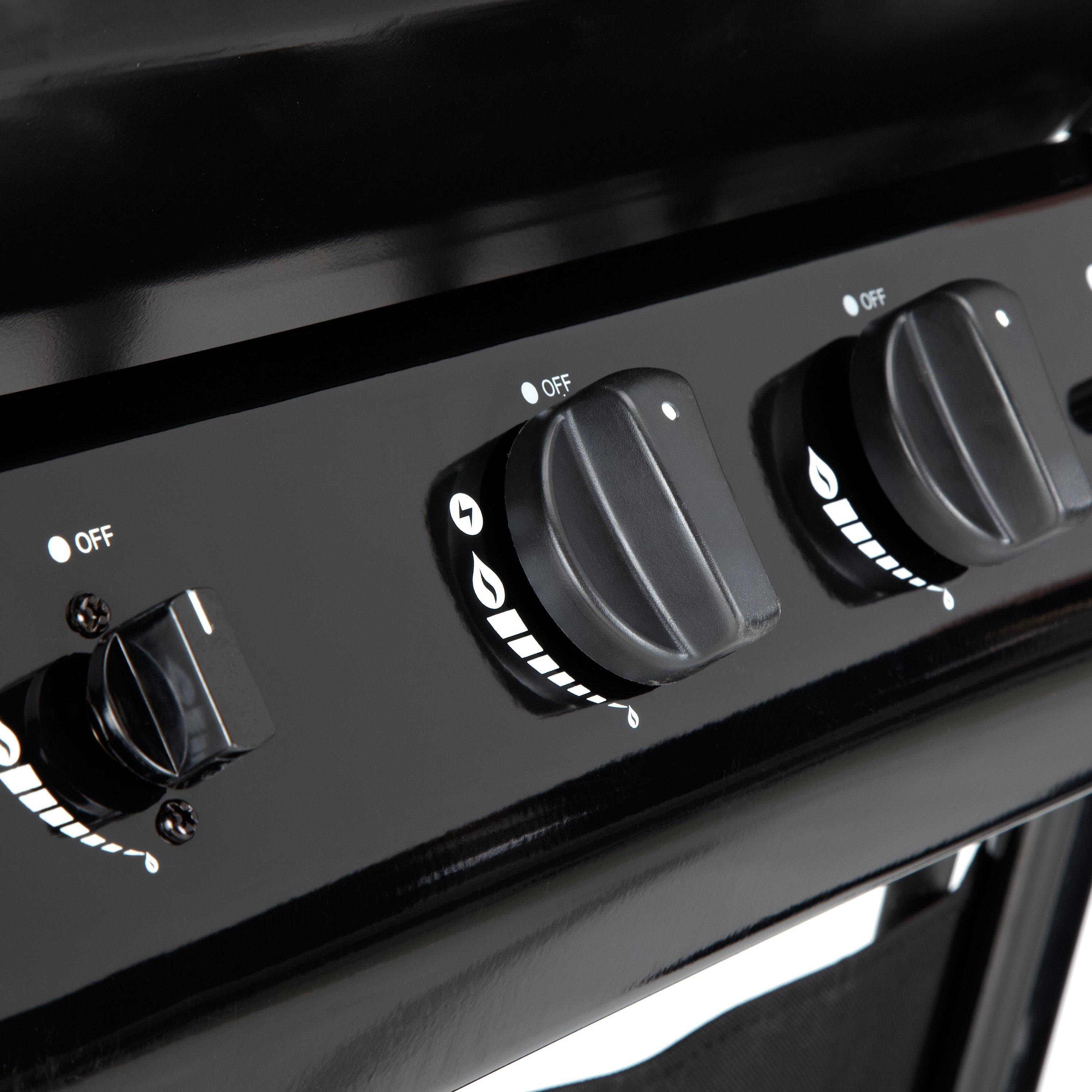 The generously sized Omega cooking space has a one-piece painted roasting hood and grill for thorough cooking. Flame tamers reduce flare-ups and cooking options are increased with the addition of a side burner, which is ideal for heating up beans, frying onions or making sauces. A propane gas regulator and hose are included. The connector is a 27mm propane snap-fit regulator.
