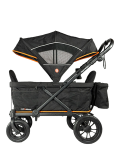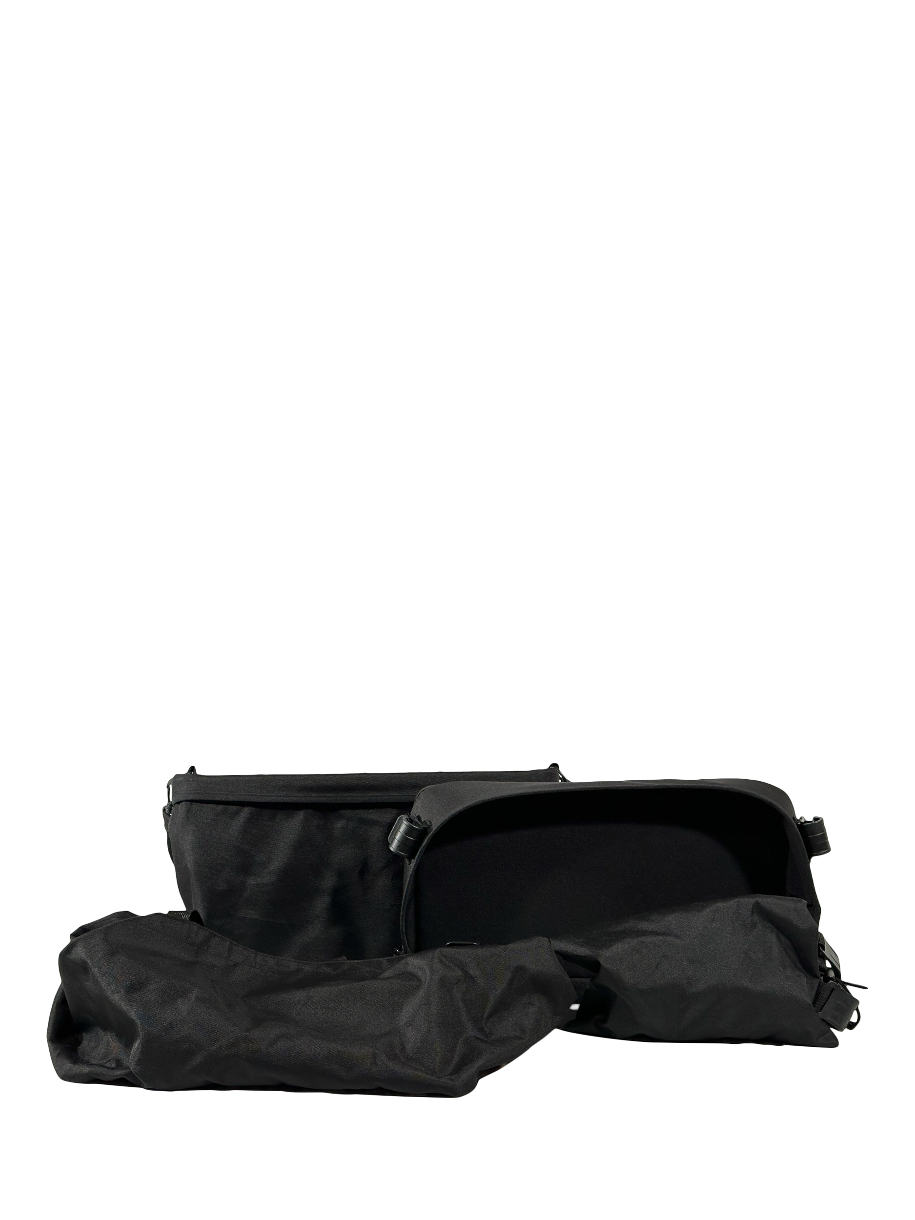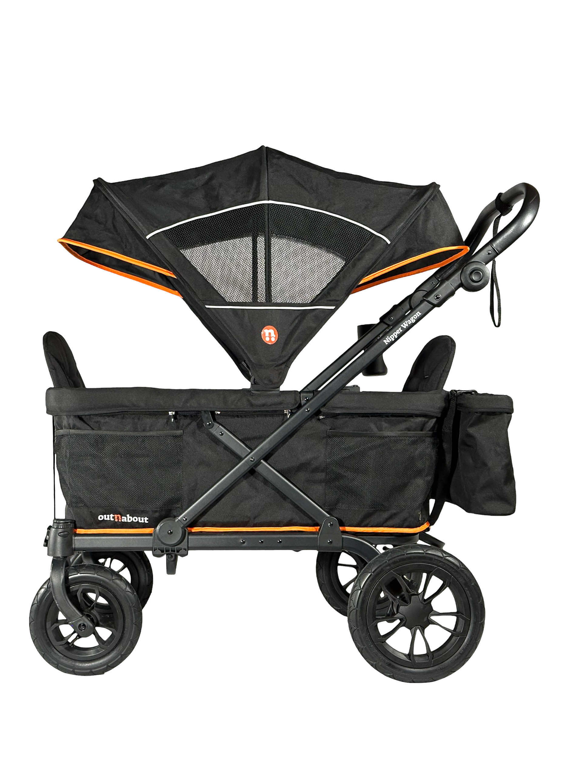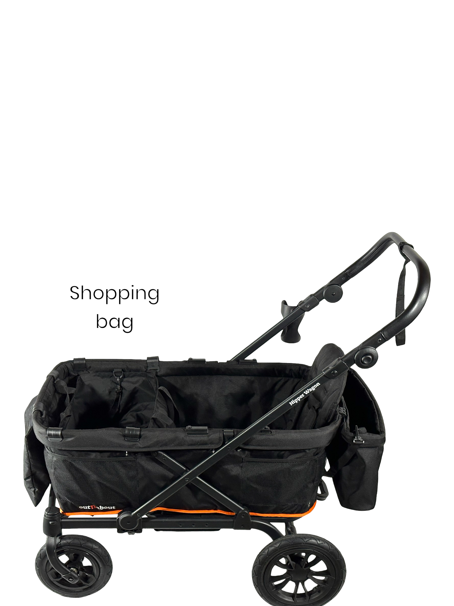 Explorer pack designed for the Nipper Wagon which includes four essentials for frequent family outings: a tote bag, a muddy boot bag, a tray table and a shopping bag.