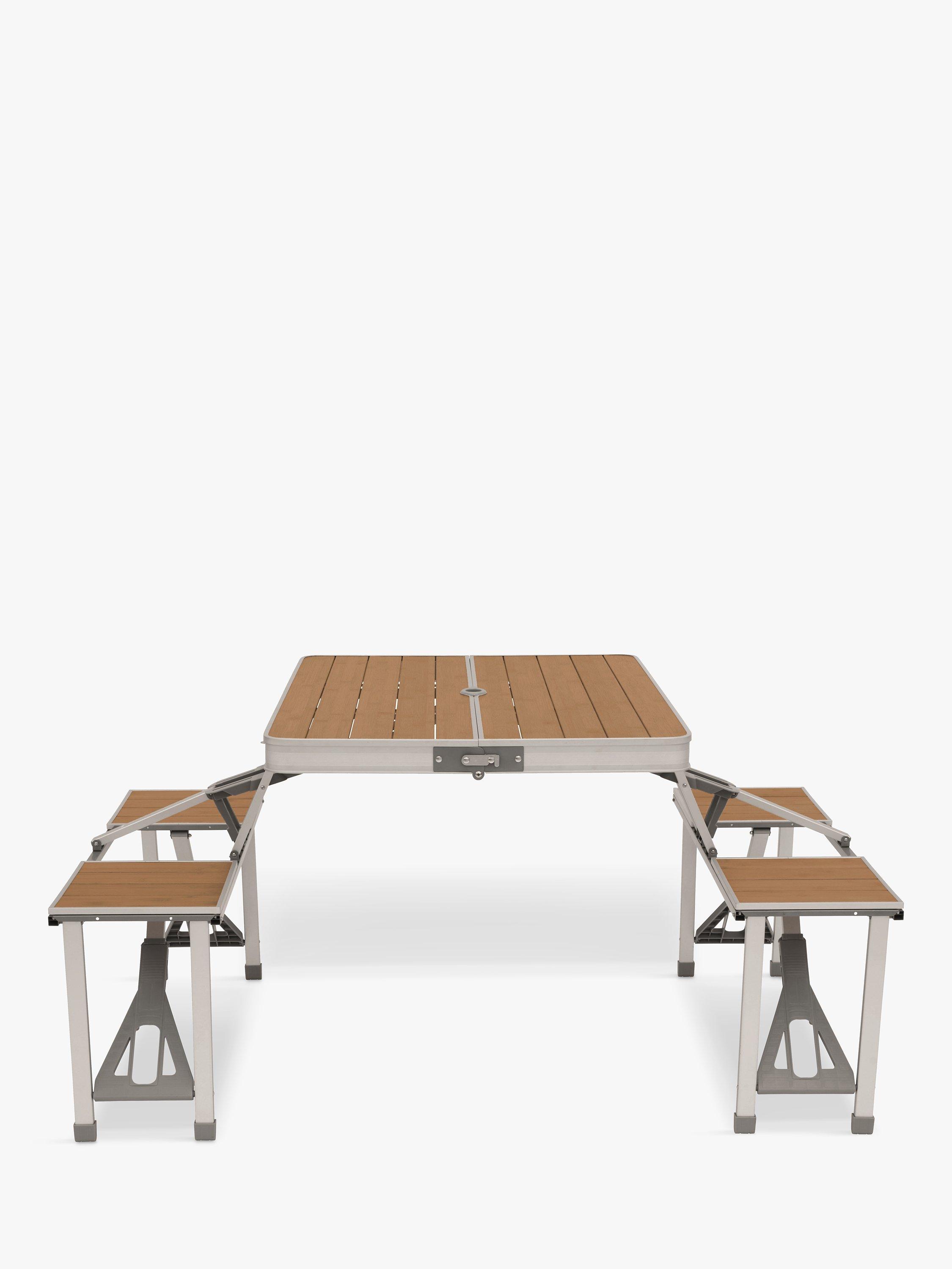 Travel lighter by combining your table and seating in one. Ready to use from the moment you open it up with no assembly required, Dawson is compact, lightweight and smart. Its clever design gives you a spacious table with four stools around the outside and plenty of room to dine without knocking elbows. When not in use, it quickly packs together into a suitcase for easy carrying and storage.