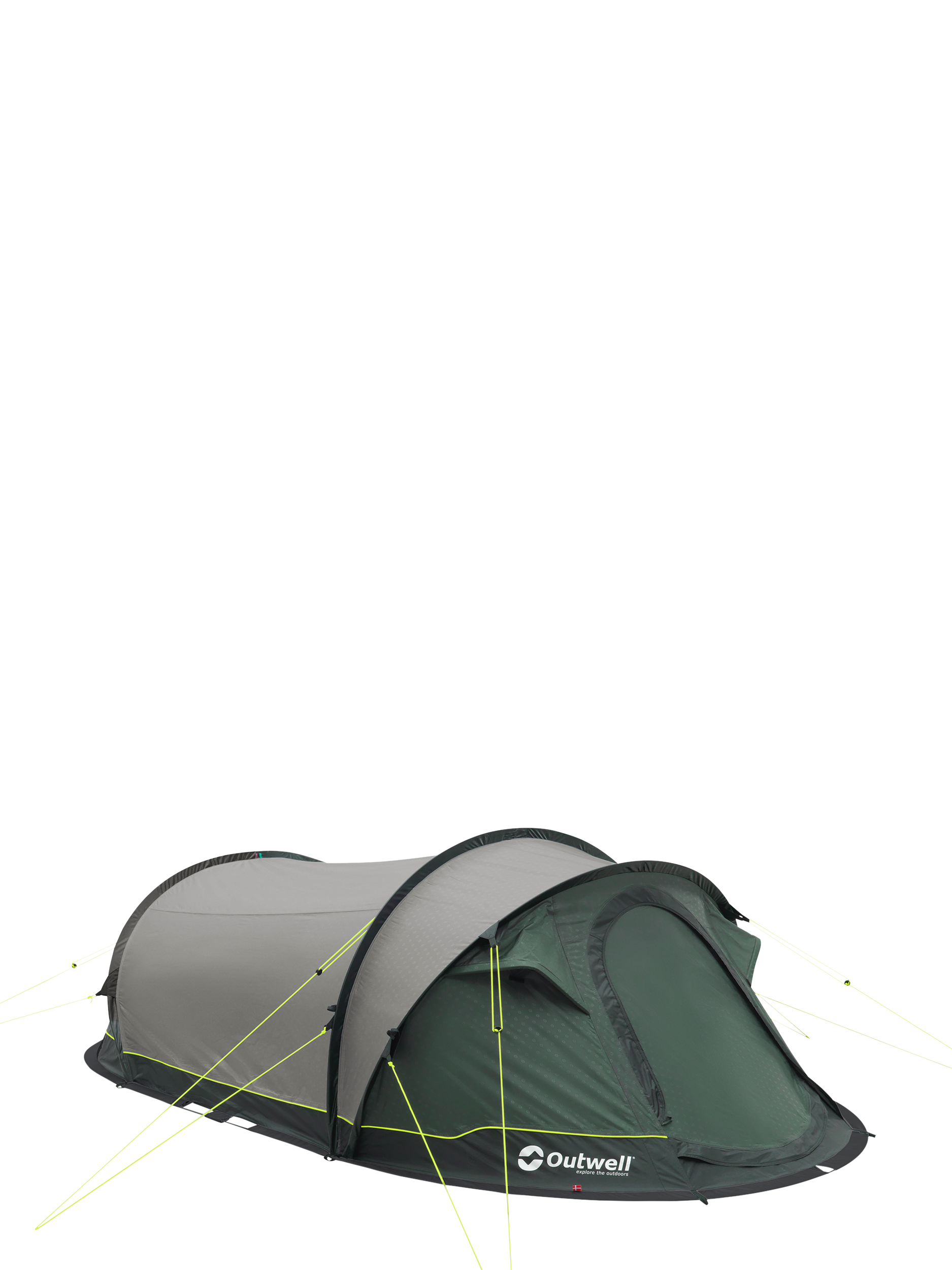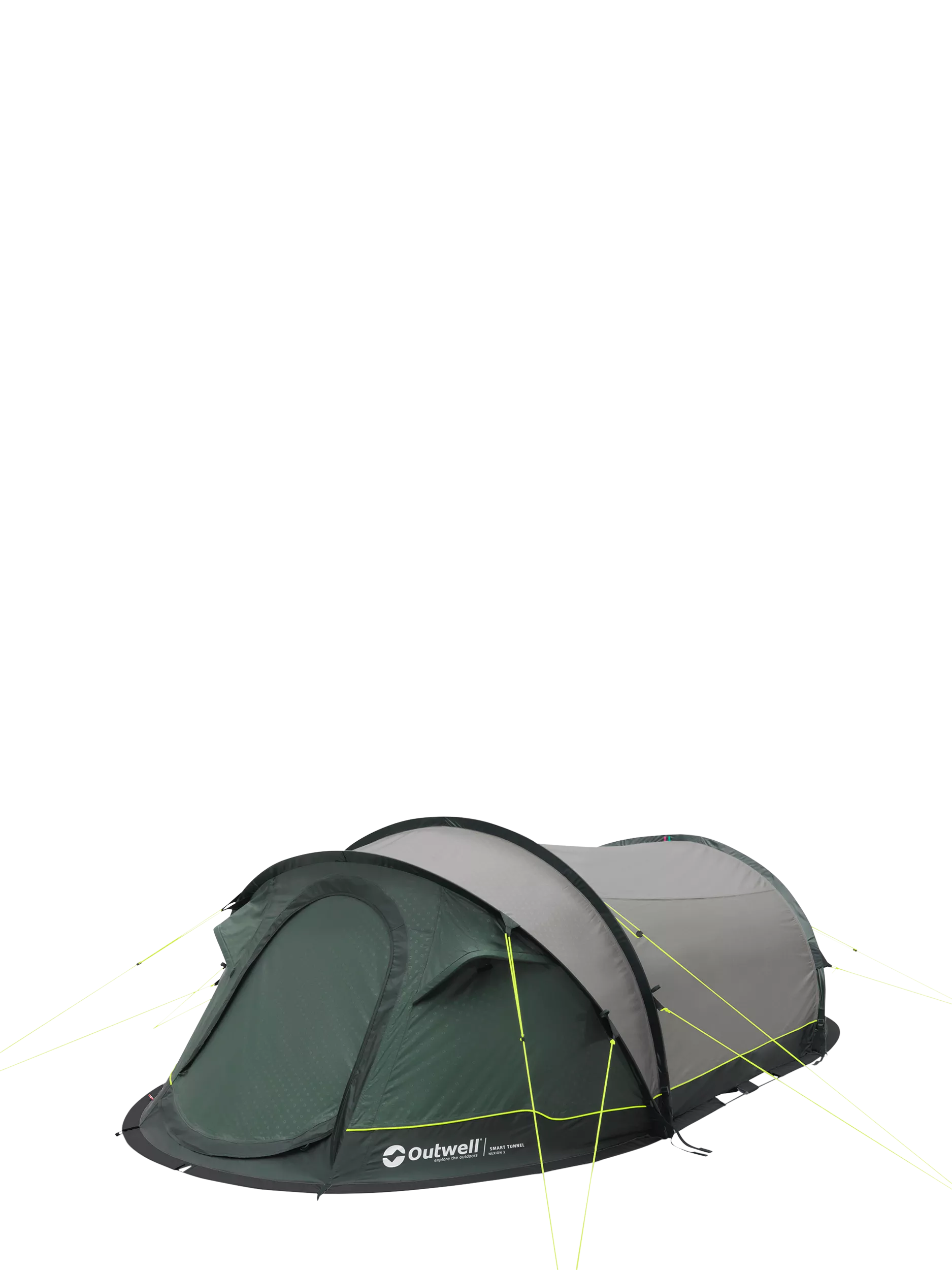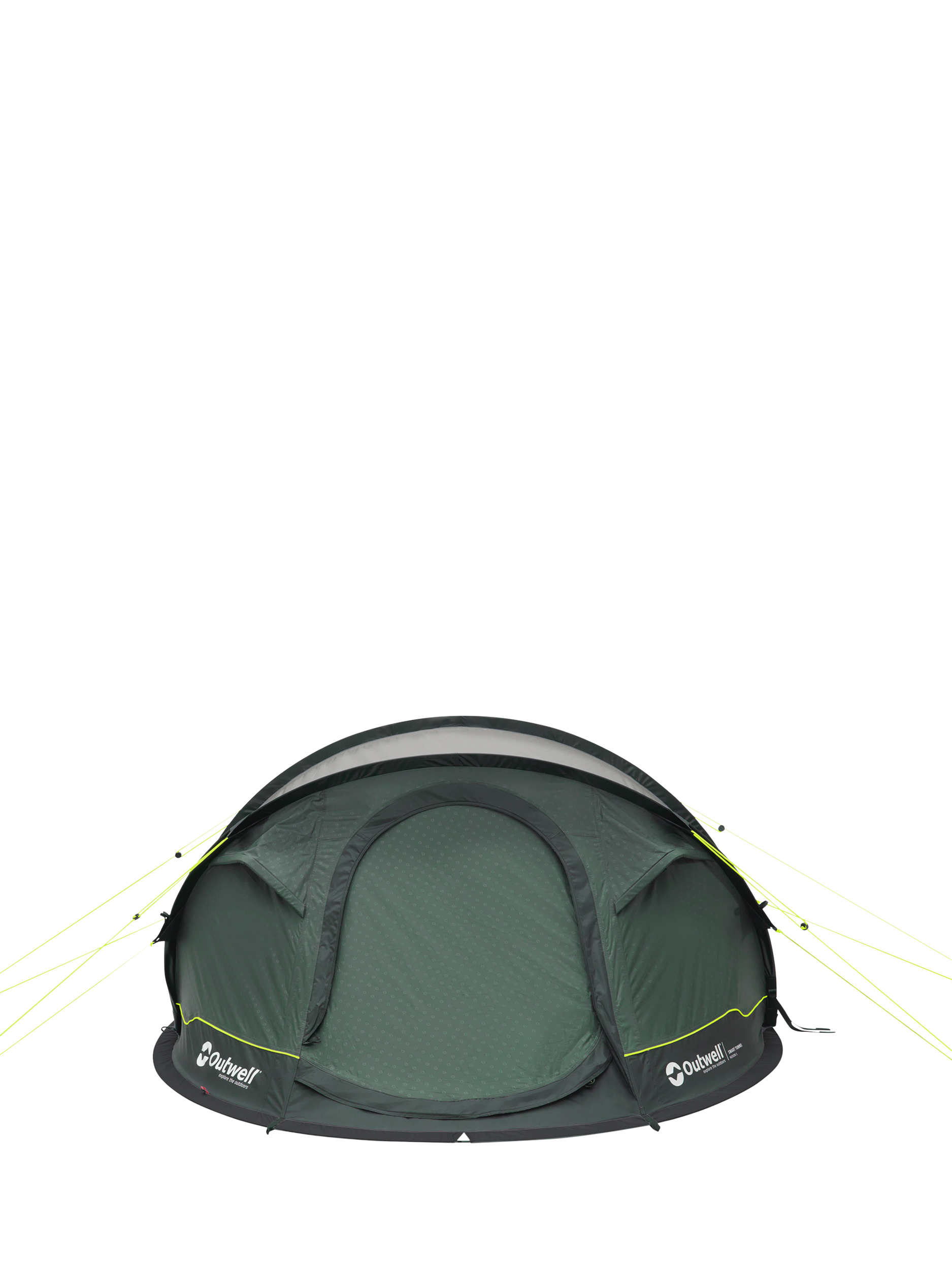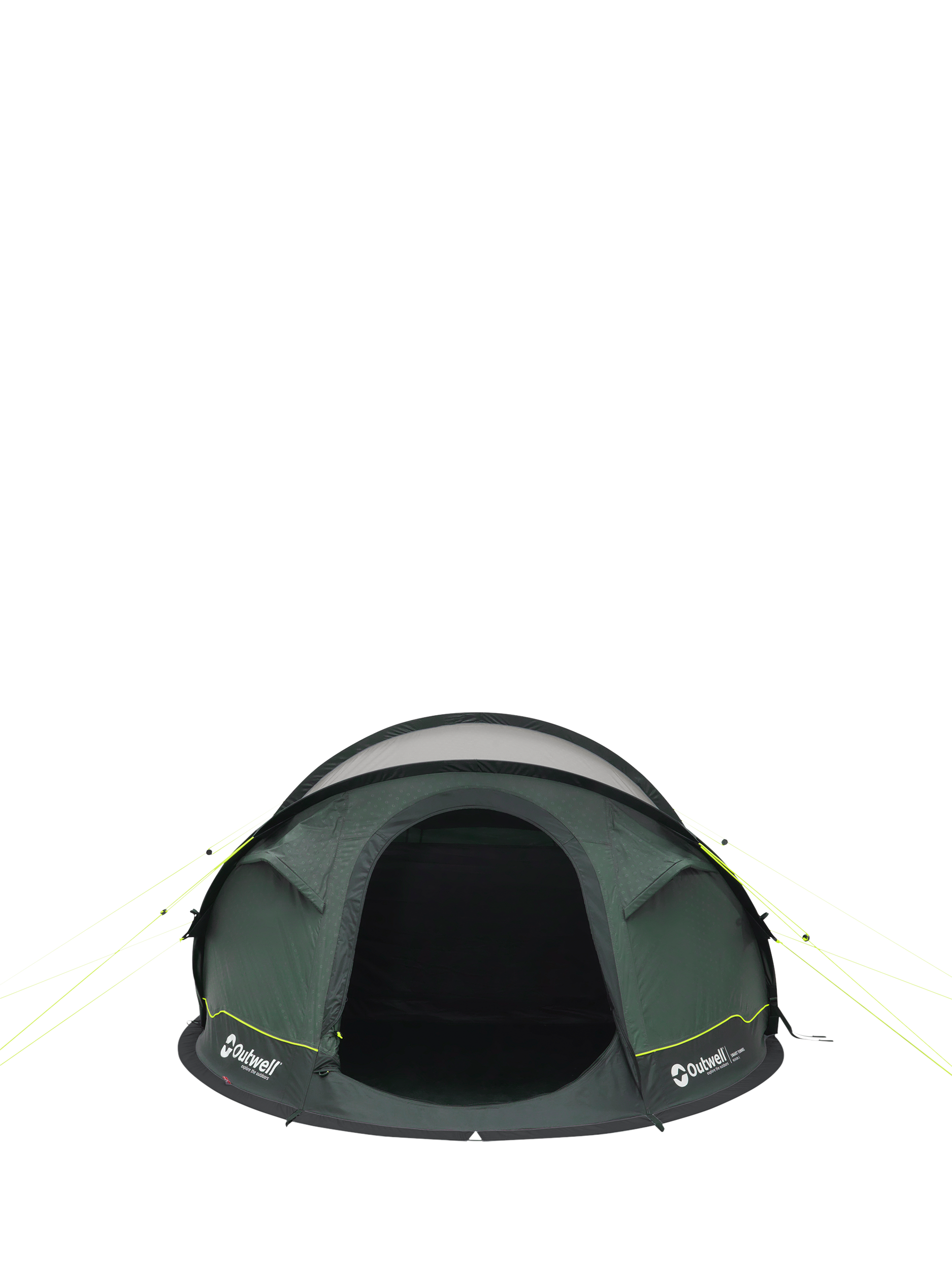 Pop up the Outwell Nexion 3 and your tent is pitched and ready in no time. A dedicated storage area keeps your gear dry and neatly organised, and you can open the door to take in the view. The dark inner reduces light to enhance sleeping comfort, while the fully sealed groundsheet keeps bugs at bay. Rear ventilation enhances airflow, maintaining a comfortable climate inside the tent. A practical and functional choice for your outdoor escapes.
