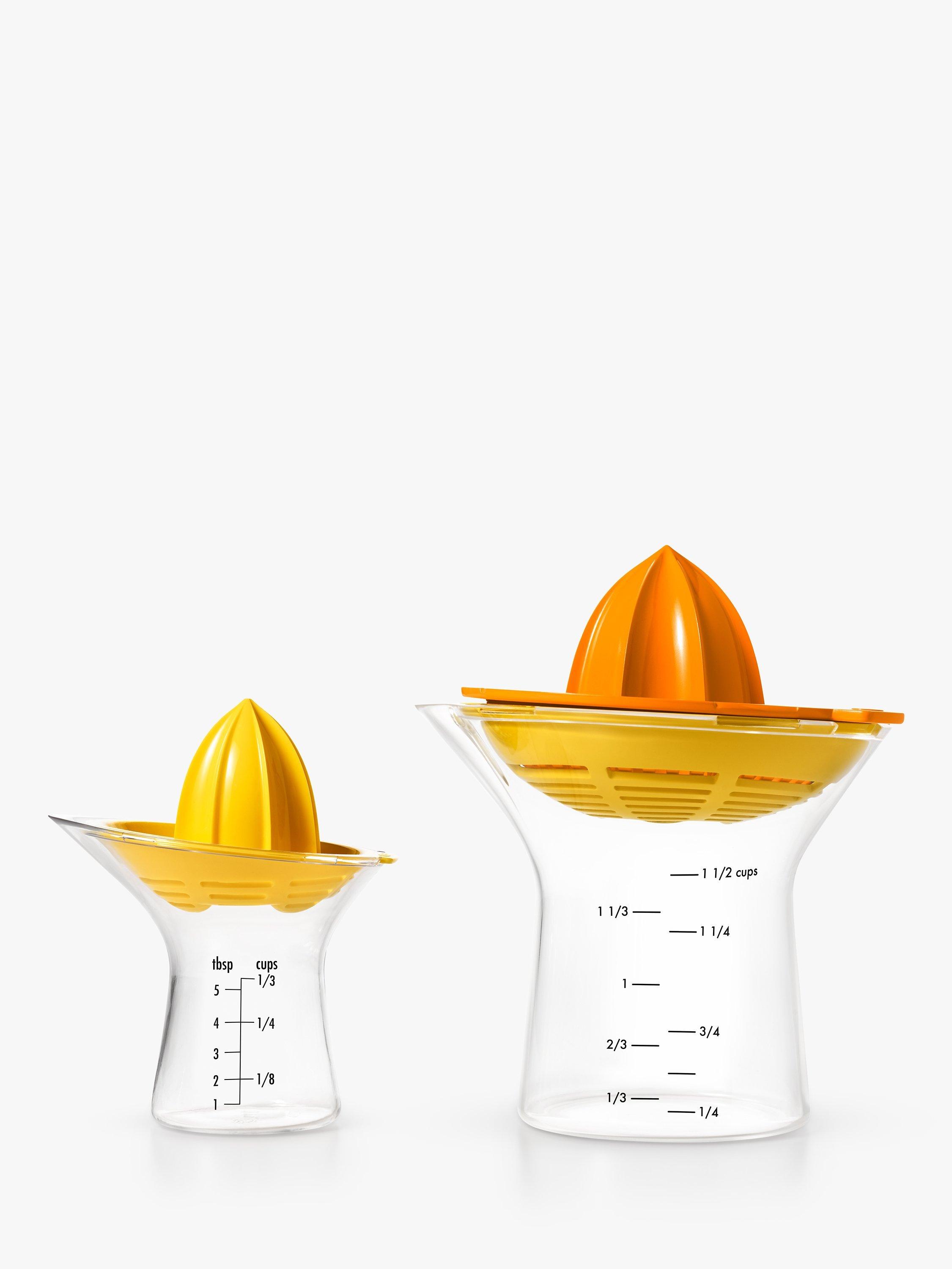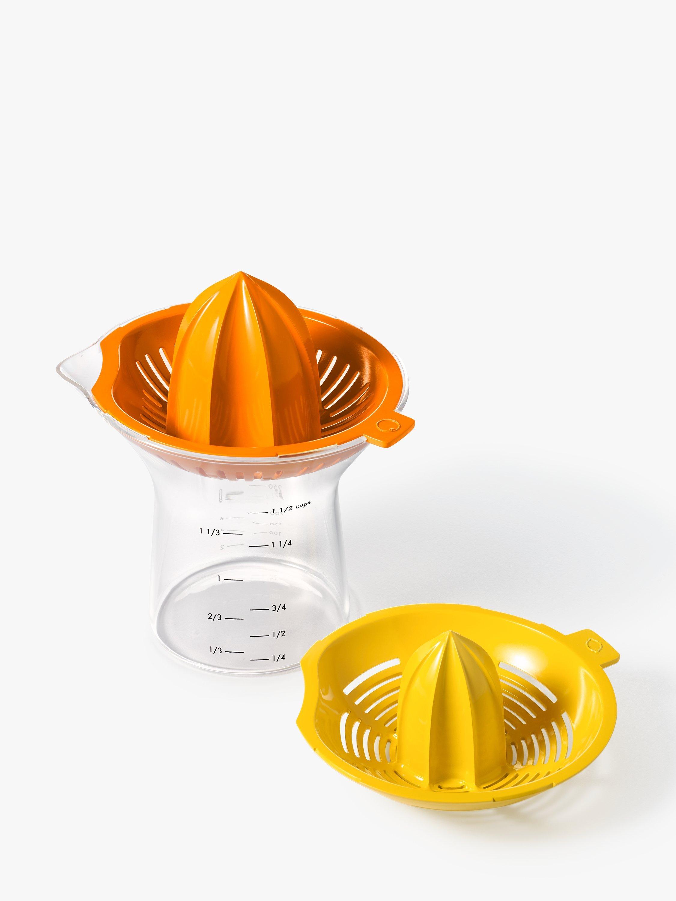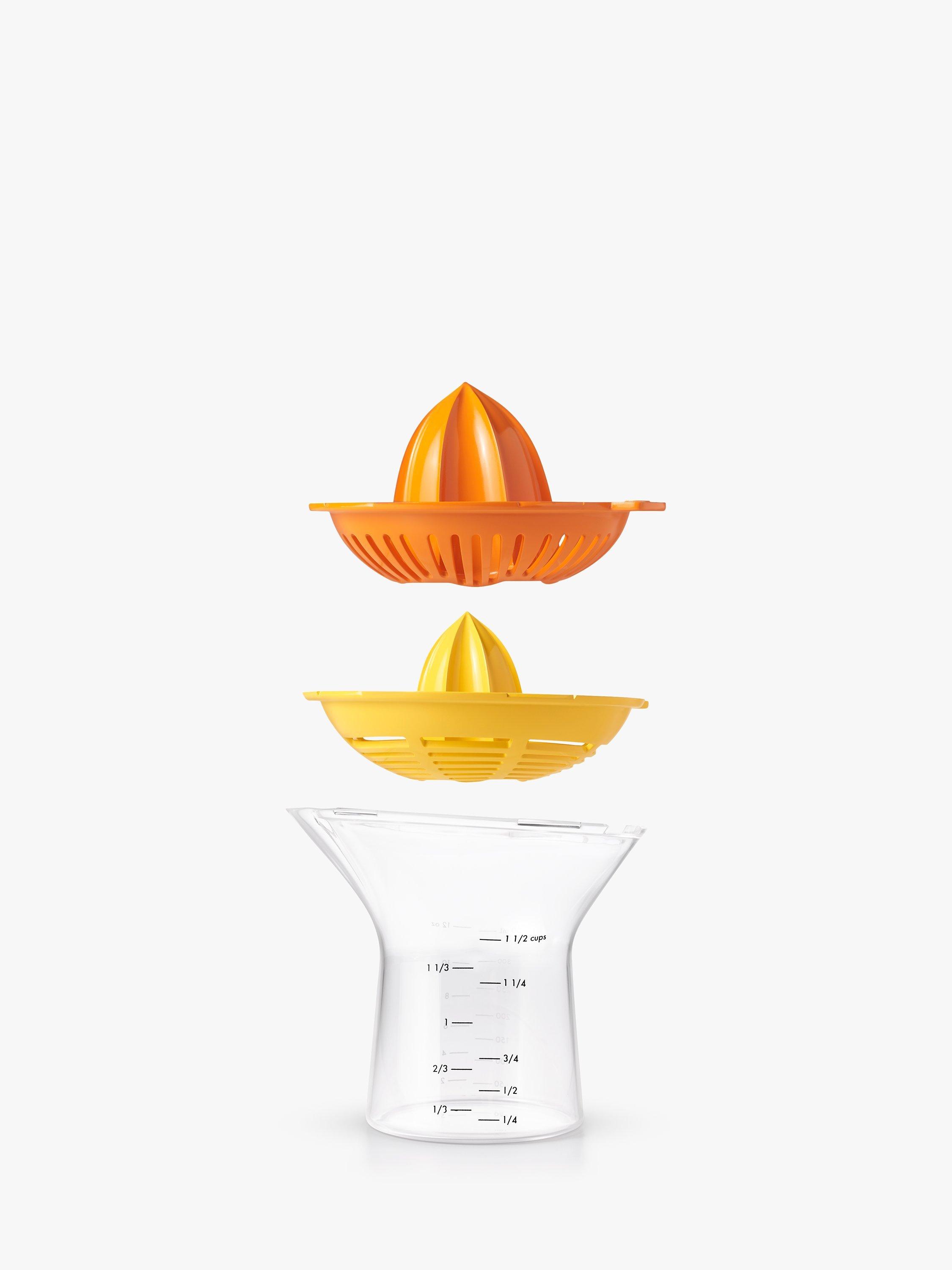 Whether you’re making fresh-squeezed juice, your favourite salad dressing or dessert, the 2-in-1 Citrus Juicer is perfect for the job. Two different reamers have built-in strainers, so you can easily switch between juicing small citrus like lemons and limes or large citrus like oranges and grapefruits. The body is contoured for a comfortable grip and the easy-to-read measurement markings go up to 1.5 cups/350 ml. The pour spout is drip-free, and the reamers are removable for easy cleaning. Dishwasher safe and BPA-free.