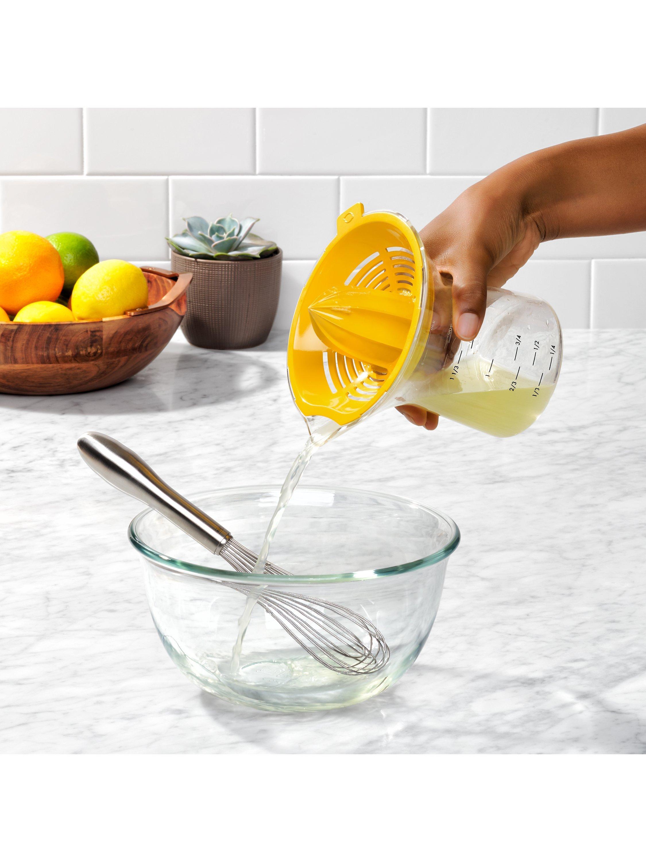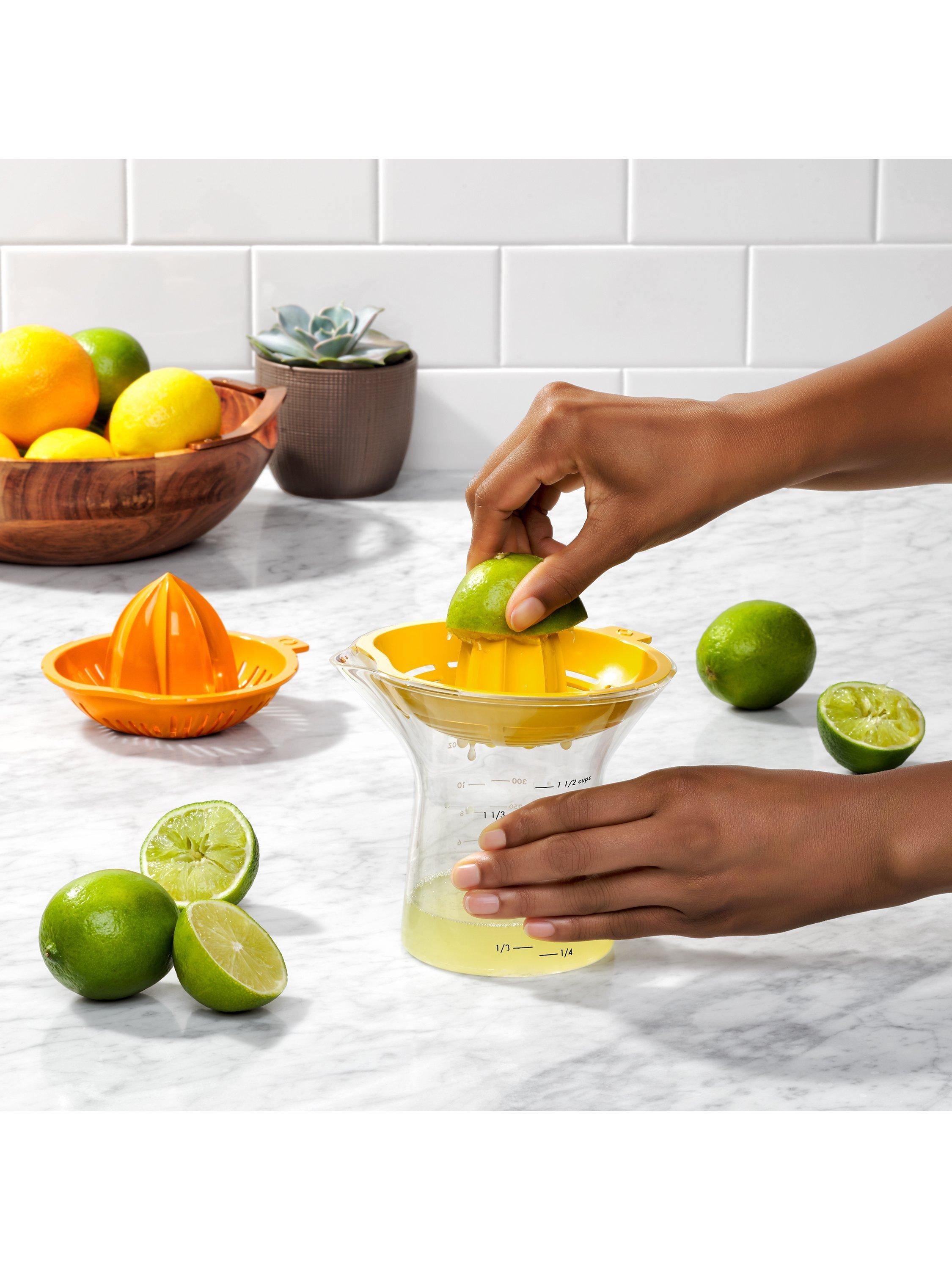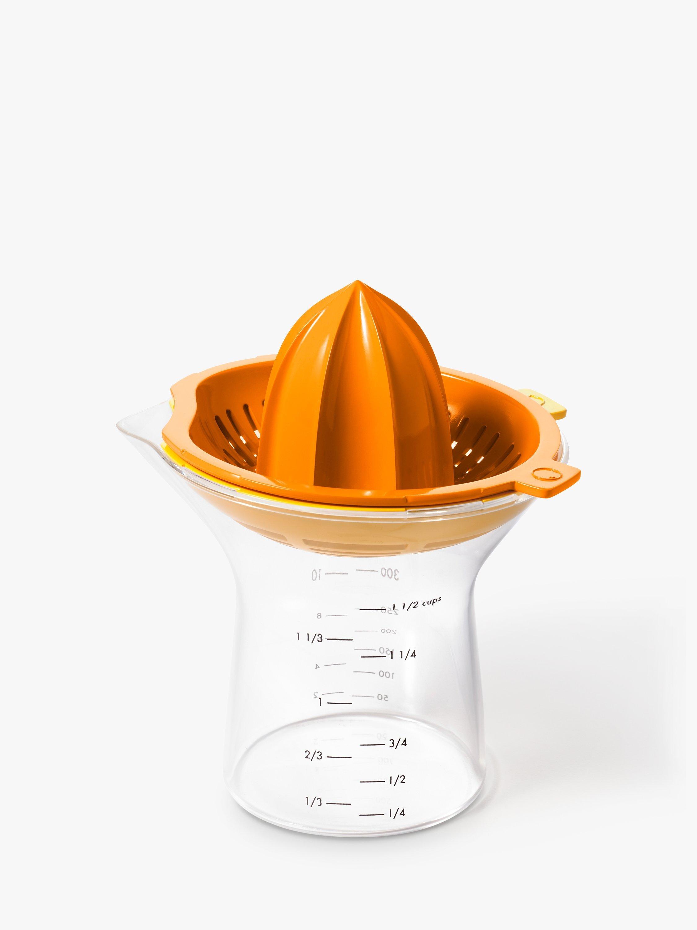 Whether you’re making fresh-squeezed juice, your favourite salad dressing or dessert, the 2-in-1 Citrus Juicer is perfect for the job. Two different reamers have built-in strainers, so you can easily switch between juicing small citrus like lemons and limes or large citrus like oranges and grapefruits. The body is contoured for a comfortable grip and the easy-to-read measurement markings go up to 1.5 cups/350 ml. The pour spout is drip-free, and the reamers are removable for easy cleaning. Dishwasher safe and BPA-free.