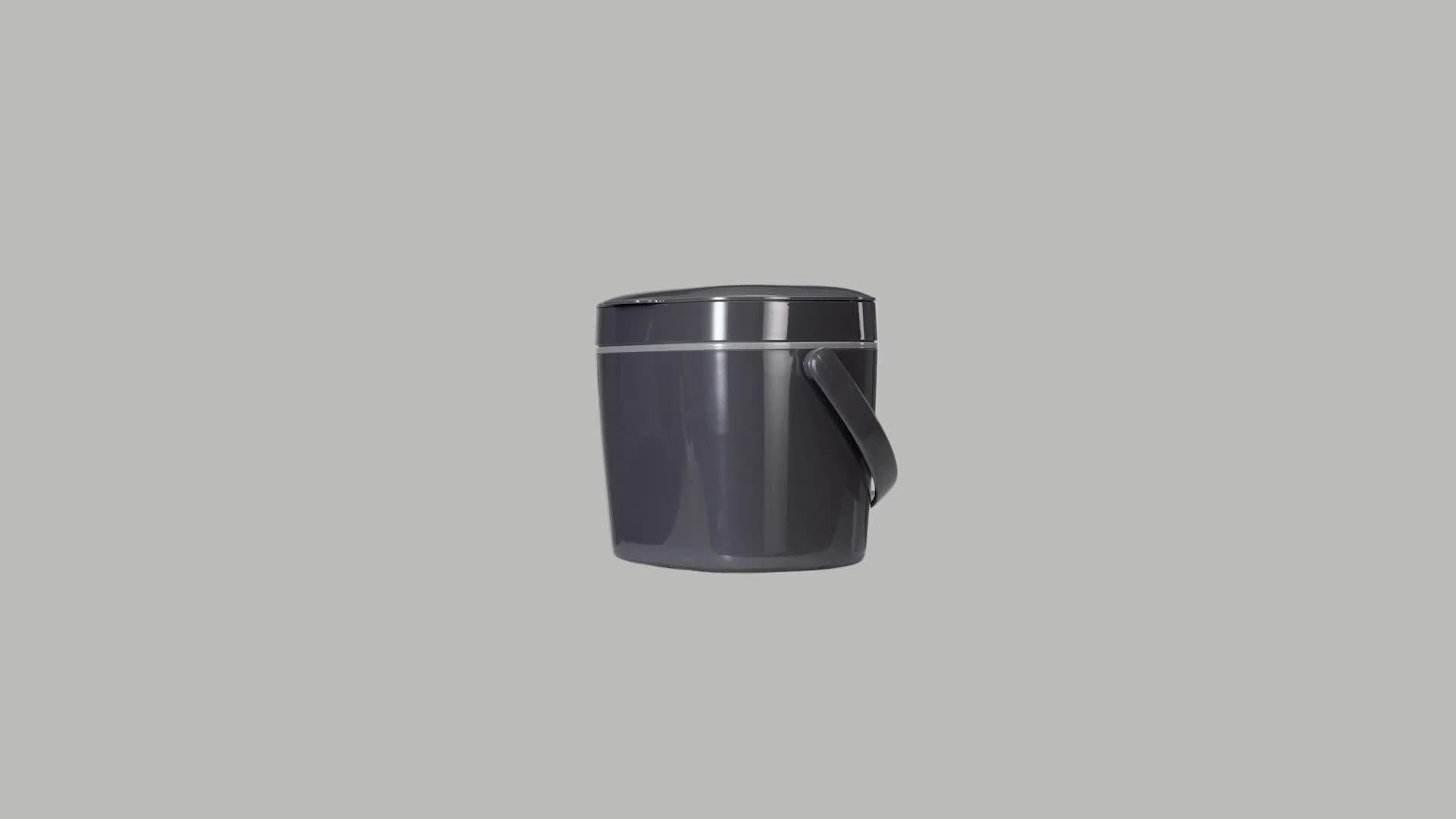 The flip-up lid can be opened and closed with one hand. Smooth interior walls prevent food and liquids from building up and make clean up simple. The sturdy handle makes it easy to carry the filled bin outside while the contoured bottom and removable lid keep emptying simple.