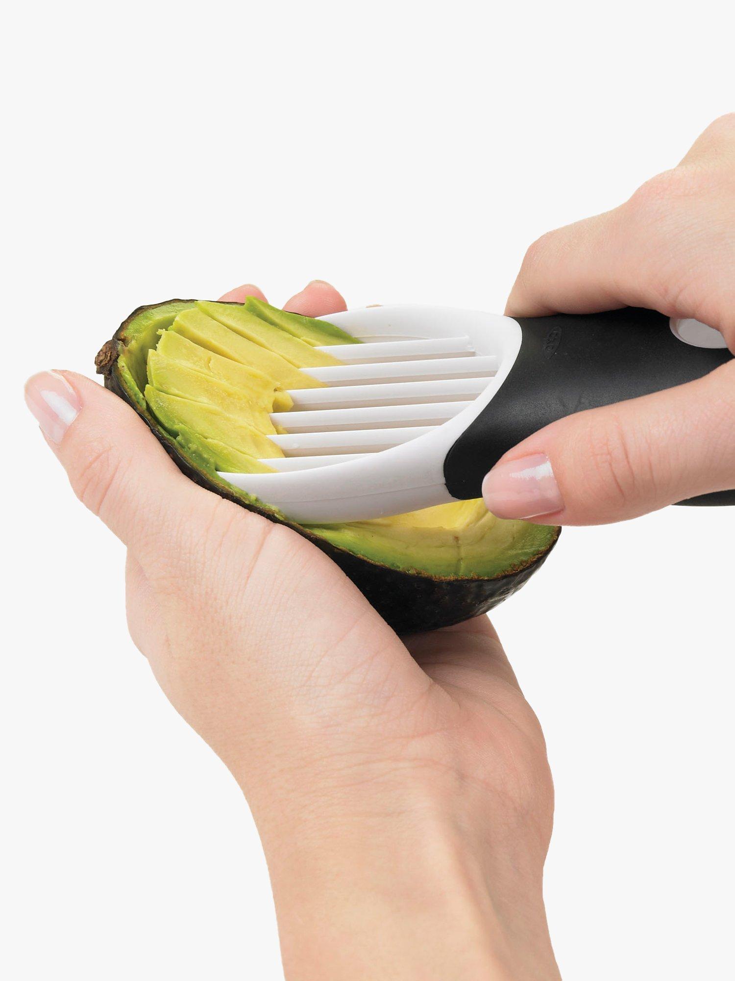 Whether you're making a Cobb salad or a Tuesday-night taco, the OXO 3-in-1 Avocado Slicer is your go-to tool. The serrated blade easily cuts through avocado skin to split the fruit without being sharp to the touch. The patented stainless steel pitter removes the pit with one quick twist. You can then push it out of the tool through the small hole on the back. The fan blade glides through the avocado to yield even slices with no knife required. It's top-rack dishwasher safe.