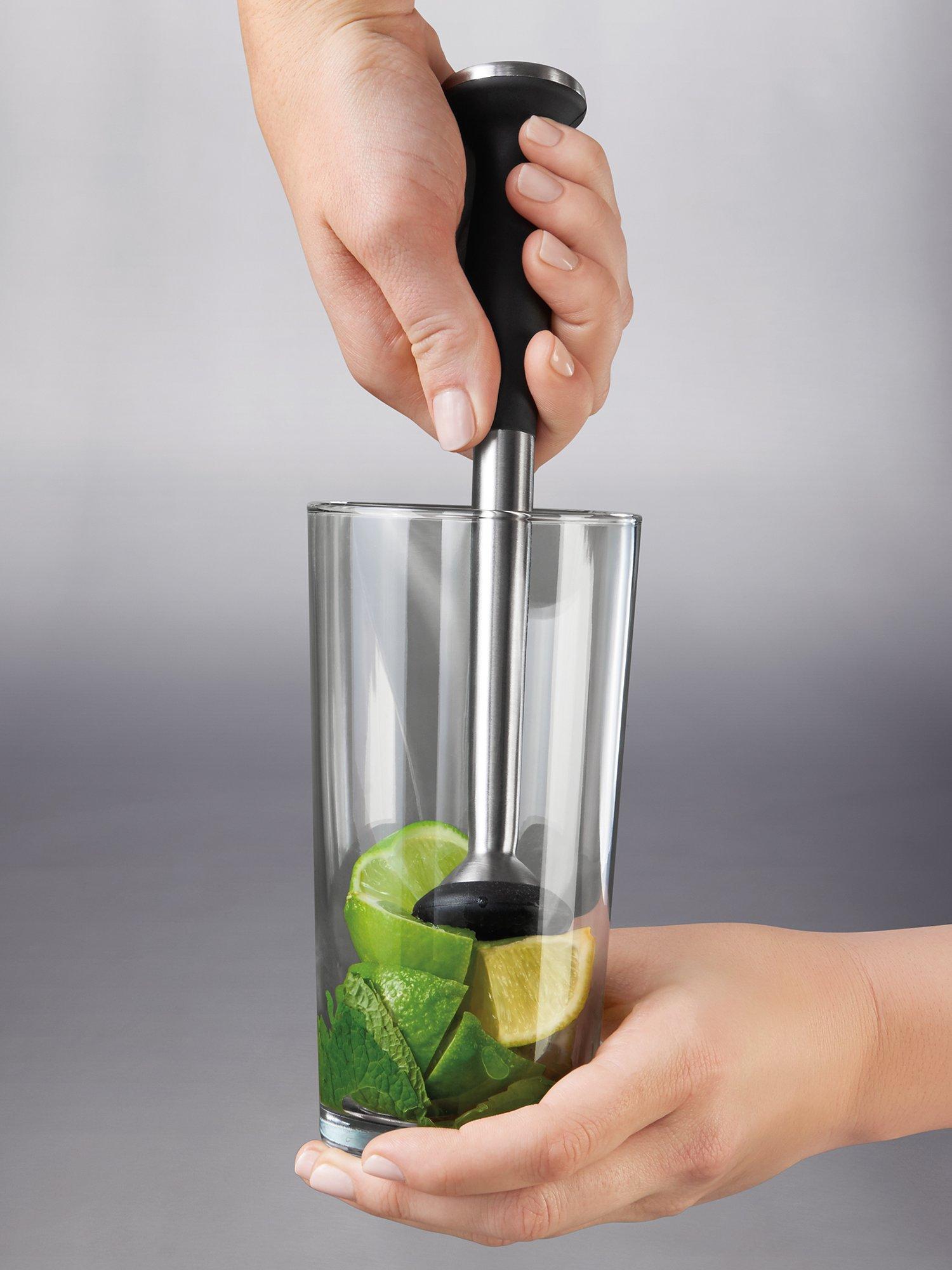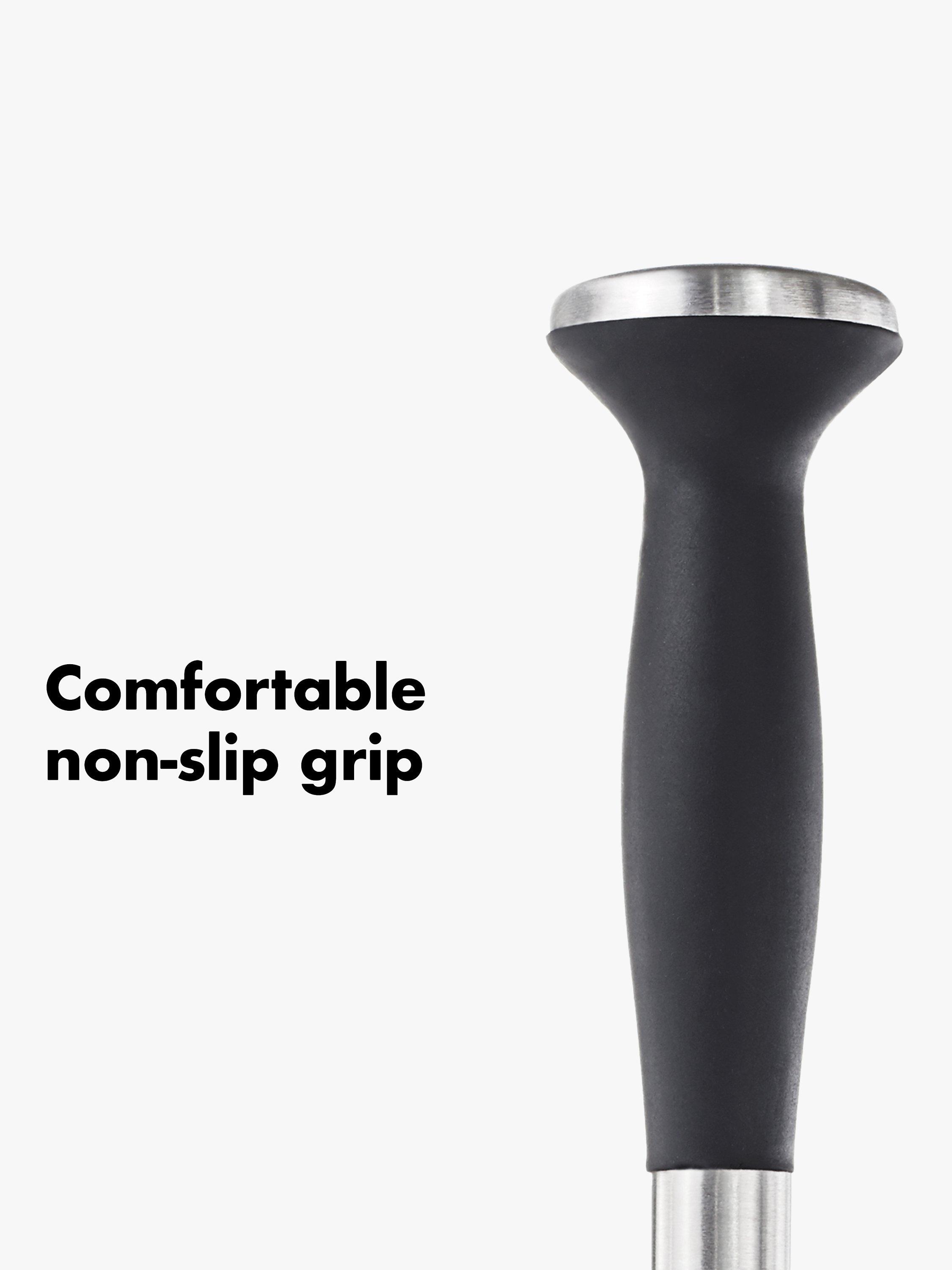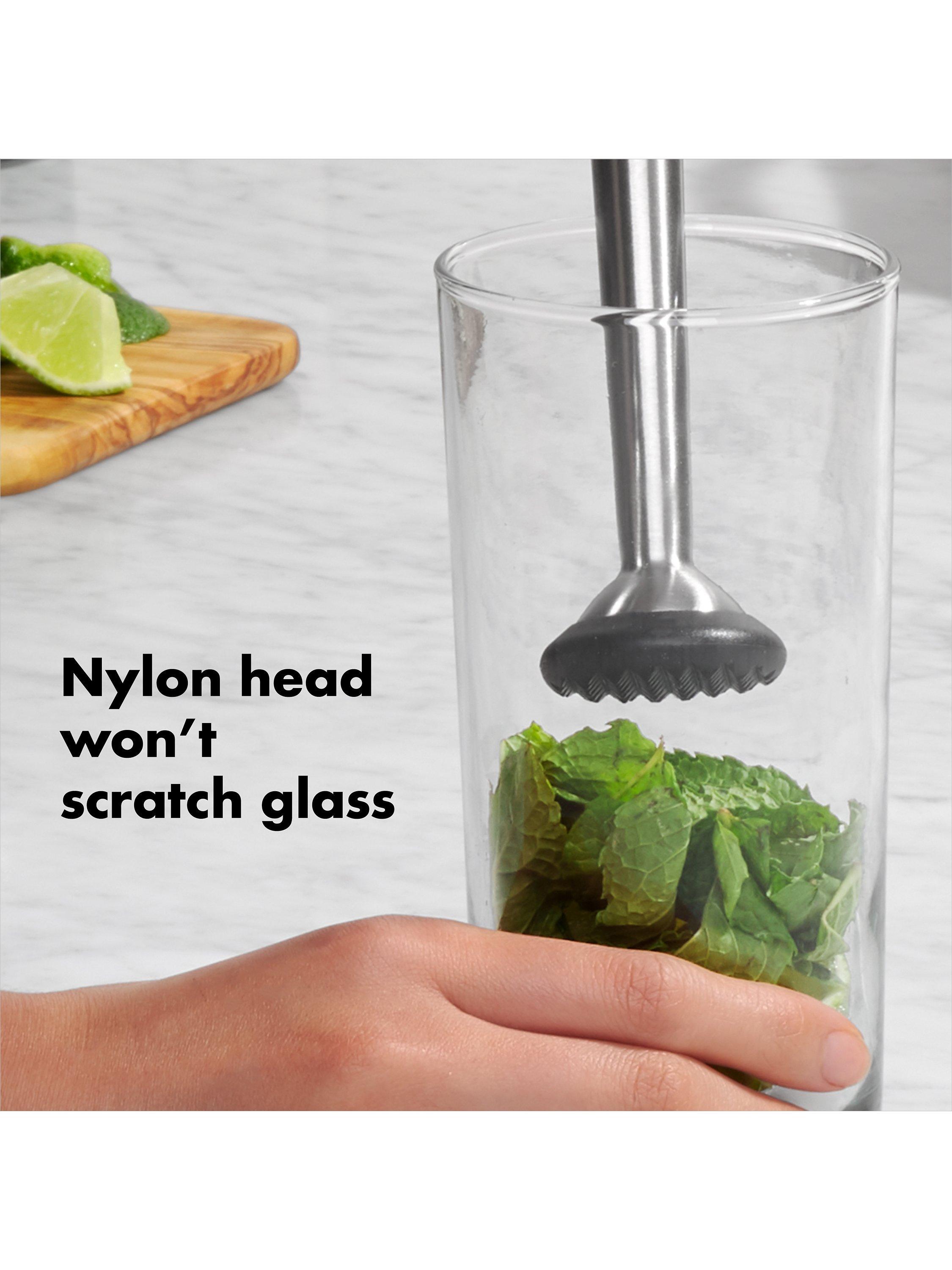 The OXO muddler is perfect for prepping fresh herbs and citrus fruits for mojitos, caipirinhas, mint juleps and more, to really bring out aroma and flavour. Made of durable die-cast zinc, the muddler includes a gentle nylon head and a soft, comfortable non-slip grip.