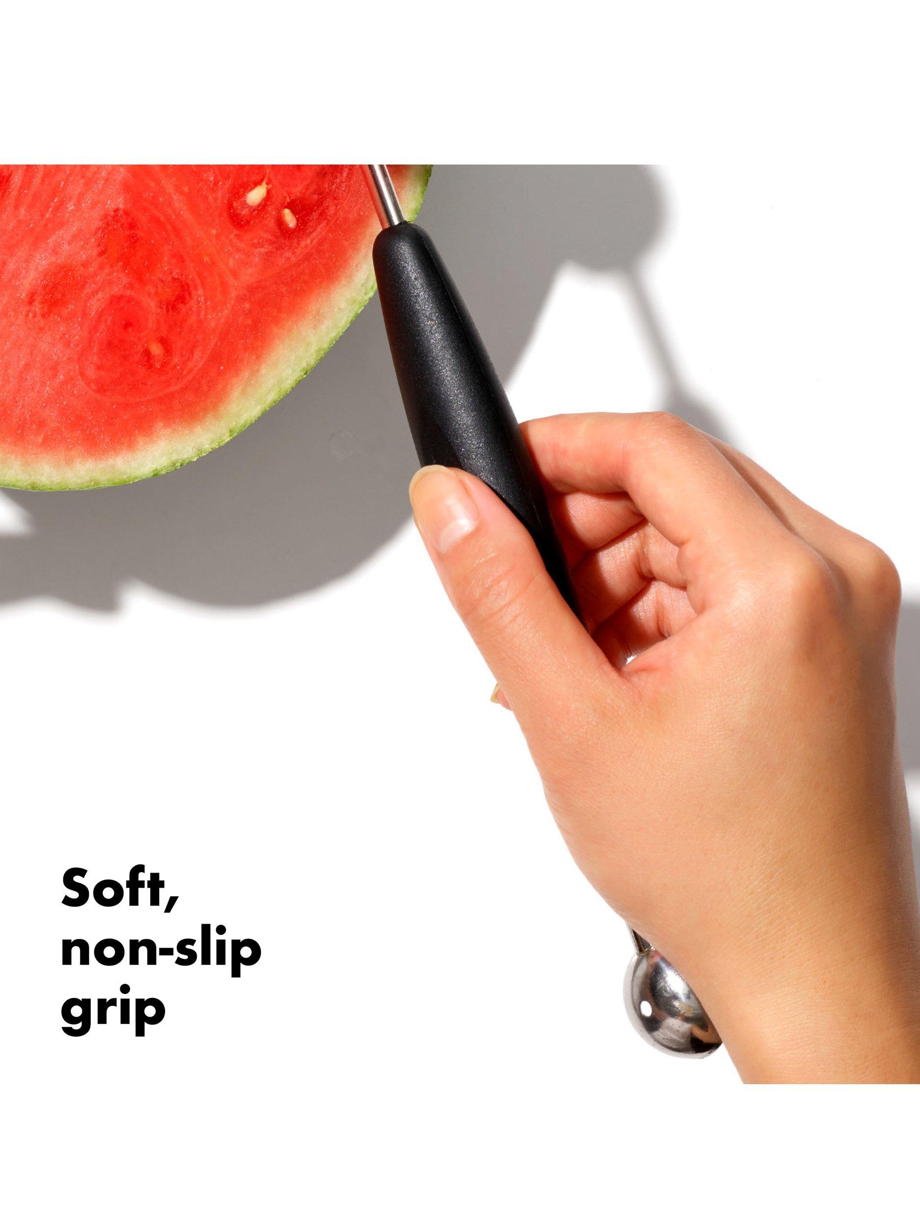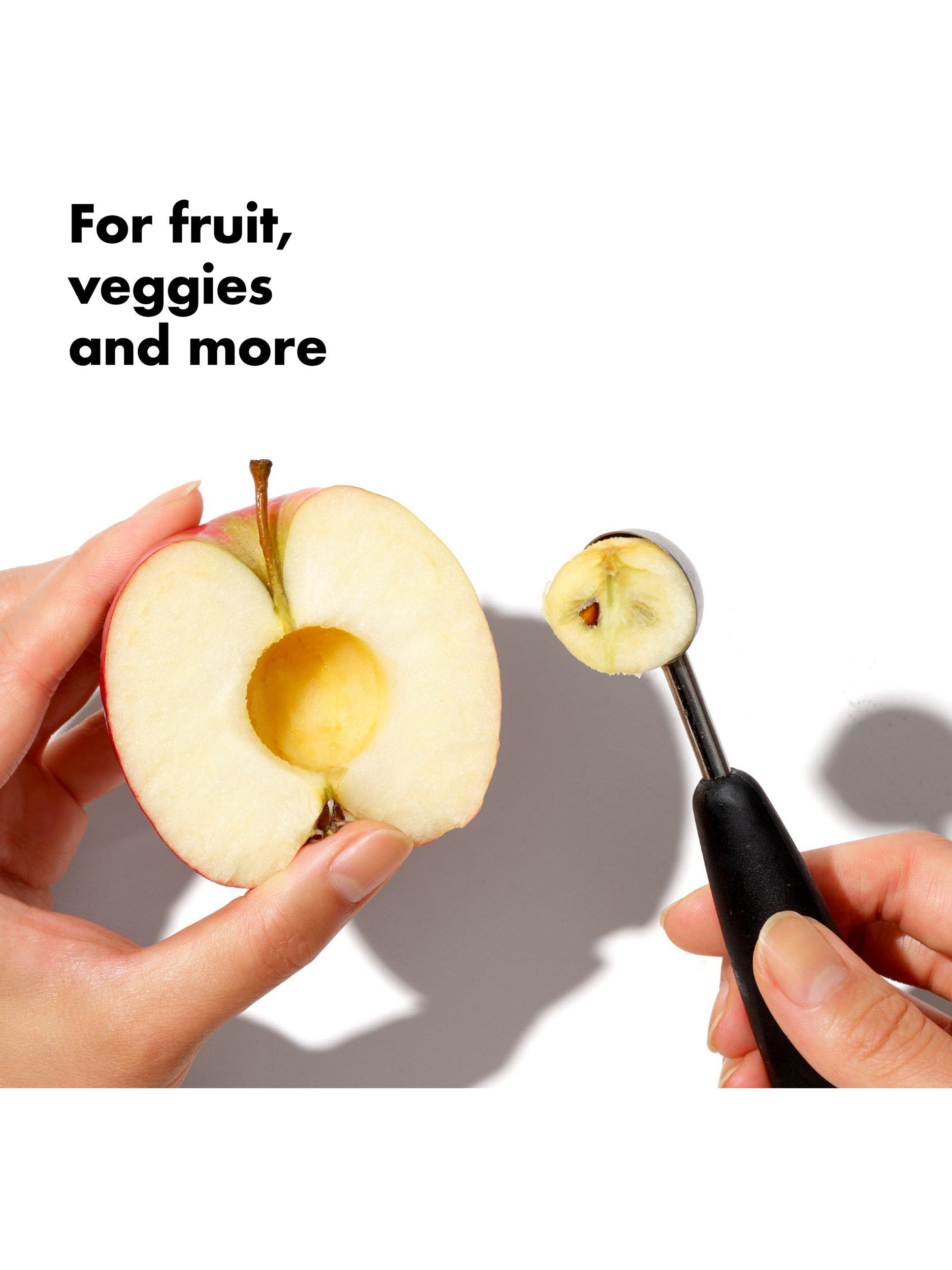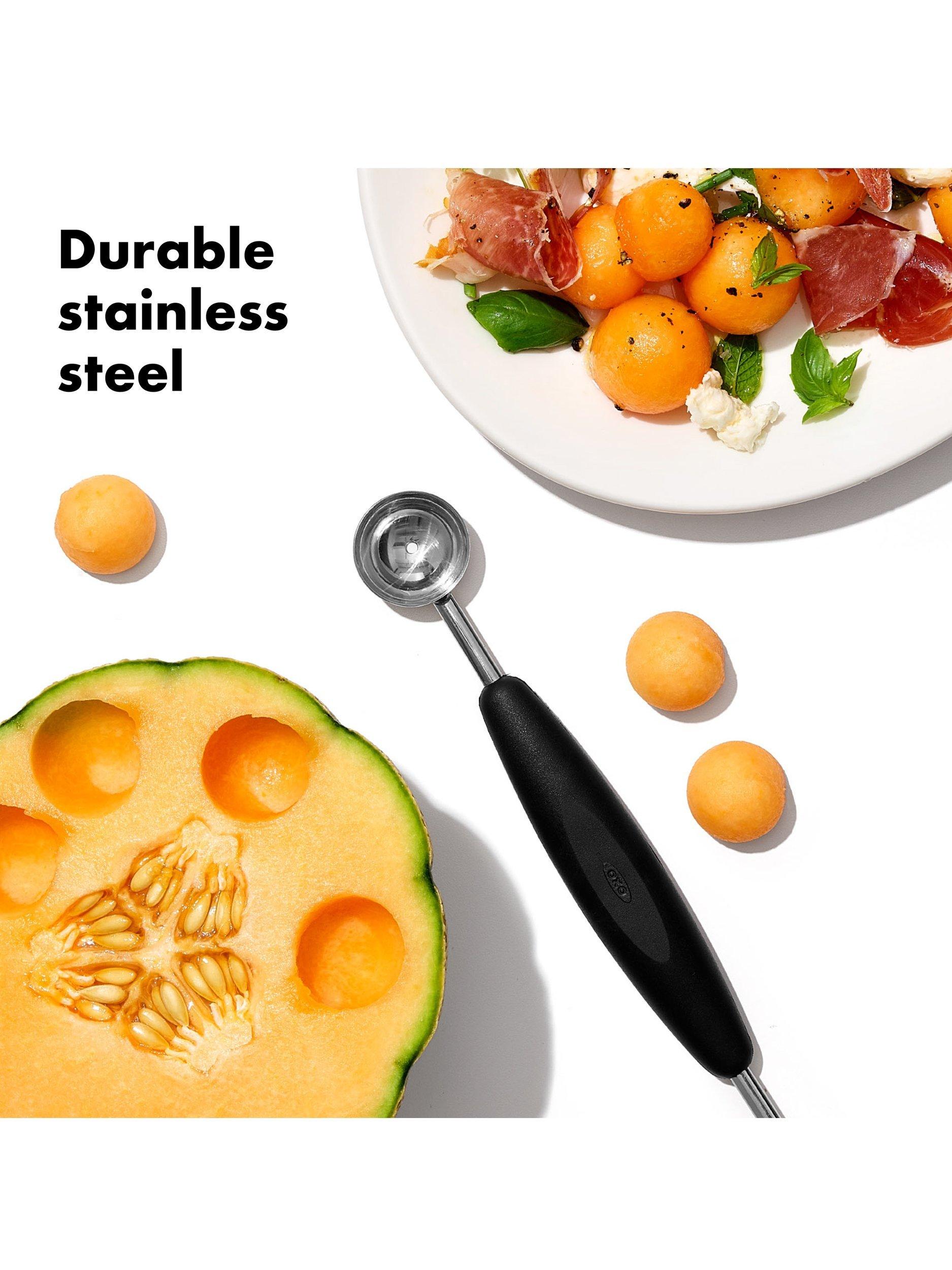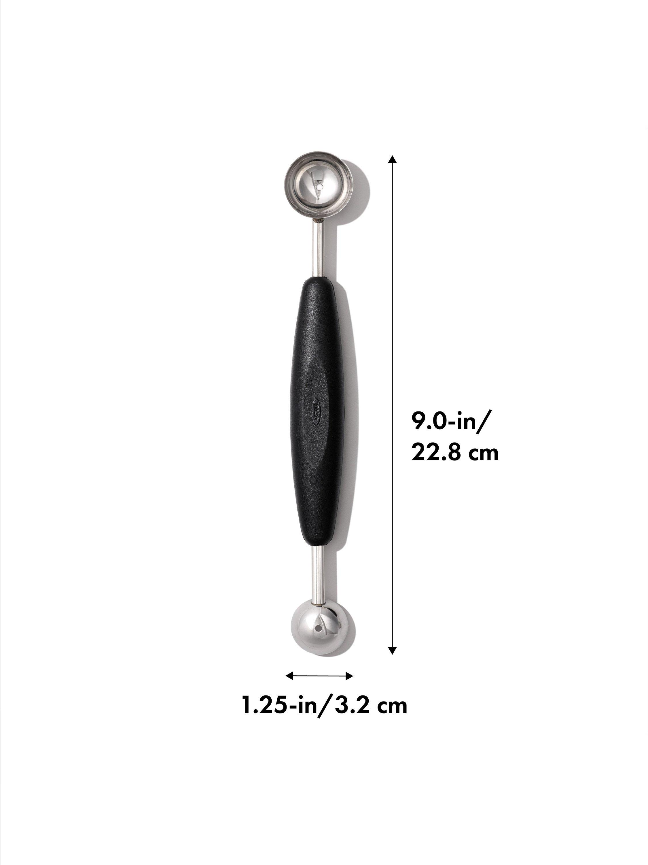 For fancy fruit and seeded veggies, perfect chocolate truffles and more, the OXO Good Grips Double-Sided Melon Baller is your go-to tool. The durable stainless steel baller features two different scooping ends, allowing you to turn out bite-size balls of cantaloupe or quickly core half an apple.
