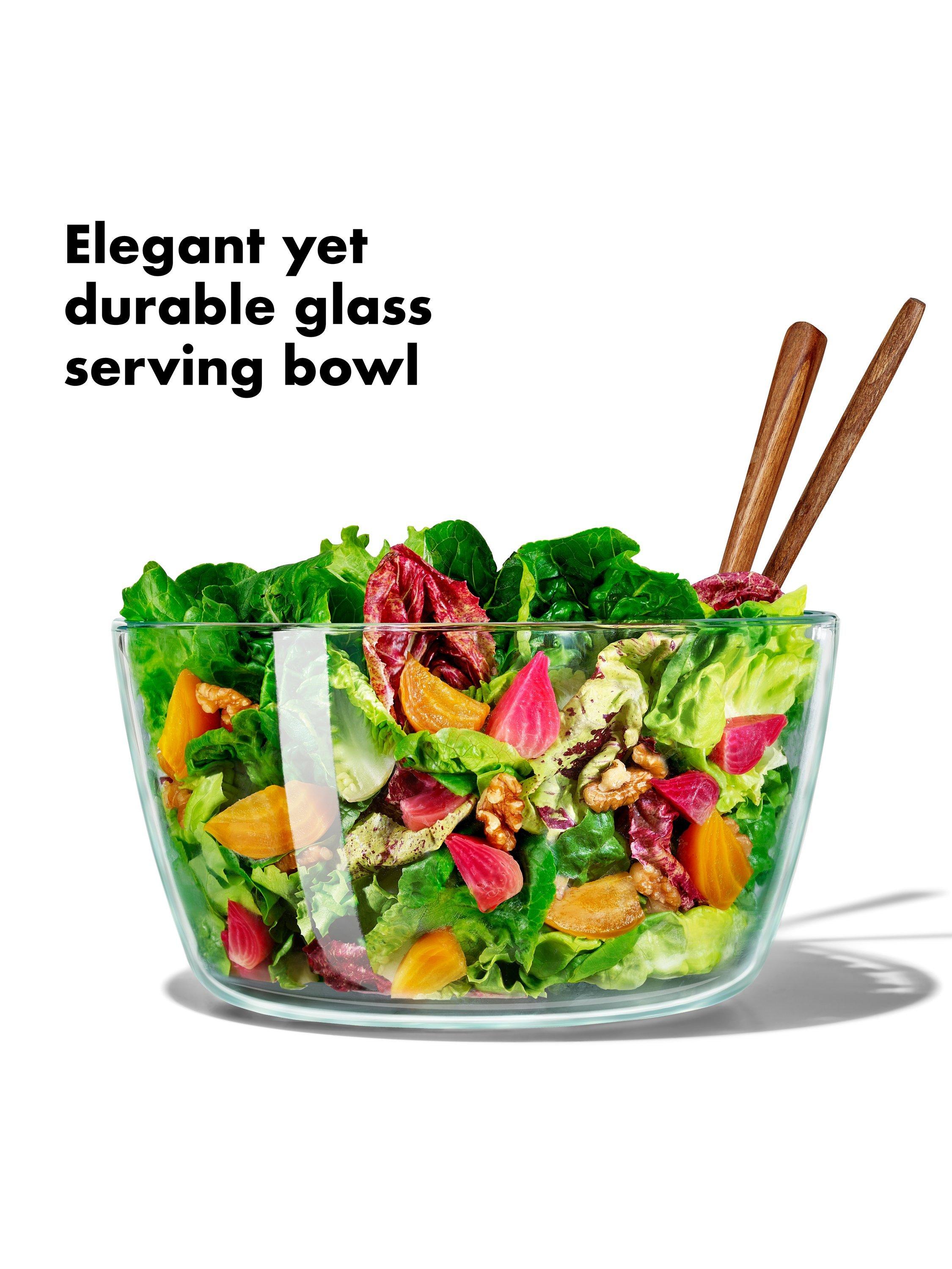 Toss and serve your salad in the elegant glass bowl made of durable borosilicate glass. It moves seamlessly to the table. Simply slide the lock to hold the pump flush with the lid for compact storage. The lid comes apart for thorough cleaning.