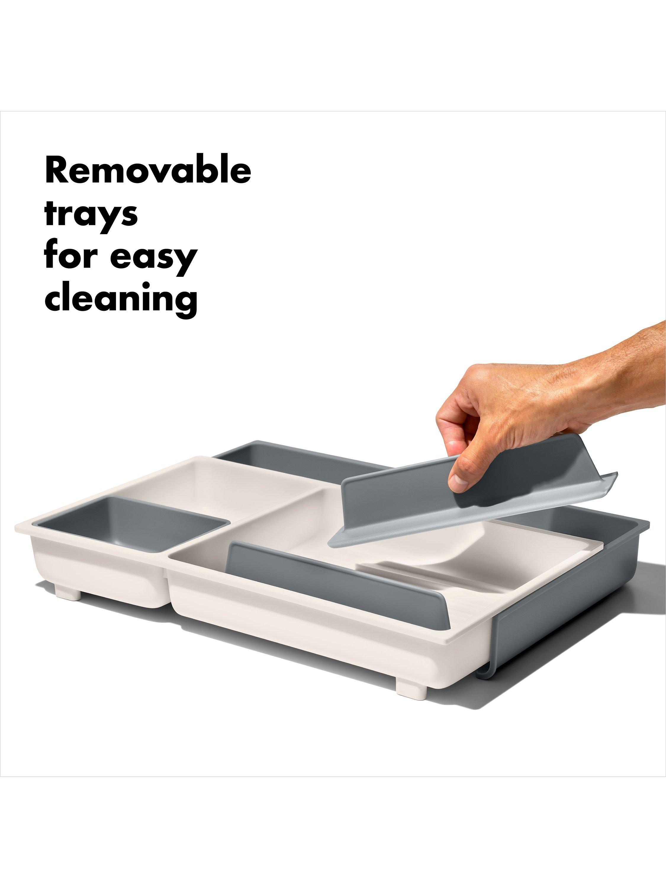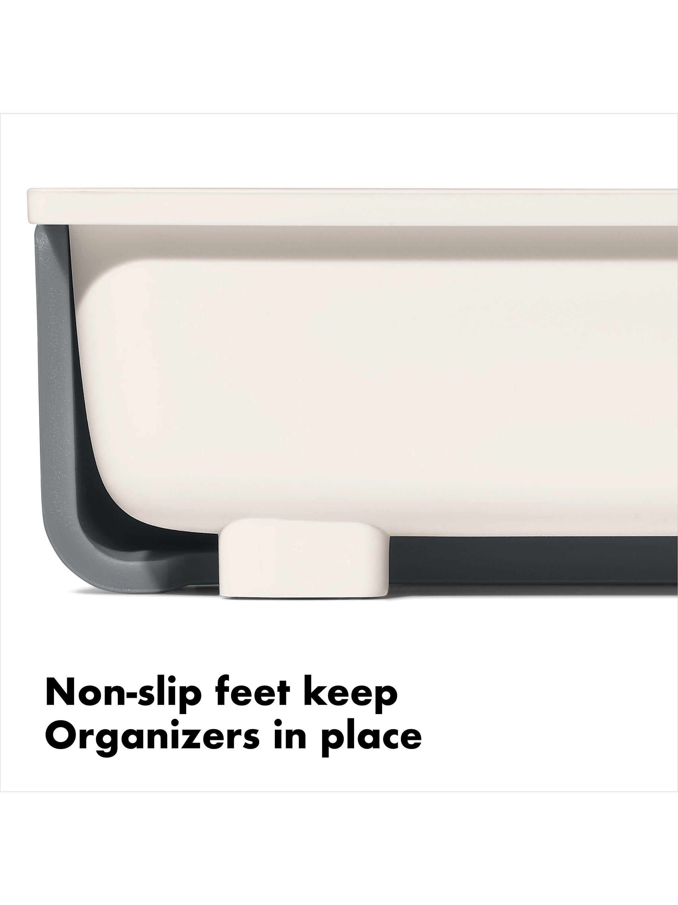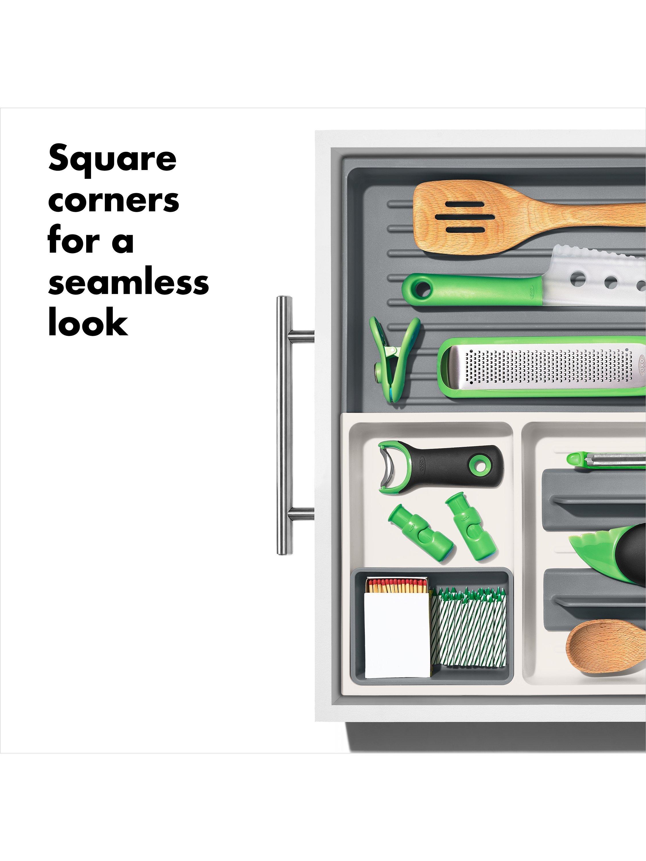 The OXO Good Grips Large Expandable Kitchen Tool Drawer Organizer helps you store tools with control. The extendable open area is perfect for irregular-shaped or long-handled utensils, and the adjustable dividers allow you to customize the organizer for your kitchen’s needs.