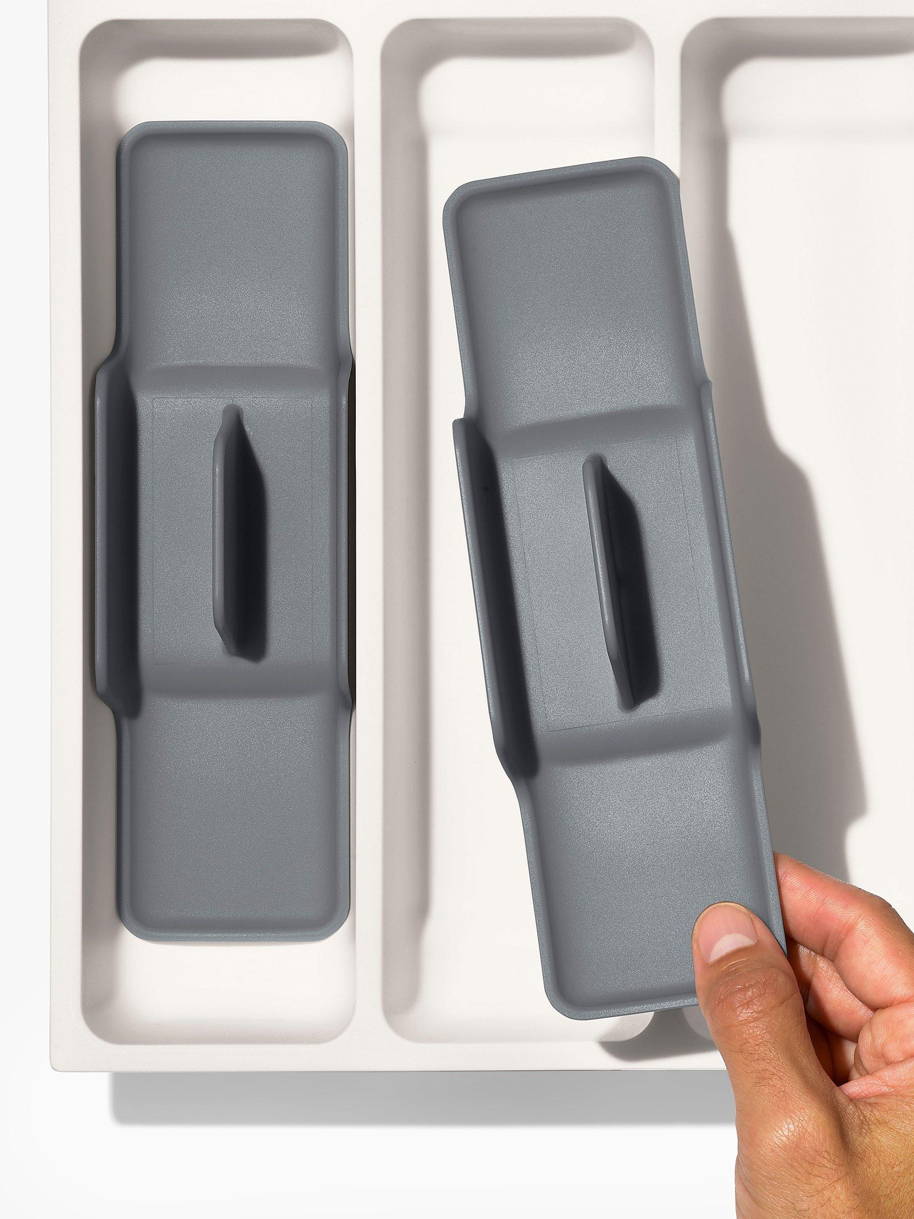 The space-maximizing design features square corners to eliminate gaps and deliver a clean, custom look in your drawers. The trays are removable for thorough cleaning and for ease when setting the table.