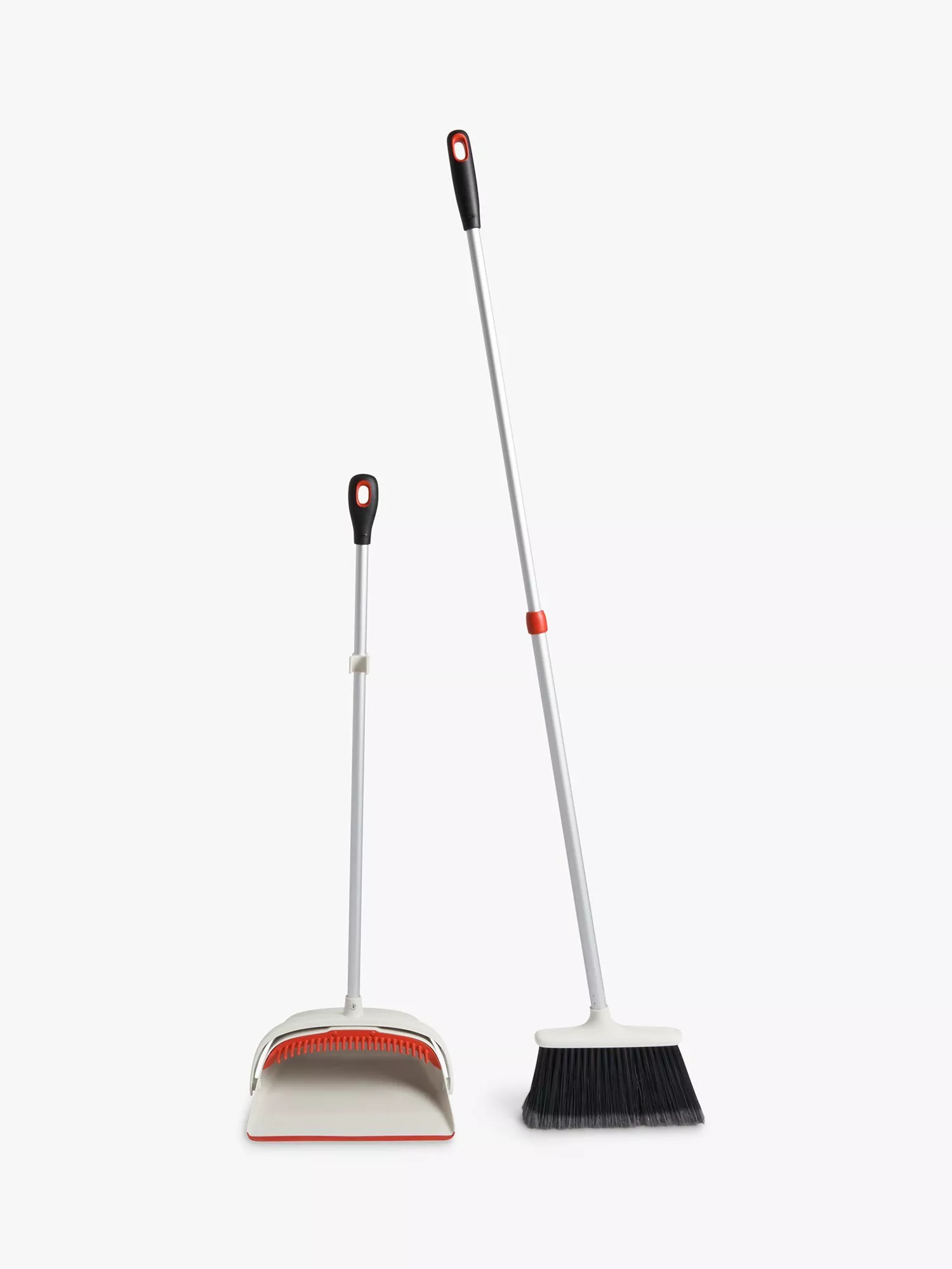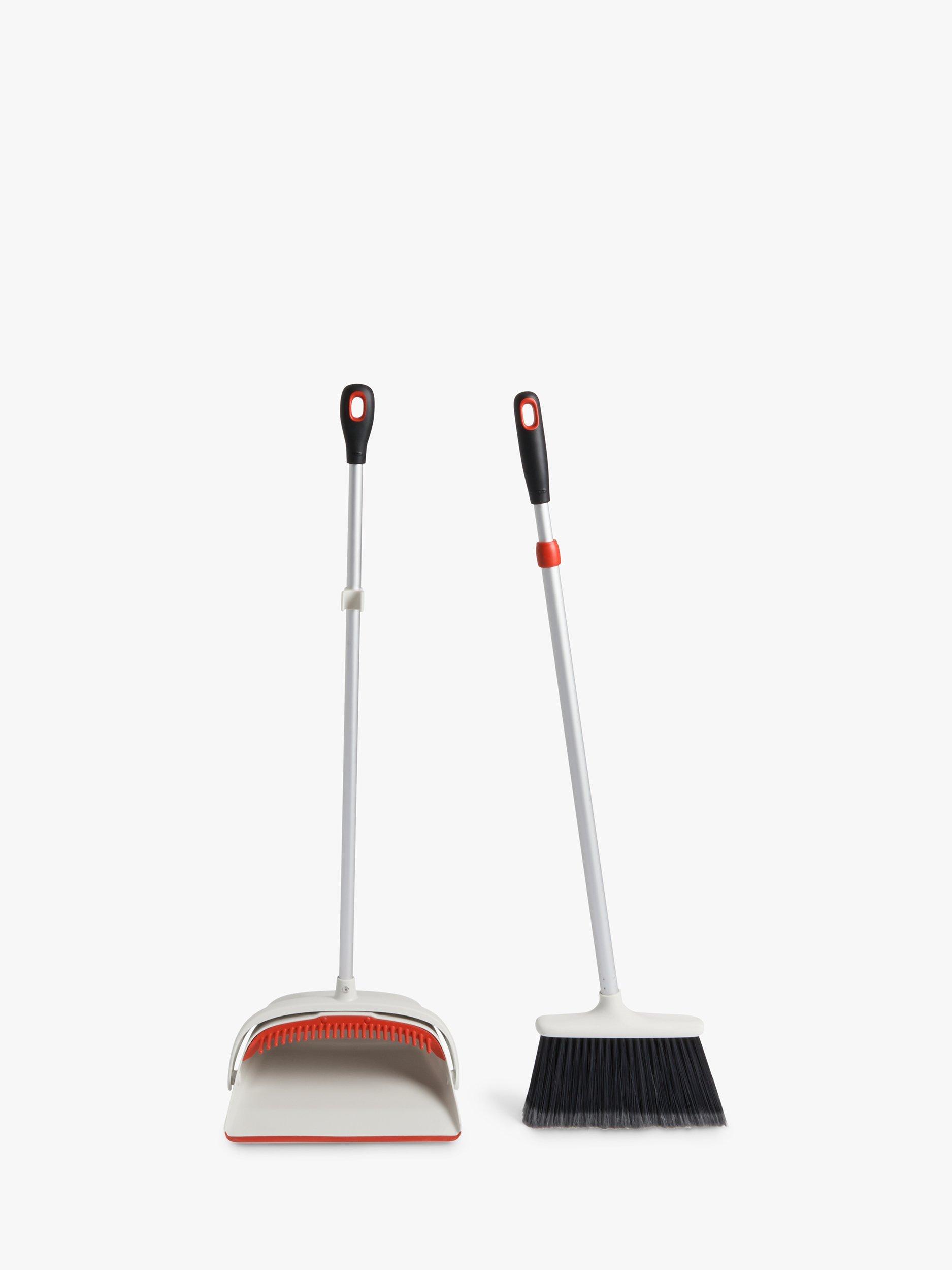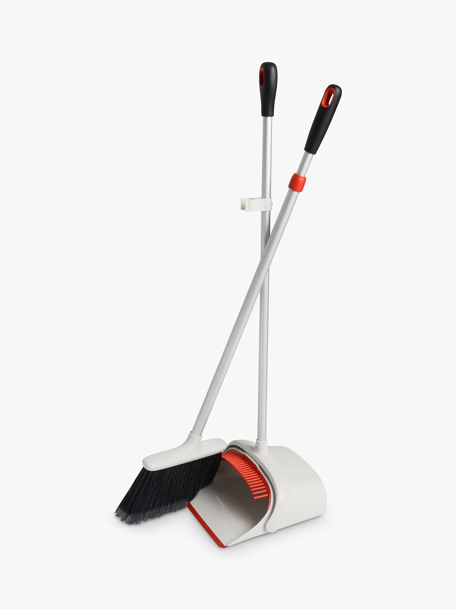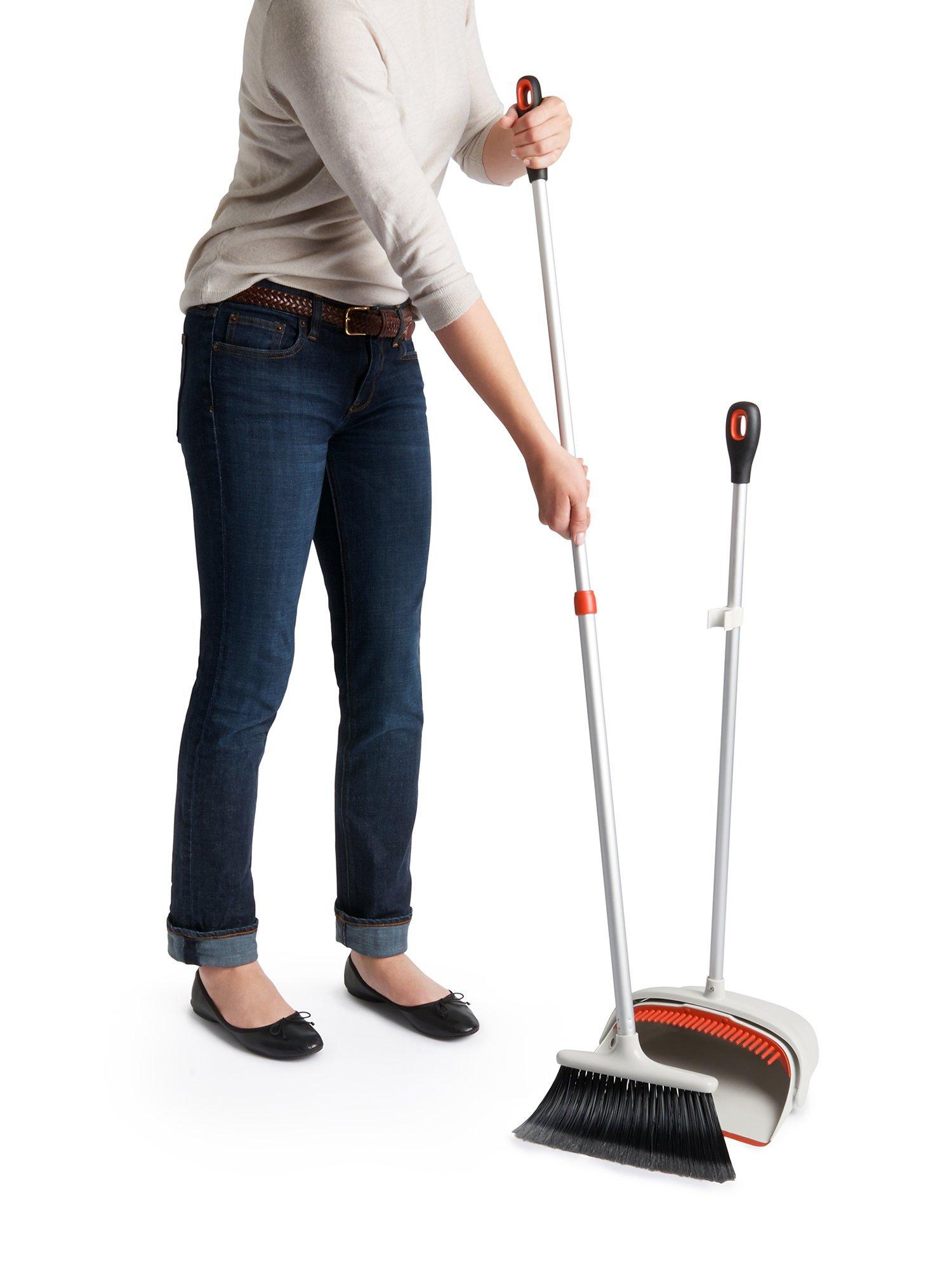 The versatile Sweep Set includes a full-size adjustable broom and extra-large dustpan. The broom has feathered, soft-tipped bristles to grab dust and dirt while the dustpan has teeth to comb out dirt and a flexible lip that conforms to surfaces so dust doesn't slip underneath. The dustpan also locks open for easy emptying.
